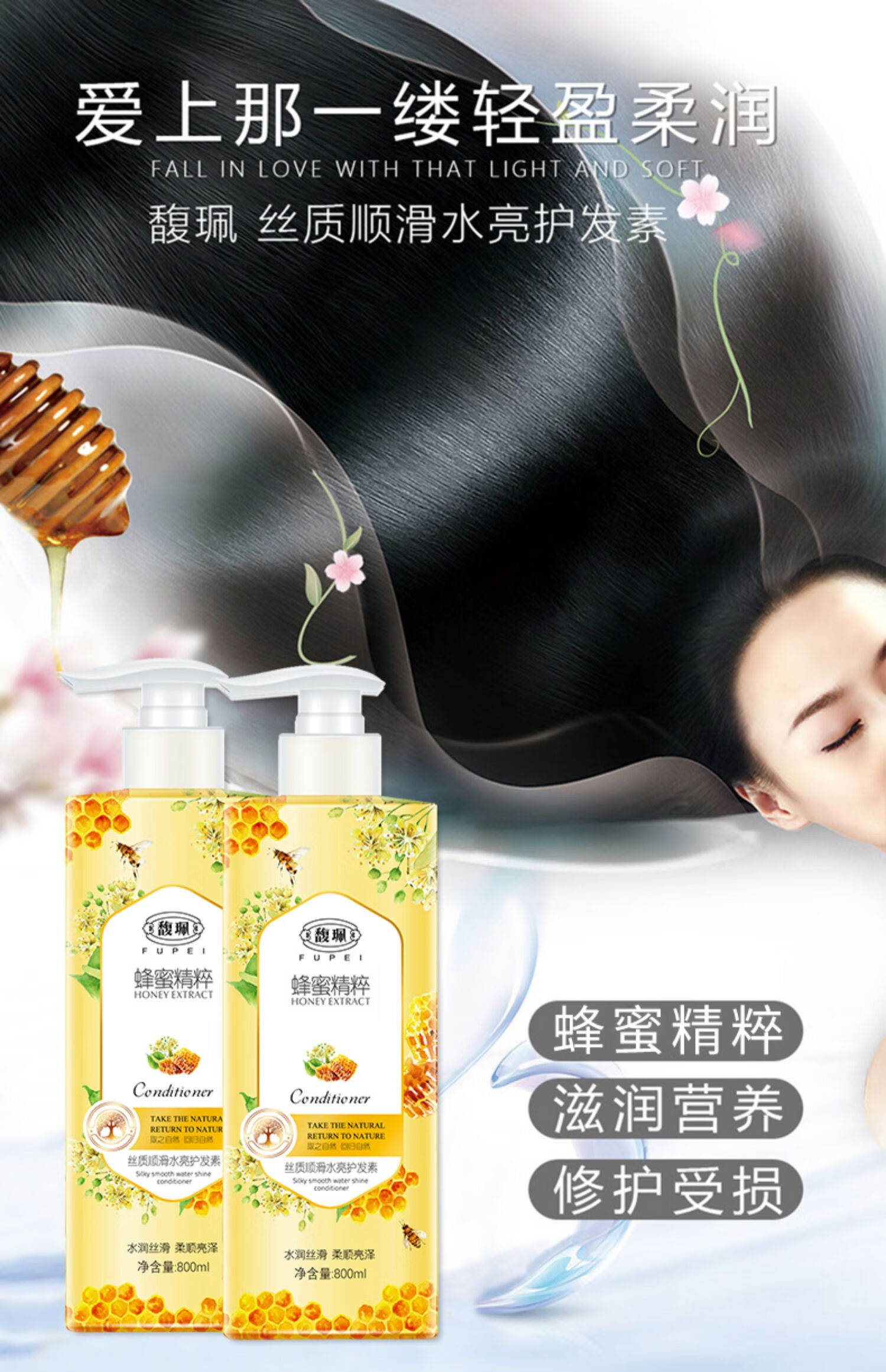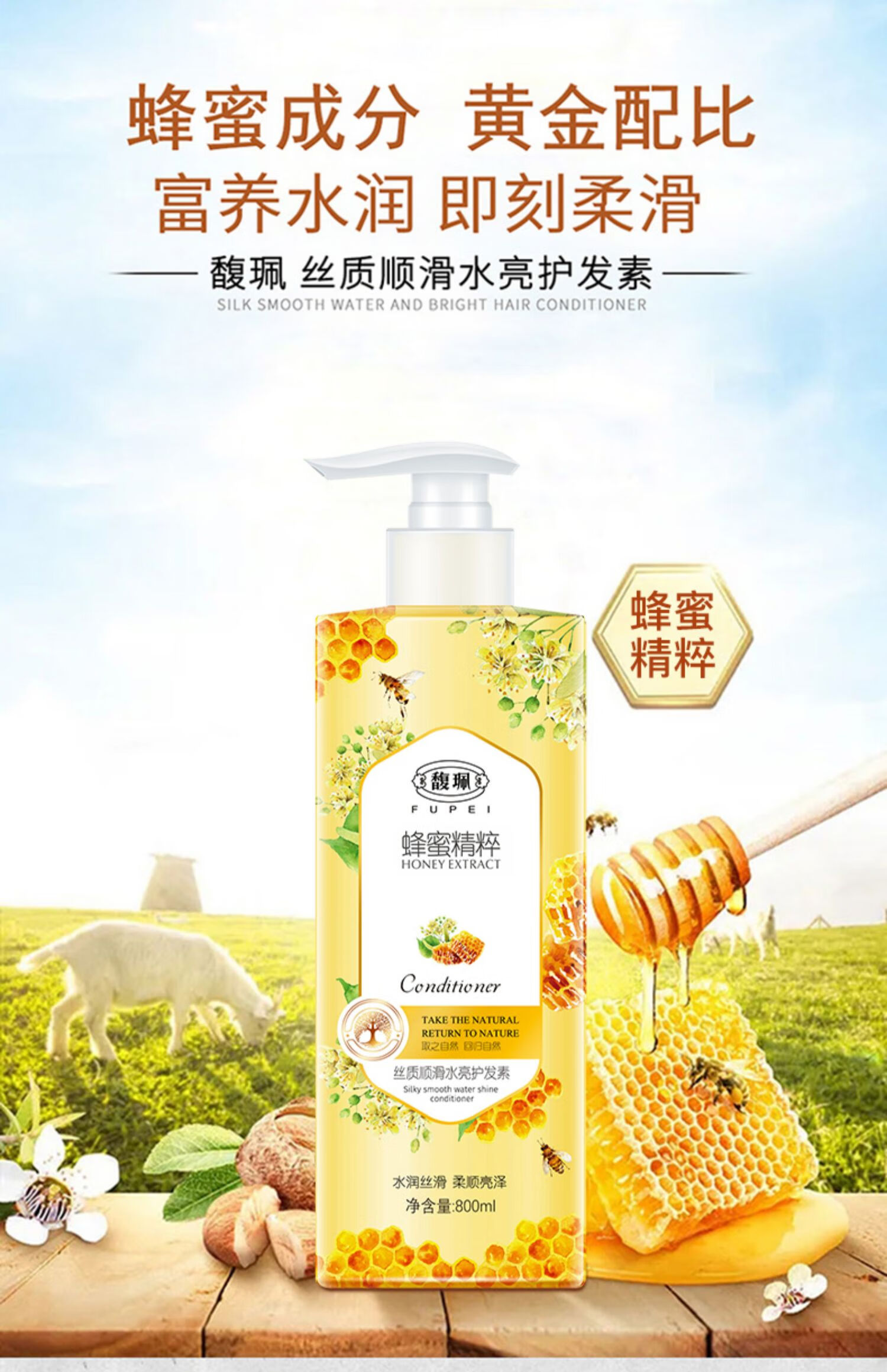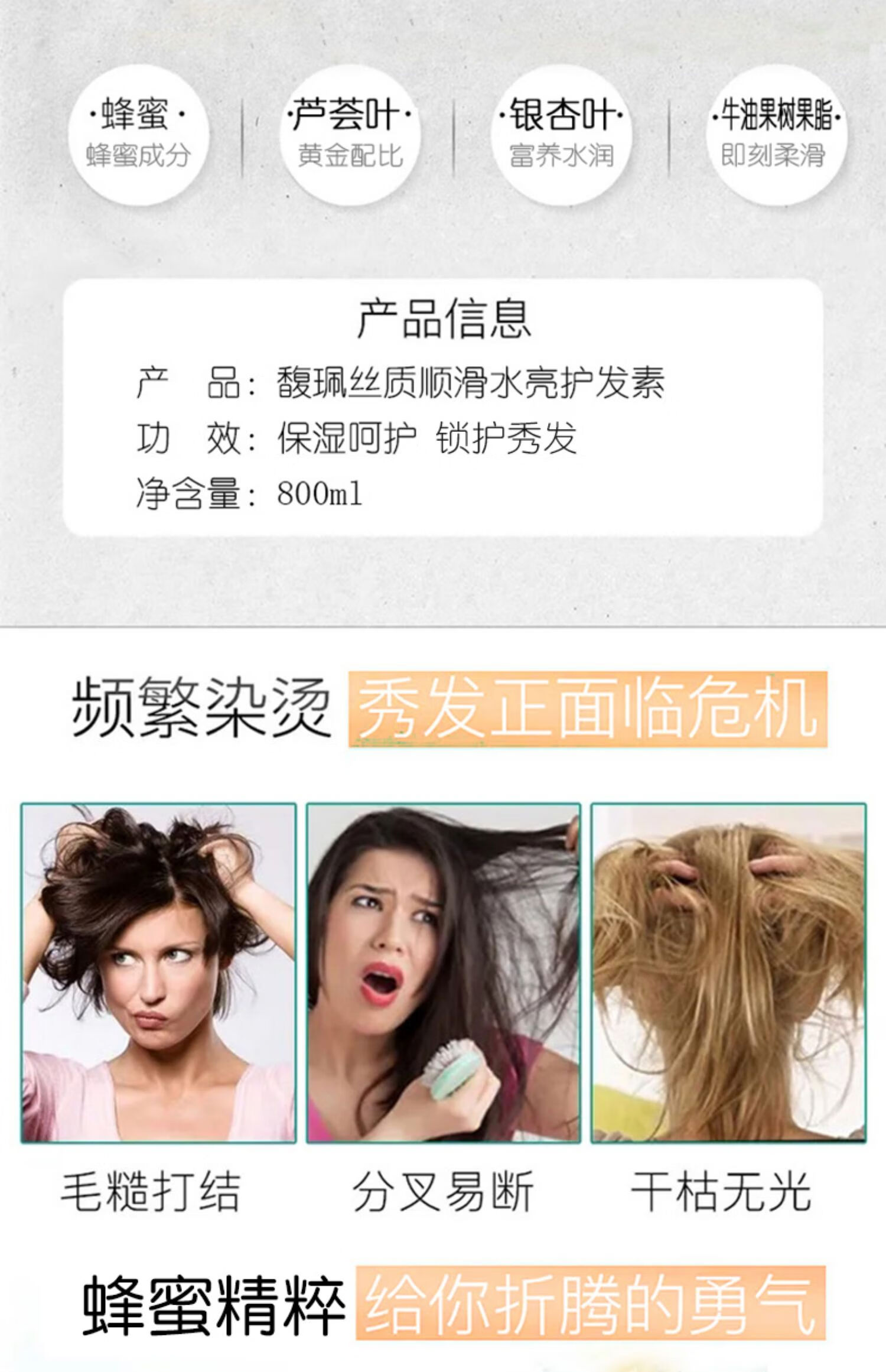 馥珮蜂蜜护发素800ml改善干枯毛躁烫染头发膜柔顺女修护润发乳家庭装