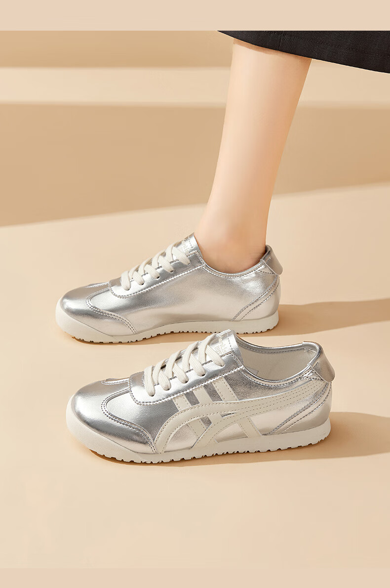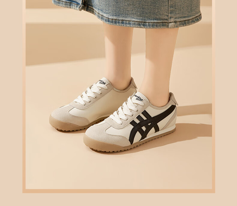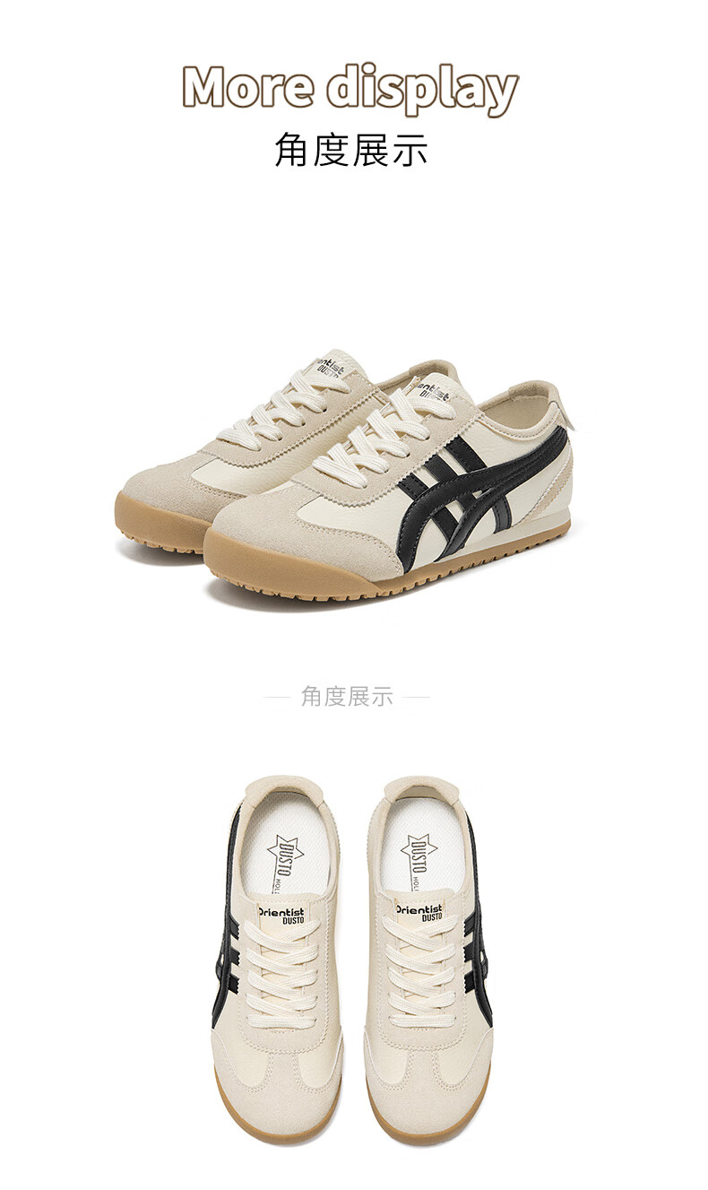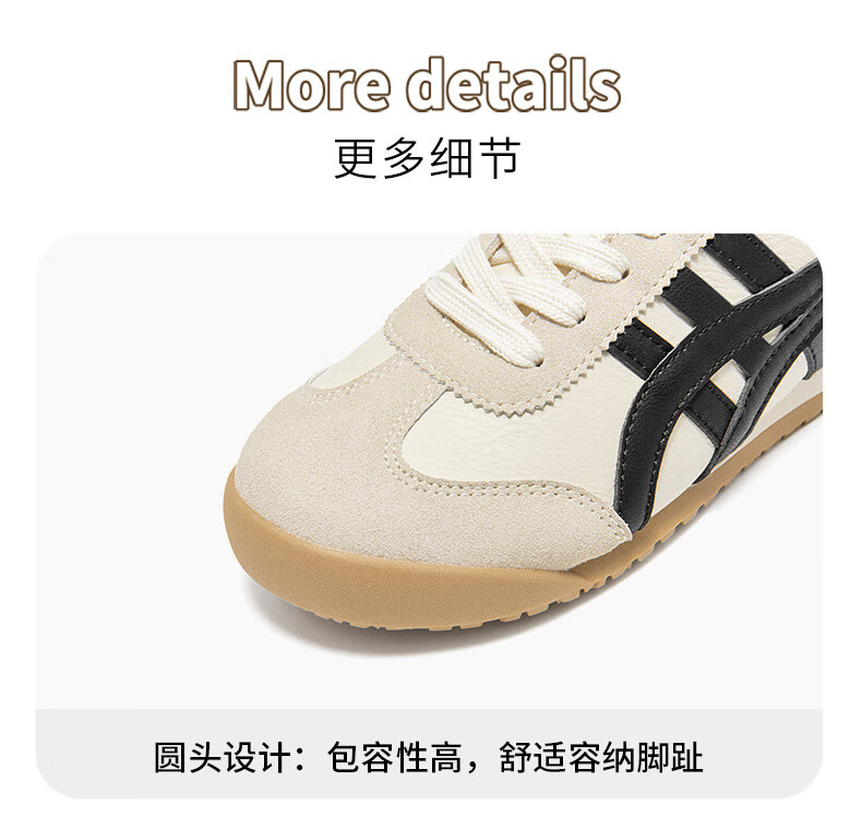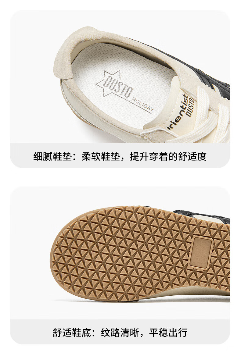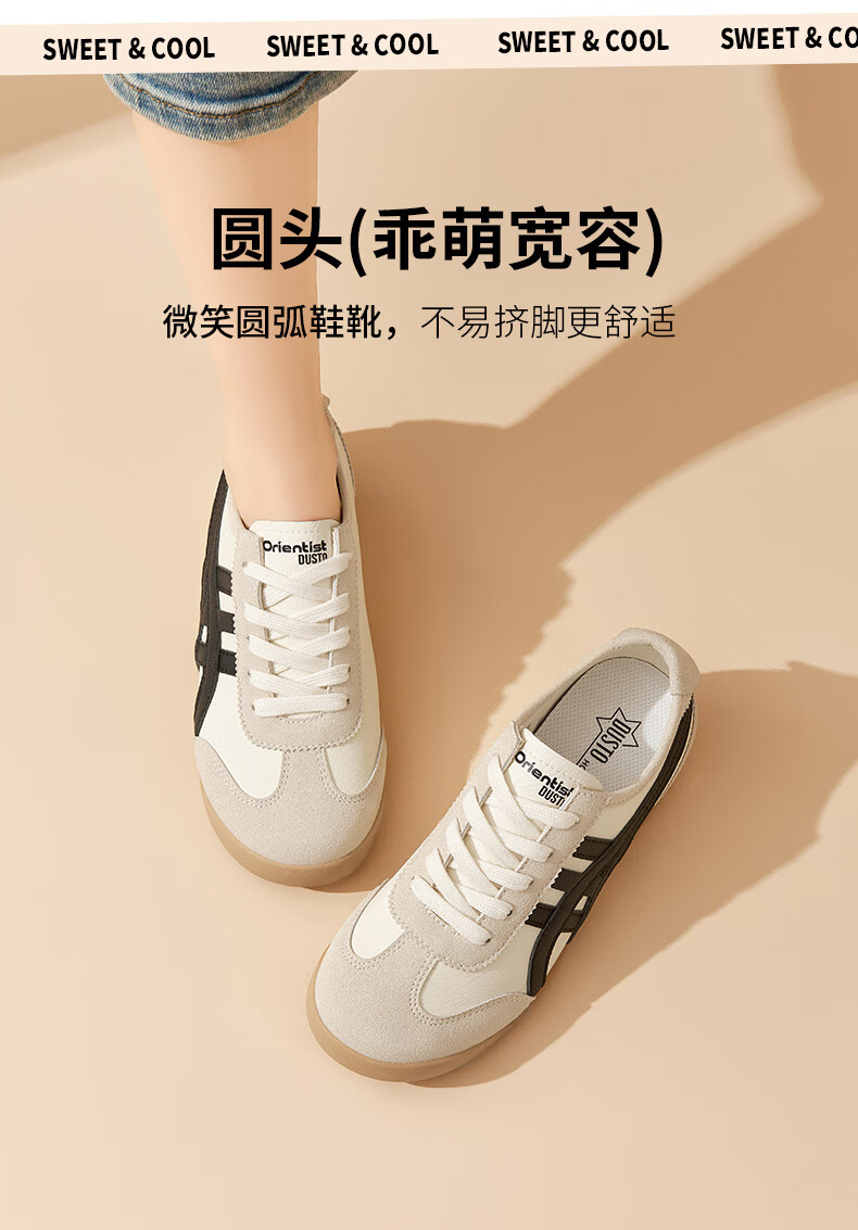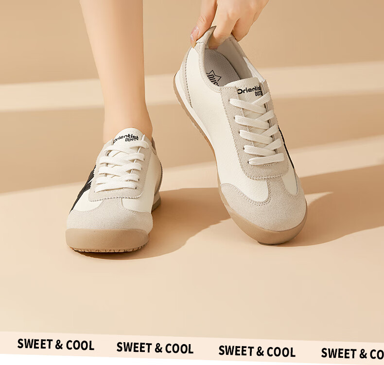 大东德训鞋女鞋2025秋季新款休闲平底低跟圆头系带材质拼贴Q7740 米黑色 35