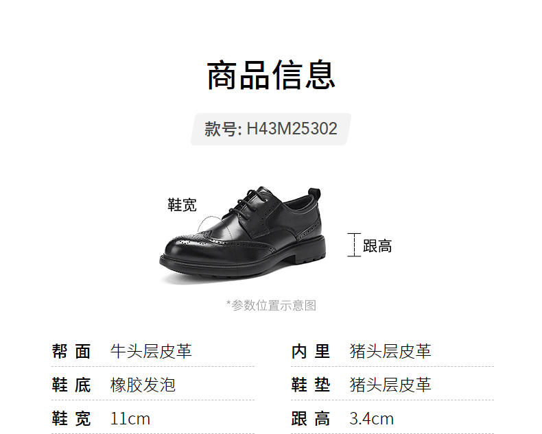 热风【商场同款】男鞋25年秋新款男士时尚单鞋商务正装皮鞋德比鞋婚鞋 01黑色 牛头层皮革 44