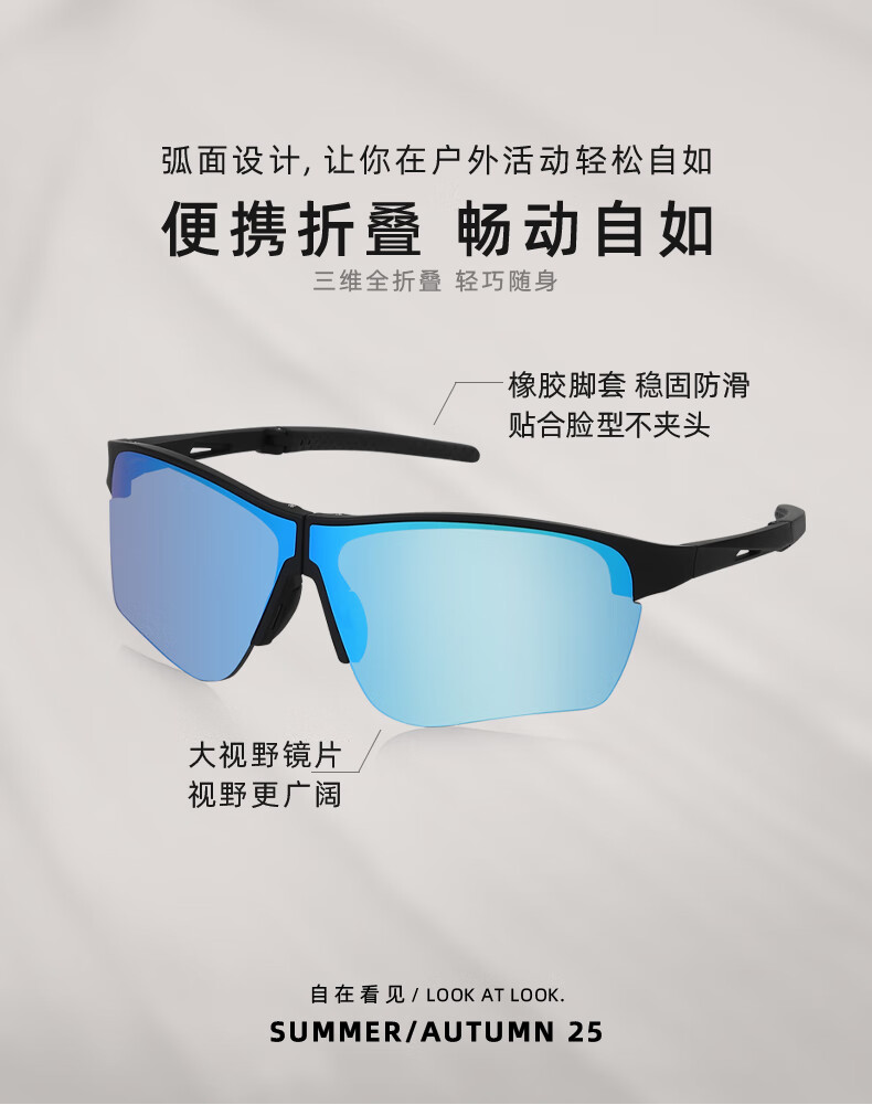 LOOK眼镜骑行眼镜登山护目眼镜男户外骑车防紫外线防风沙折叠太阳镜女开学
