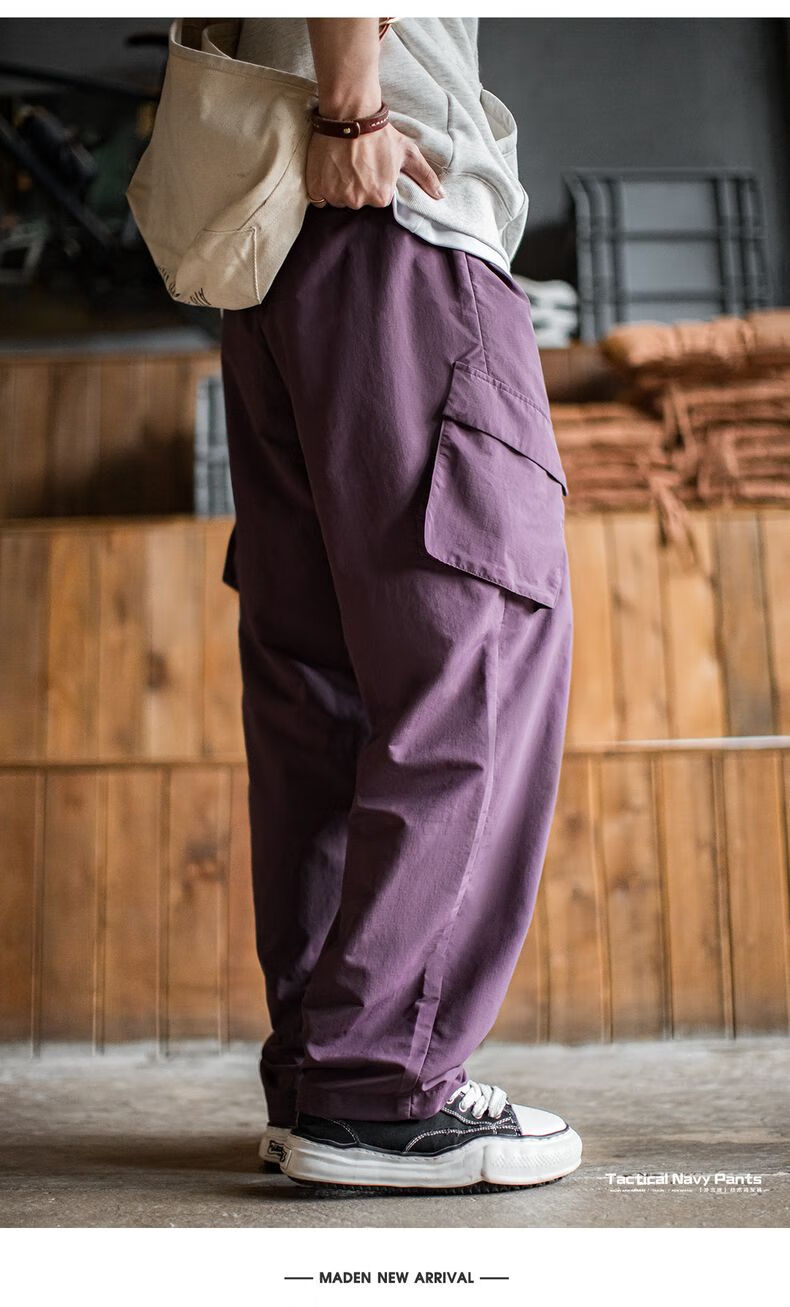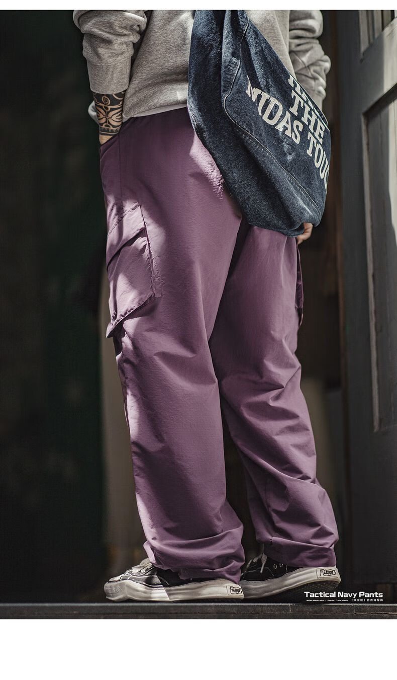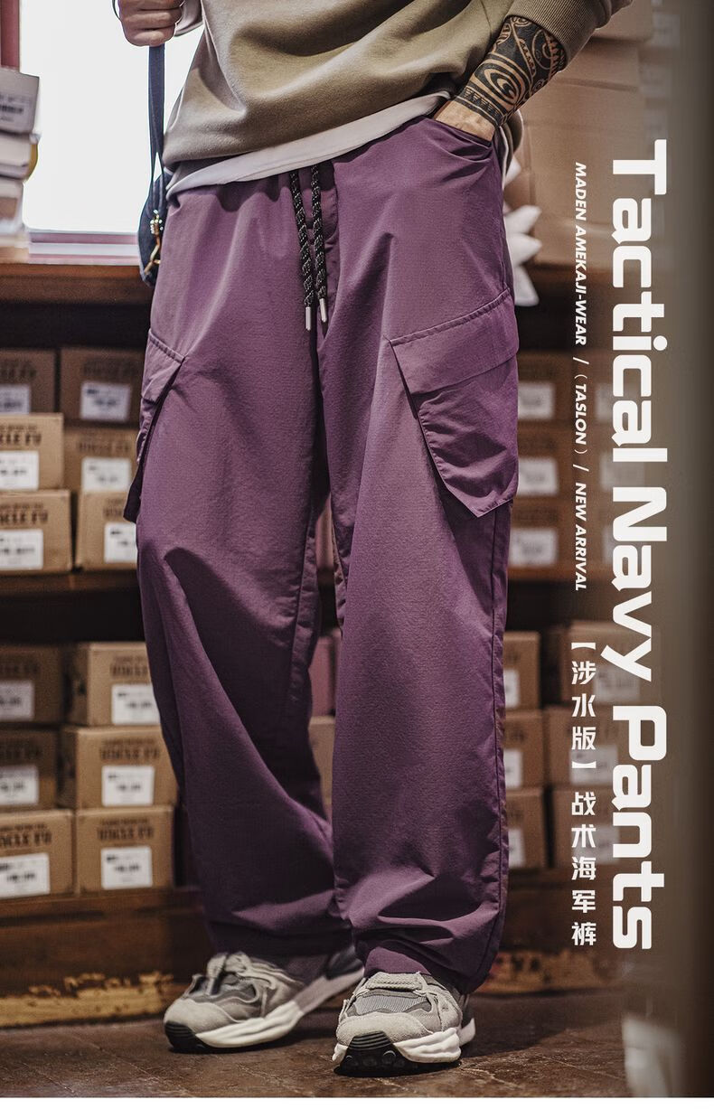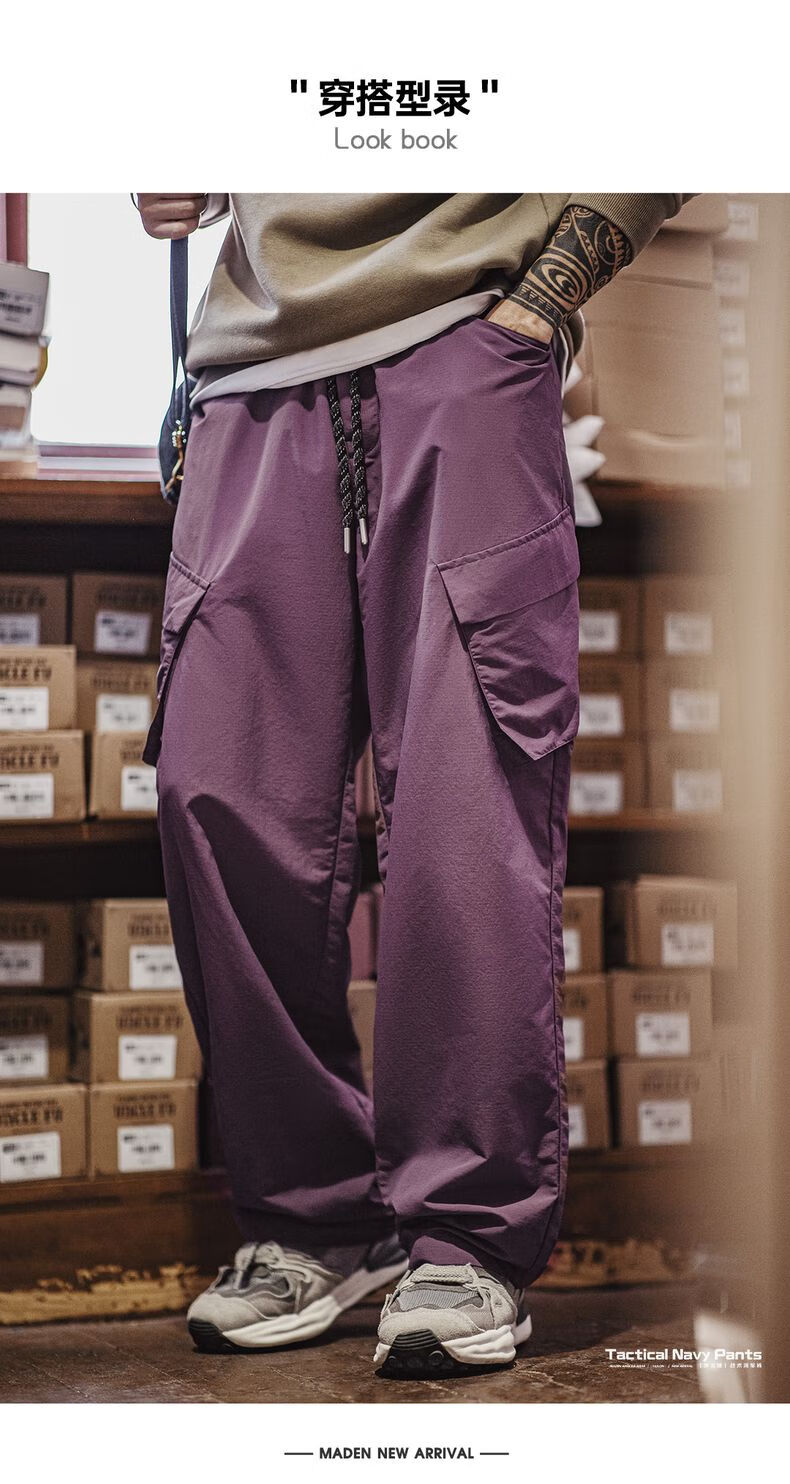 马登工装山系户外速干裤美式大口袋男士休闲裤夏季薄款直筒长裤子男秋 紫色 【宽松/阔腿/工装裤男款】 M