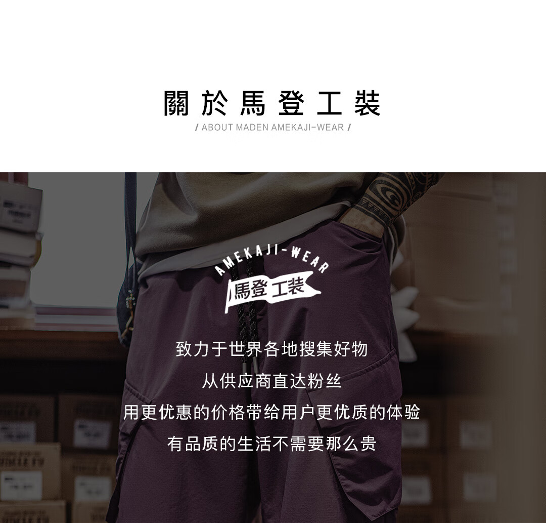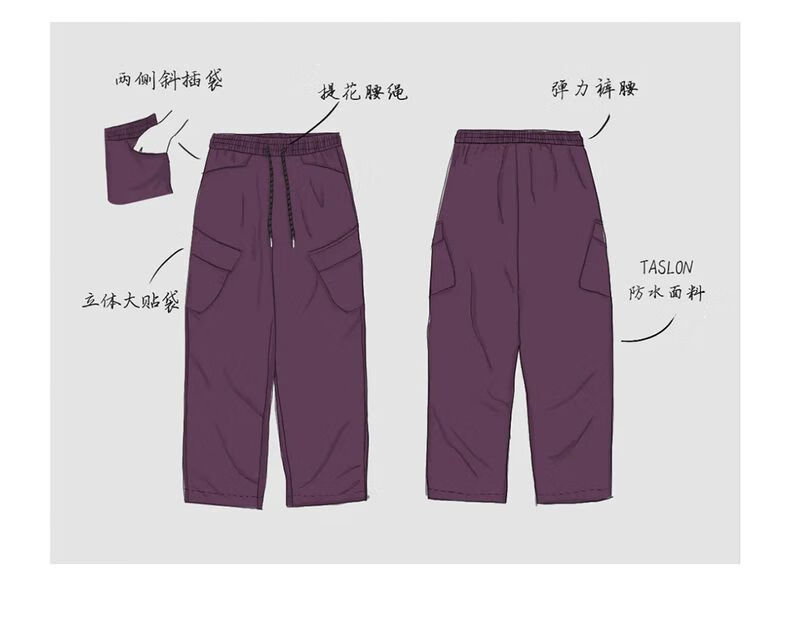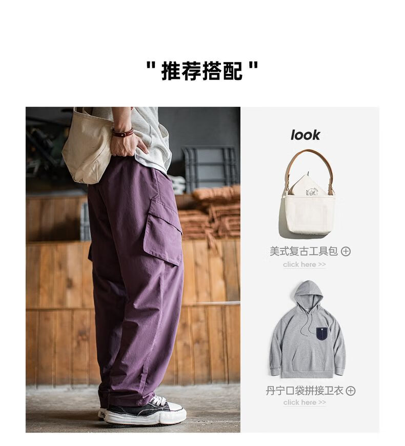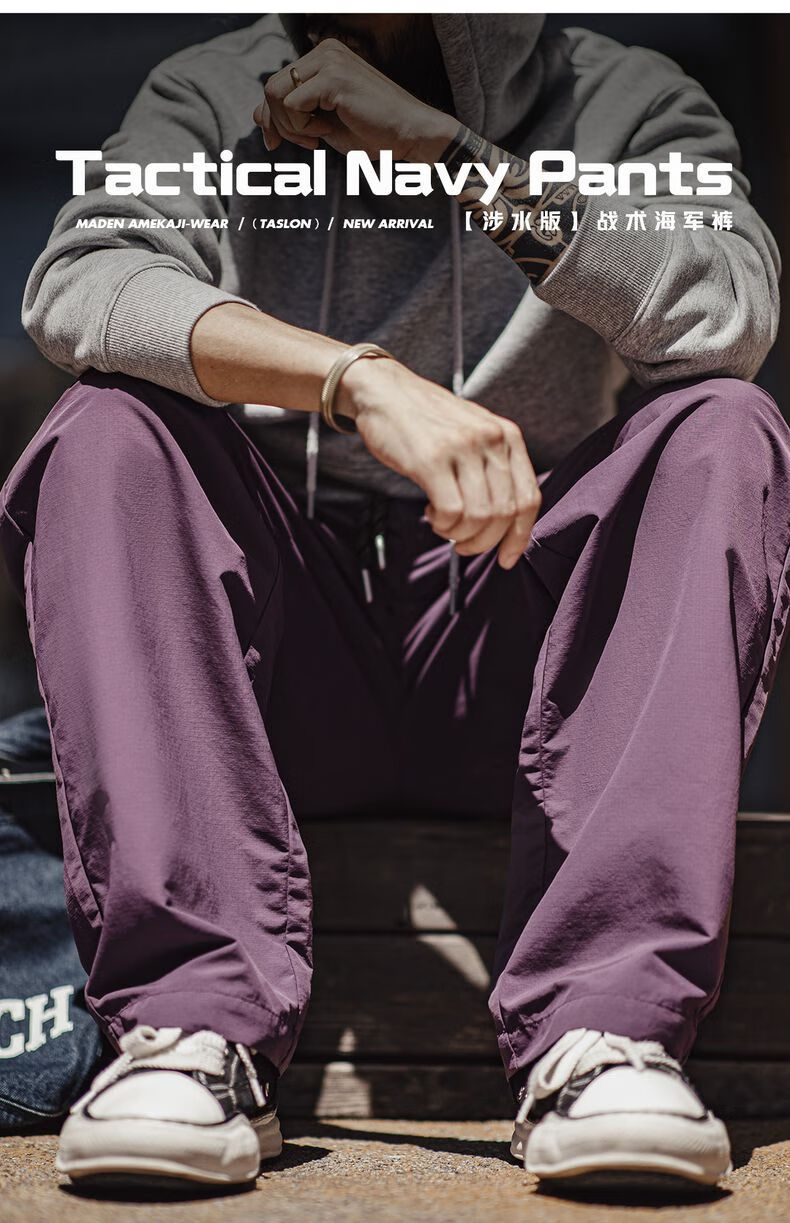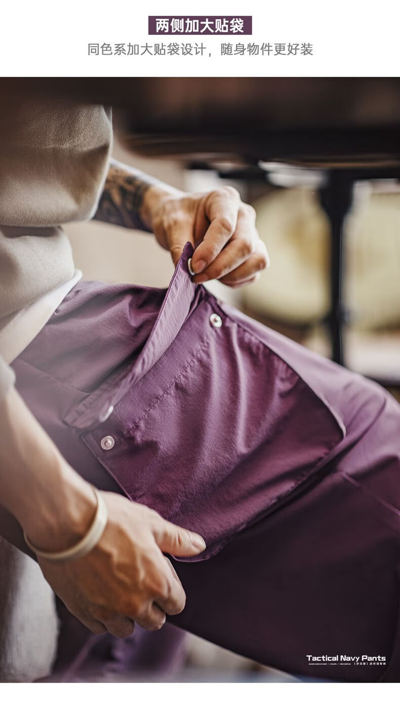 马登工装山系户外速干裤美式大口袋男士休闲裤夏季薄款直筒长裤子男秋 紫色 【宽松/阔腿/工装裤男款】 M