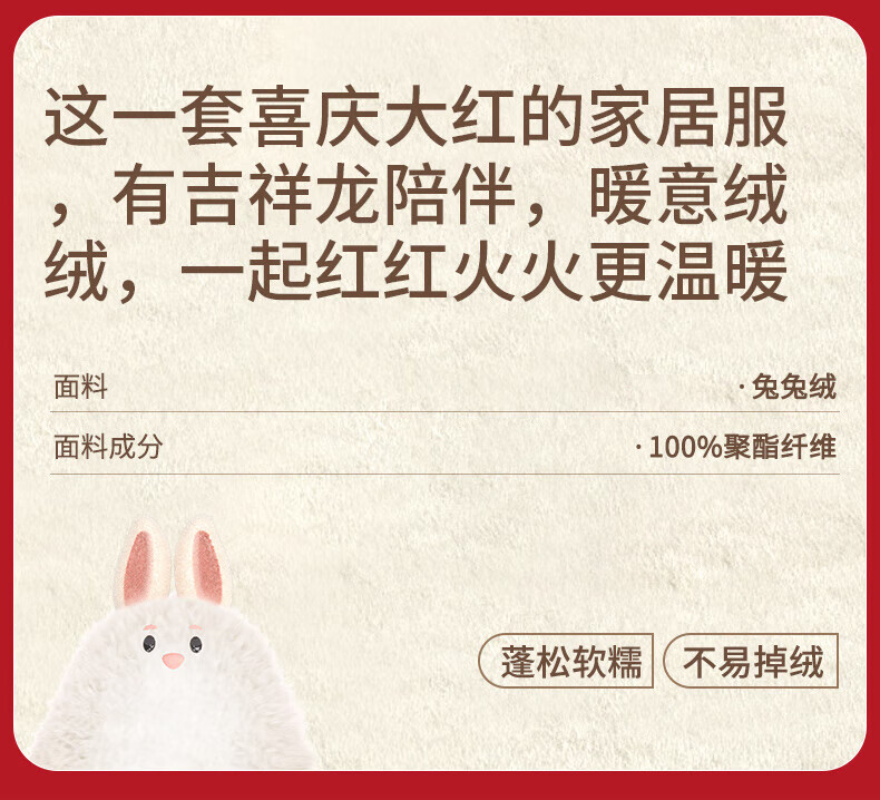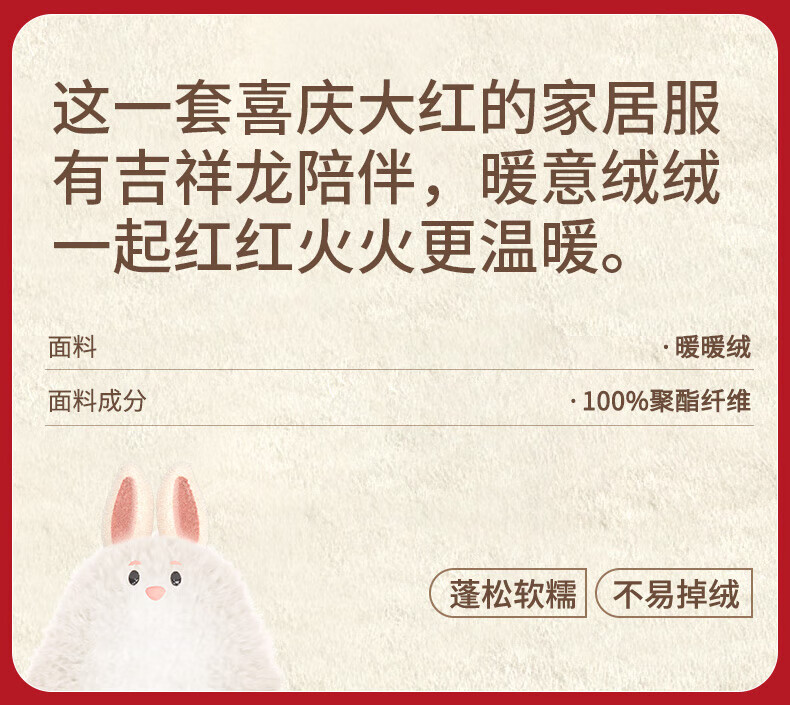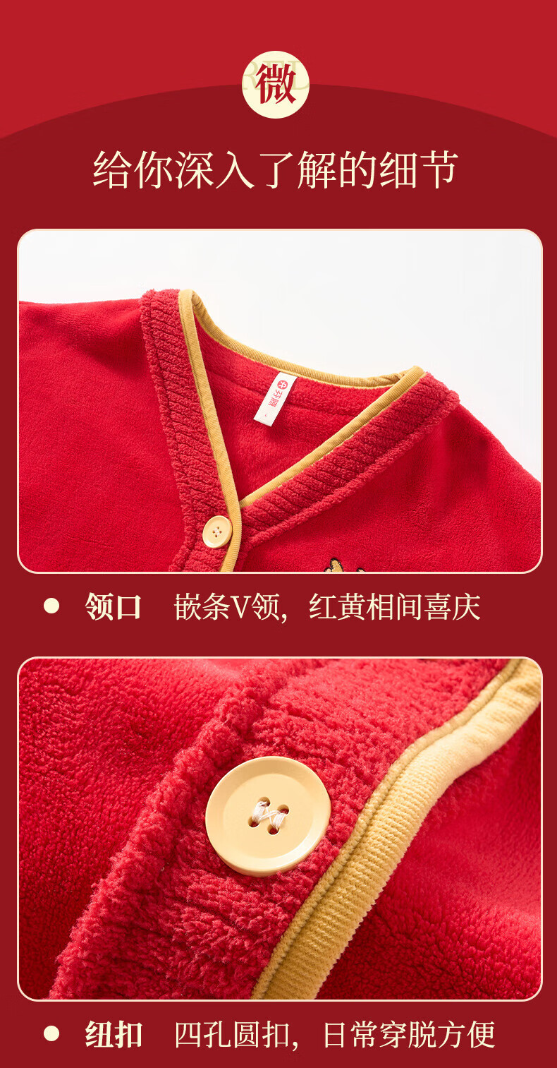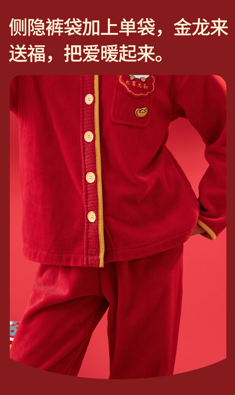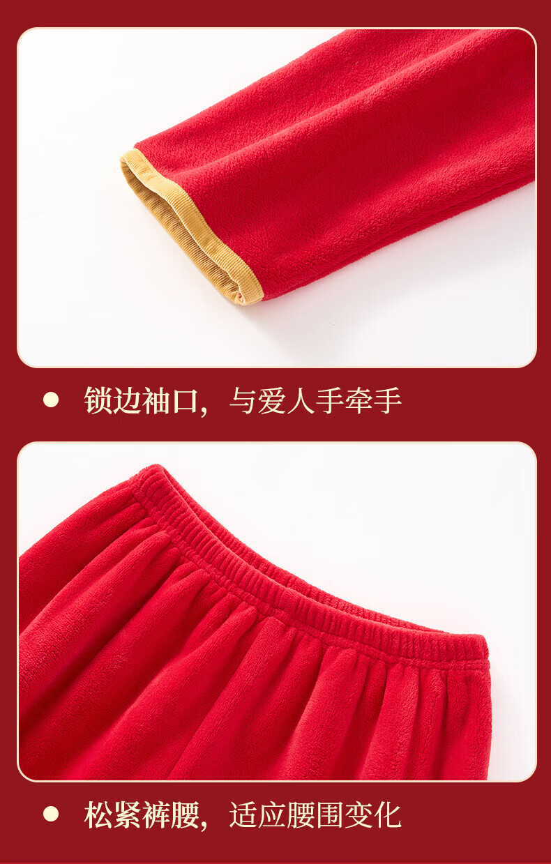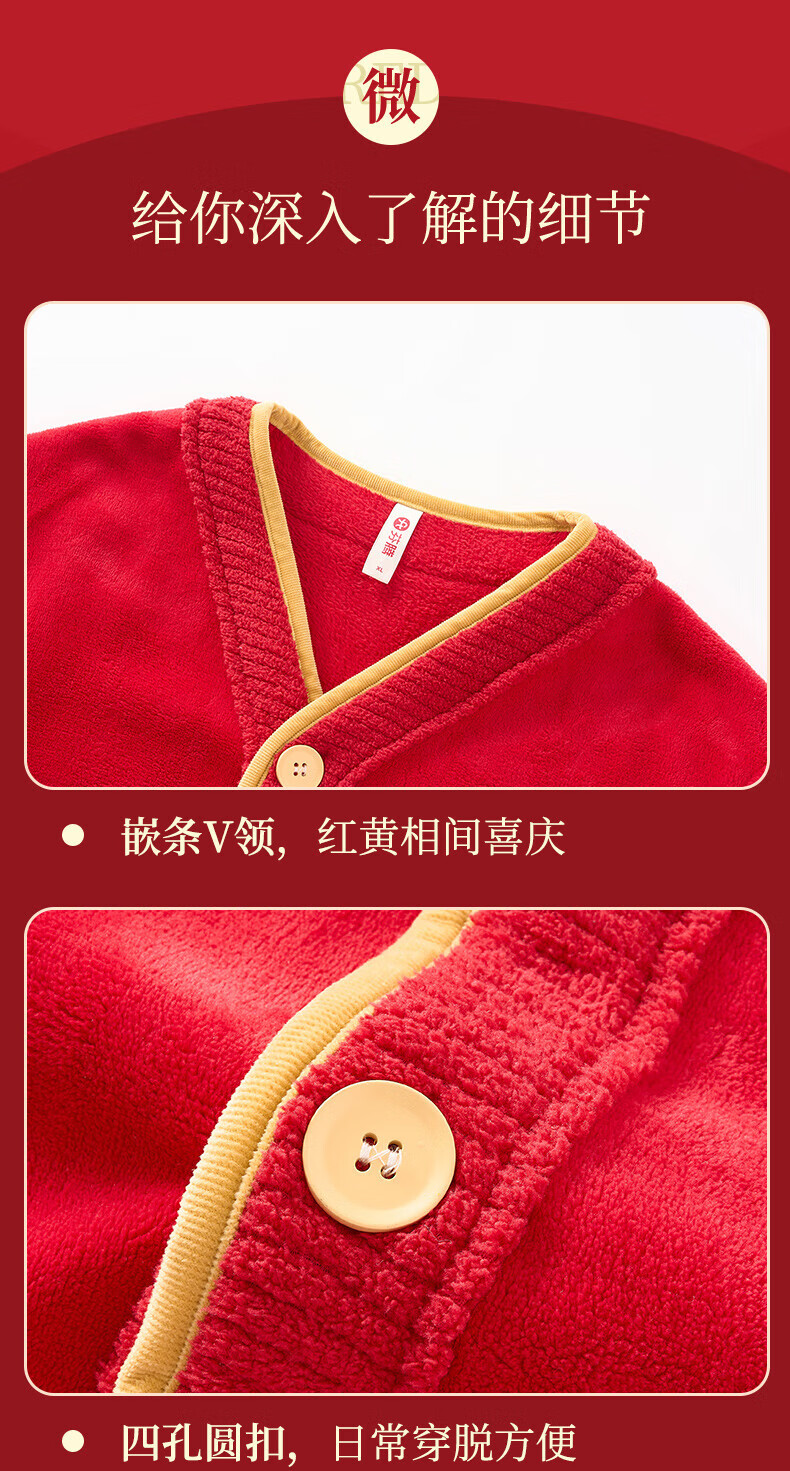 芬腾情侣睡衣【双面暖绒】秋冬本命年蛇年开衫加厚家居服套装 大红-女款 M