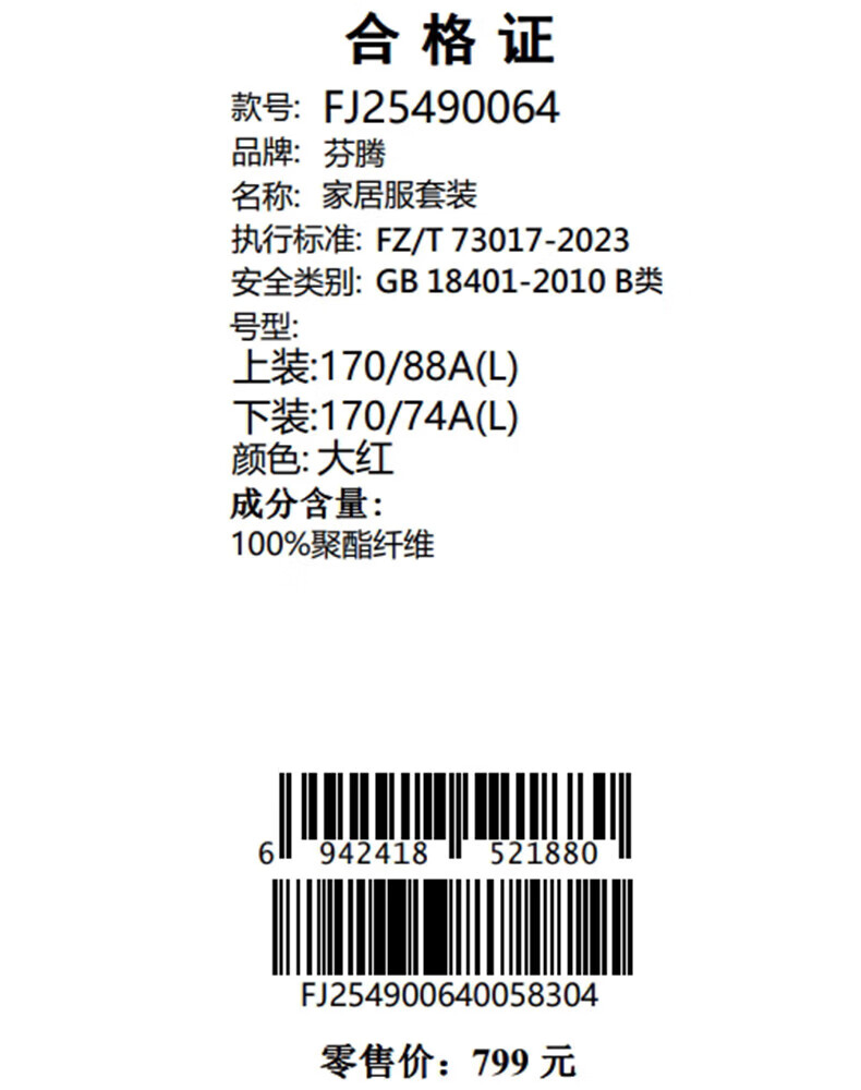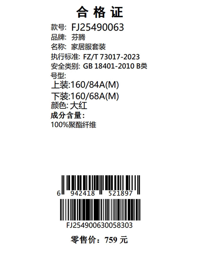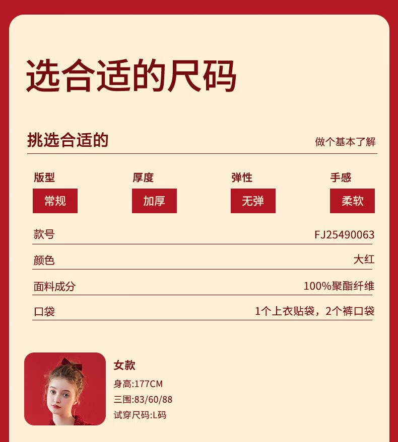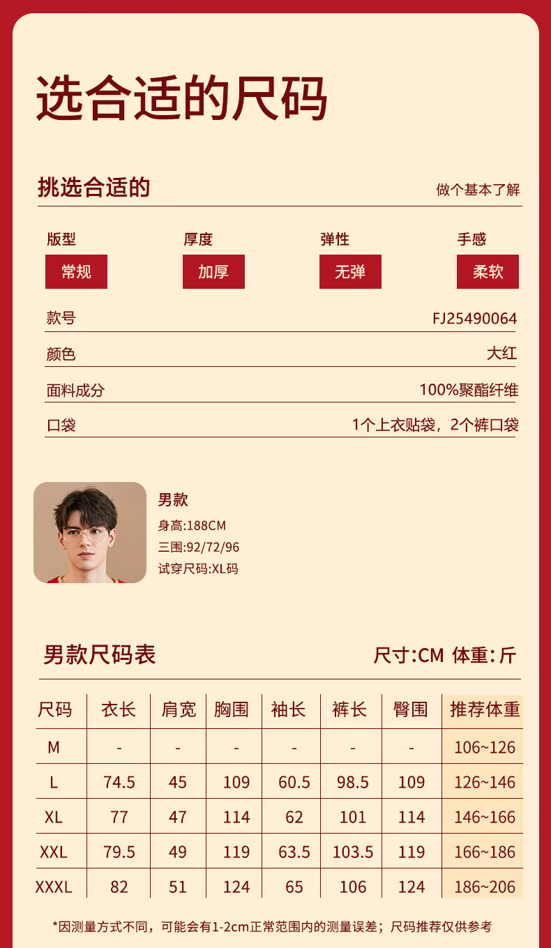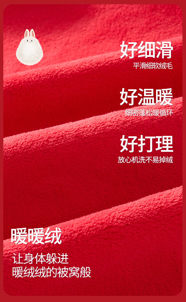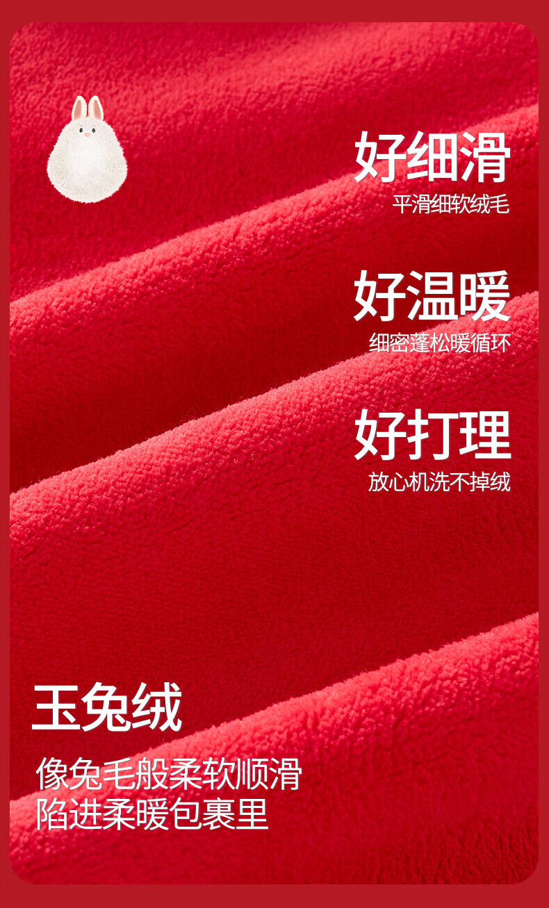 芬腾情侣睡衣【双面暖绒】秋冬本命年蛇年开衫加厚家居服套装 大红-女款 M