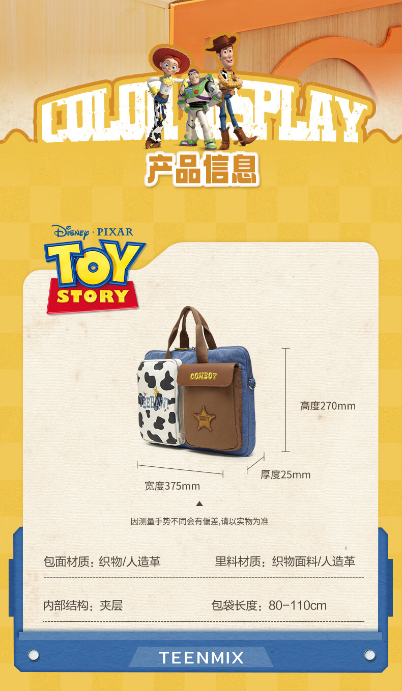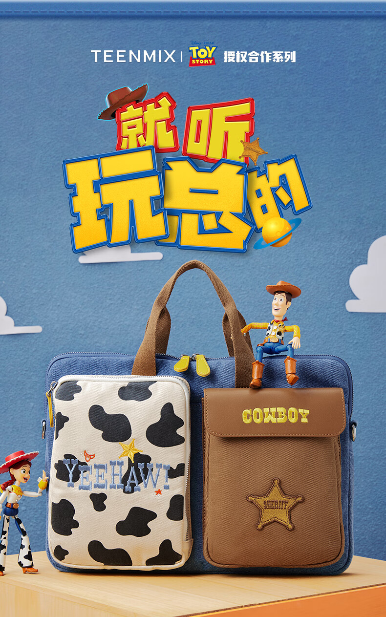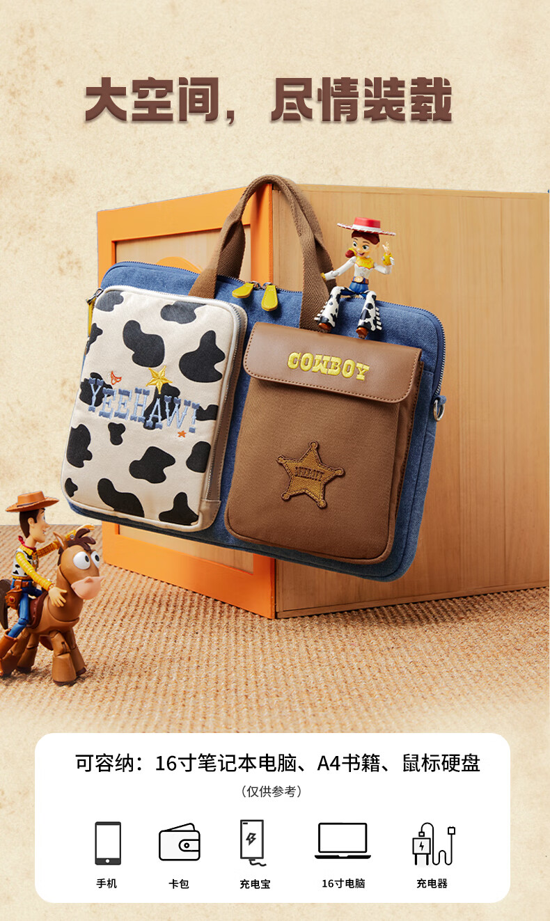天美意玩具总动员联名大容量电脑包手提包女单肩斜挎包2025秋新款 浅蓝 F