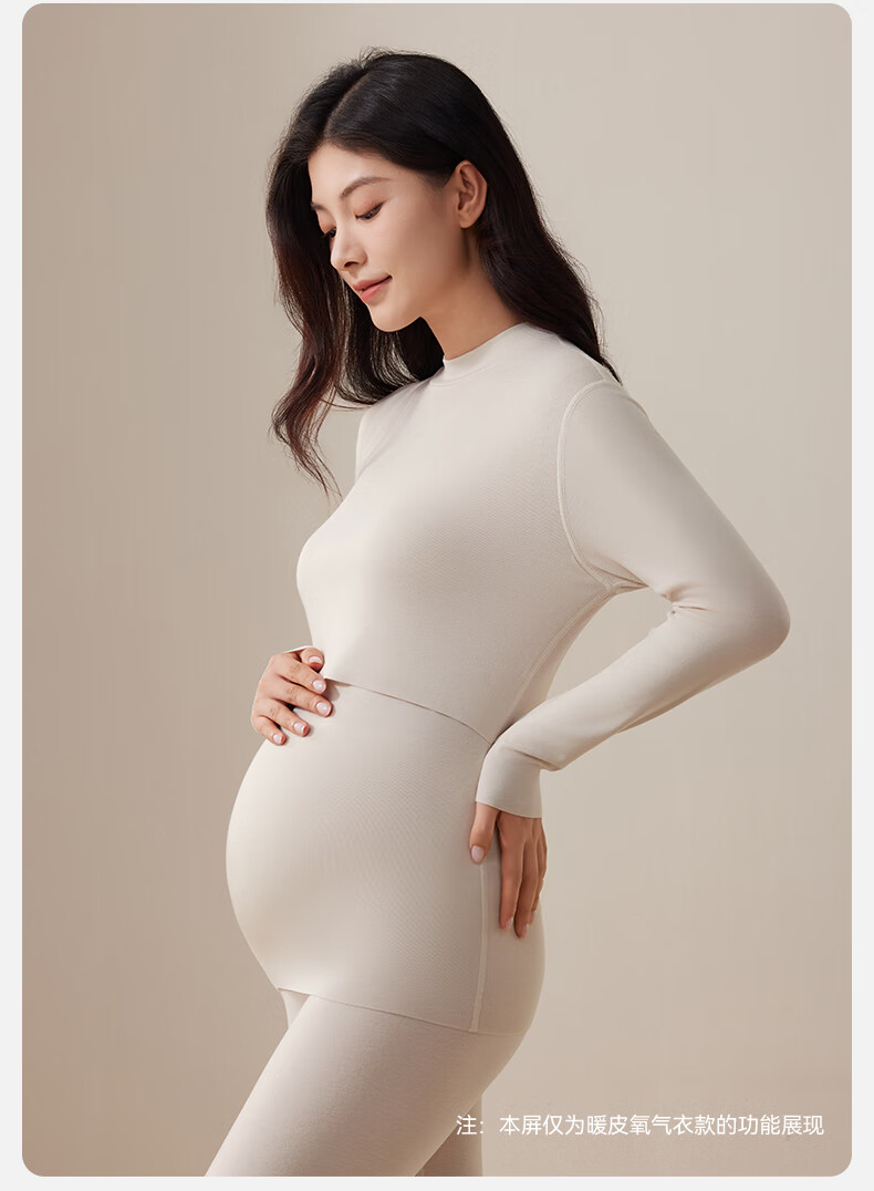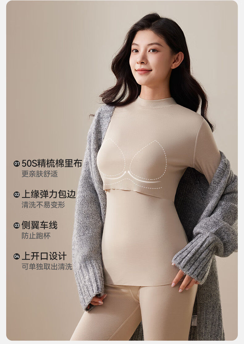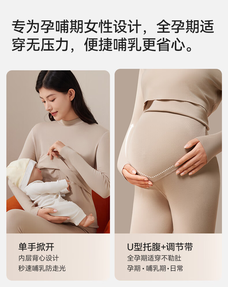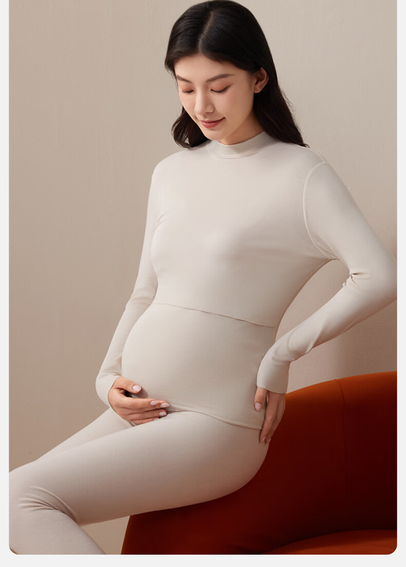 十月结晶秋衣裤套冬季孕产妇保暖内衣睡衣半高圆领打底衫带胸垫 丝雾棕XL