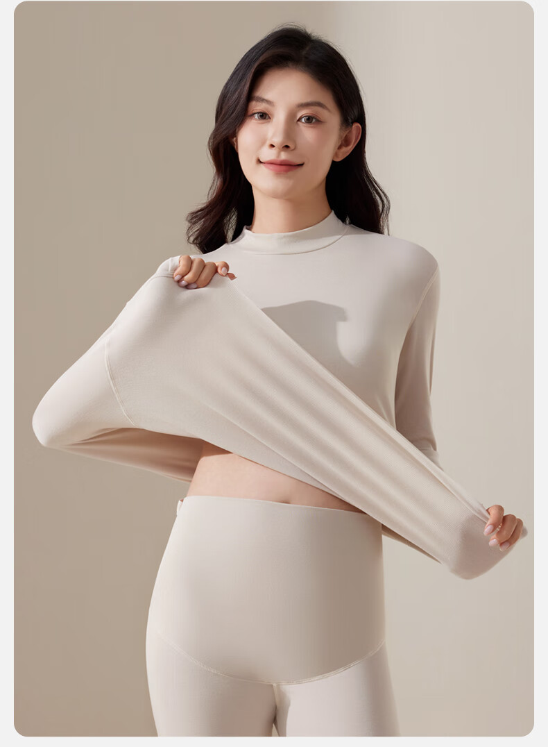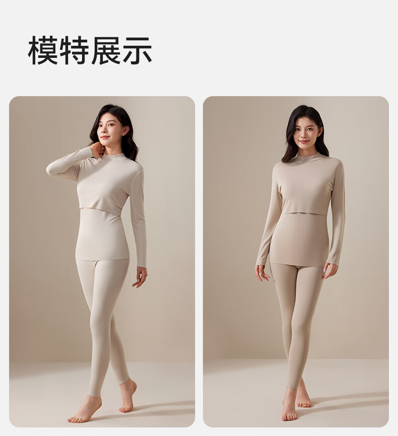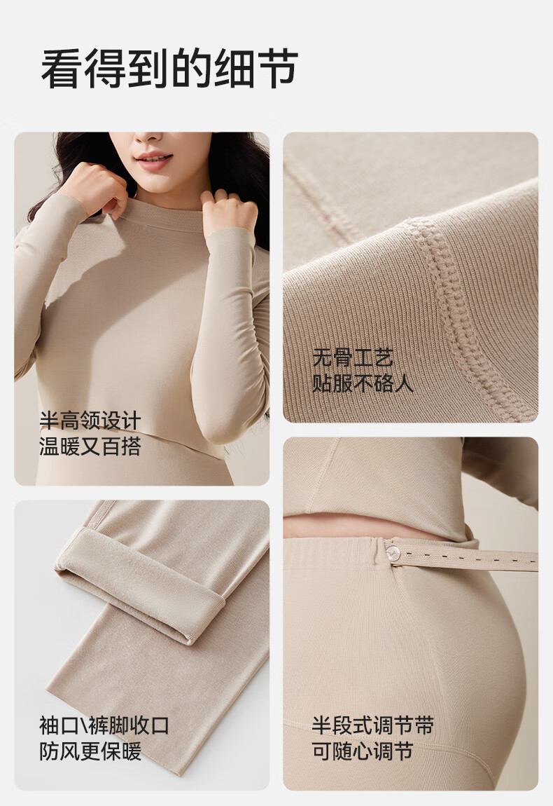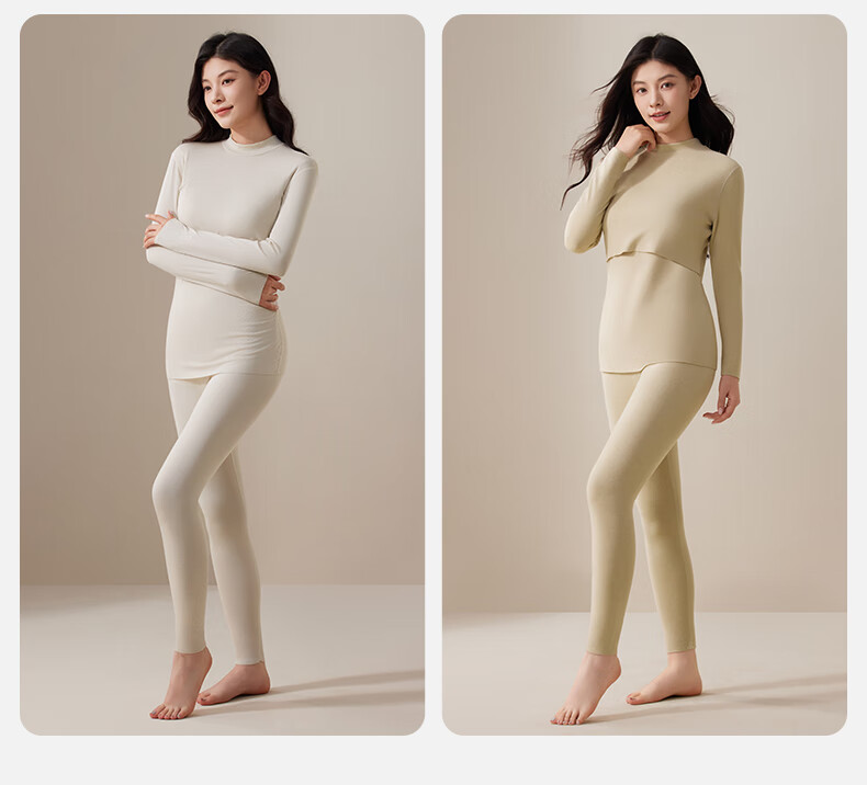 十月结晶秋衣裤套冬季孕产妇保暖内衣睡衣半高圆领打底衫带胸垫 丝雾棕XL