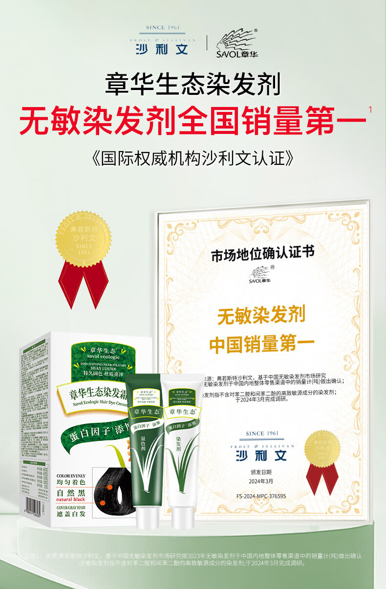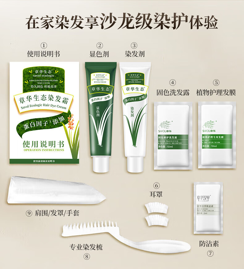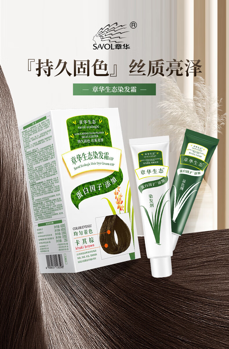 章华(SAVOL)生态染发剂植物不含对苯二氨温和霜染发膏焗油遮白发染头膏男女士 官方旗舰棕黑 4BY(美标)*1盒
