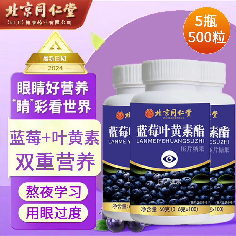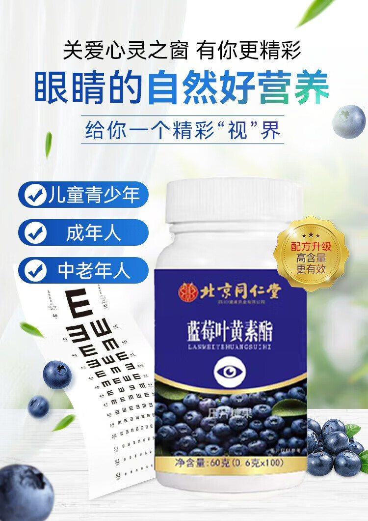 同仁堂北京同仁堂蓝莓叶黄素酯片 叶黄素成年人吃 叶黄素儿童蓝莓叶黄素 【3盒装】北同蓝莓叶黄素片