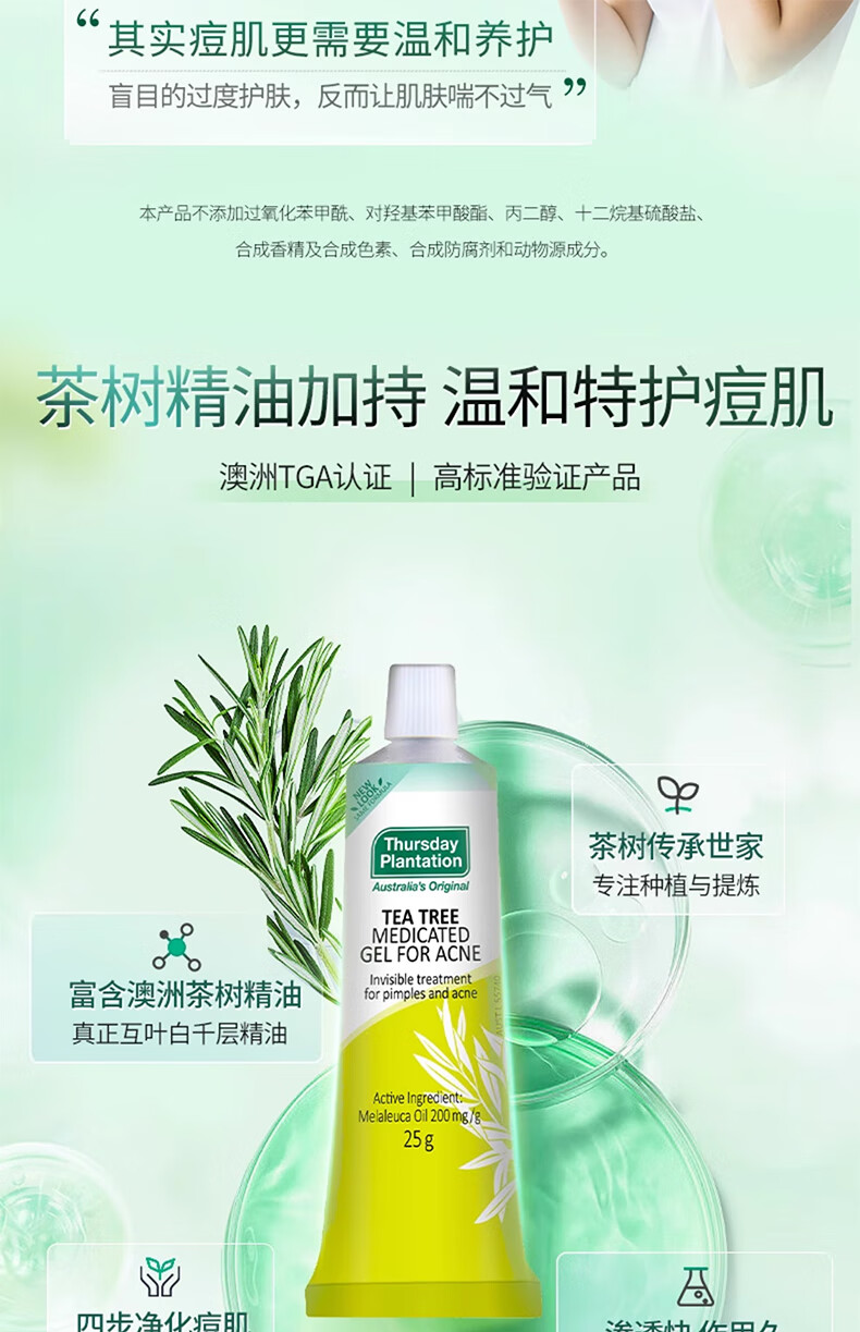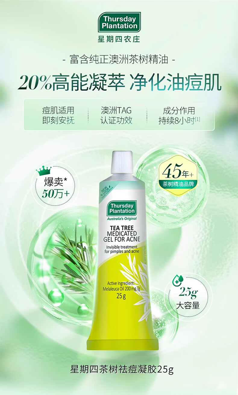 星期四农庄澳洲进口茶树精华祛痘凝胶25g 快速祛痘膏清痘净痘青春痘粉刺中秋