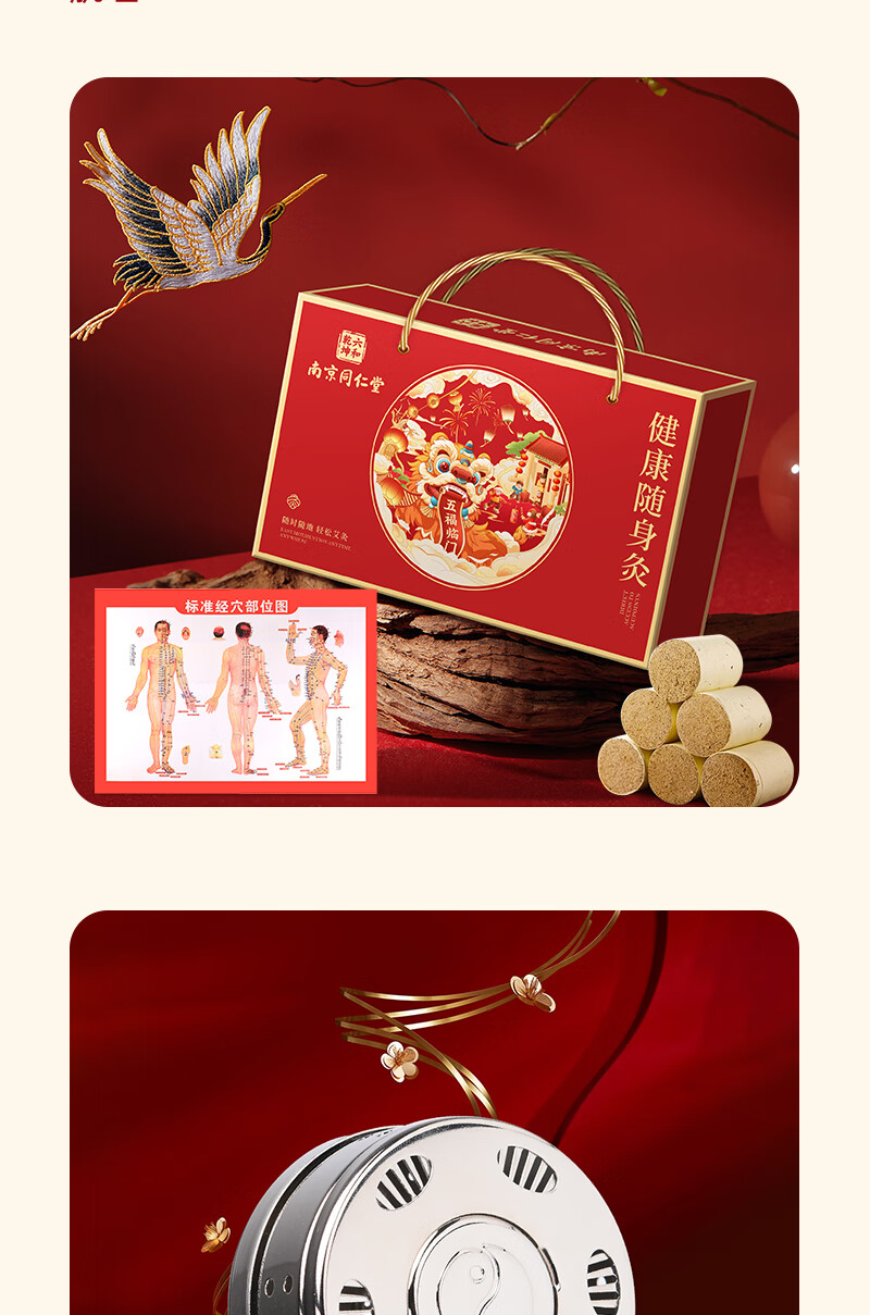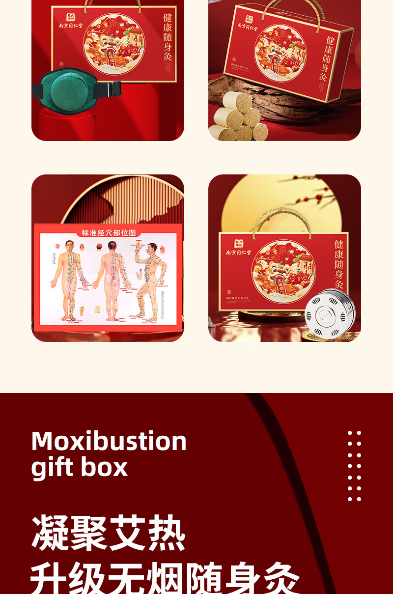 同仁堂艾灸盒无烟小悬灸艾草艾叶随身灸艾灸罐仪器家用热敷包节日礼物盒