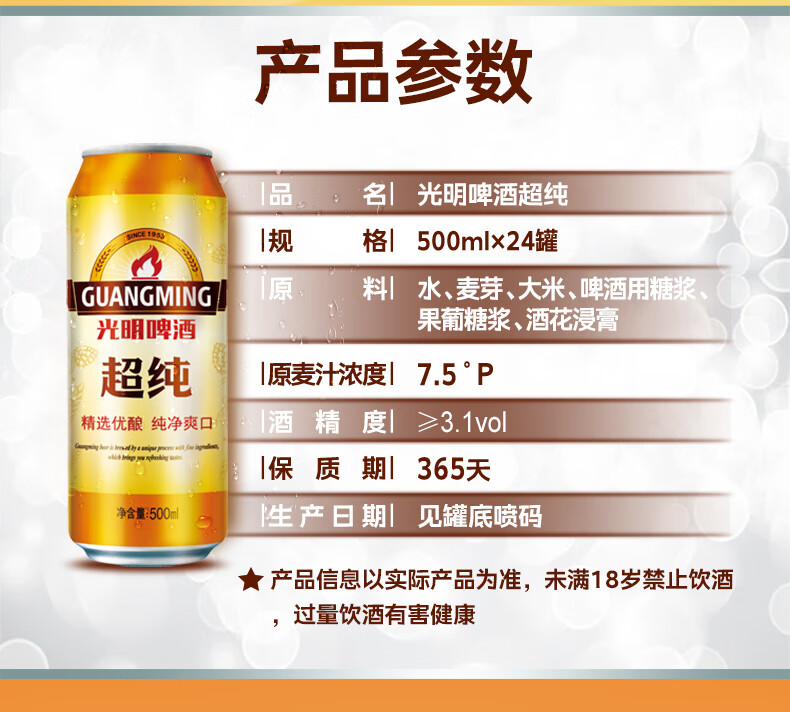 青岛啤酒(TsingTao)光明啤酒超纯7.5度罐装听装 500mL 24罐