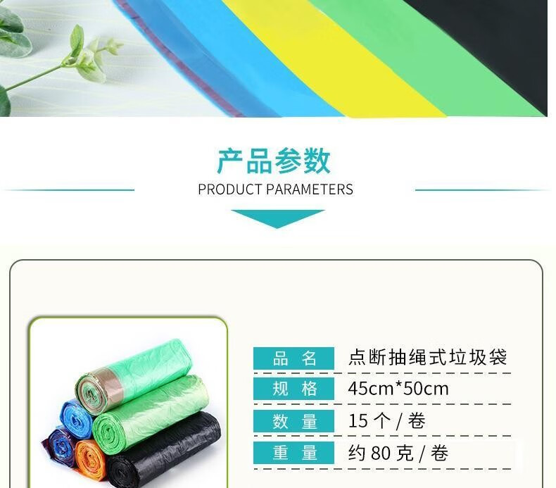 Jepoo【优选百货】垃圾袋手提抽绳垃圾袋加厚彩色断点式45cm*50cm大容 5卷共75只
