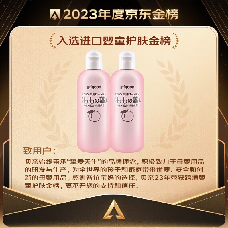 贝亲(Pigeon)桃子水桃叶婴儿儿童液体爽身露保湿四季通用200ml*2日本原装进口