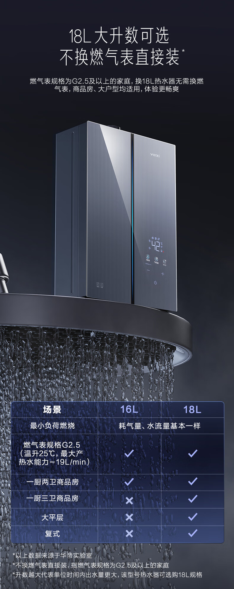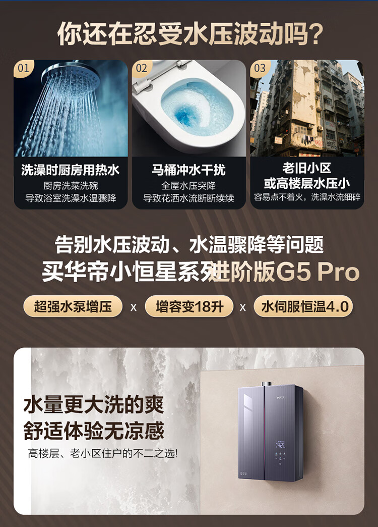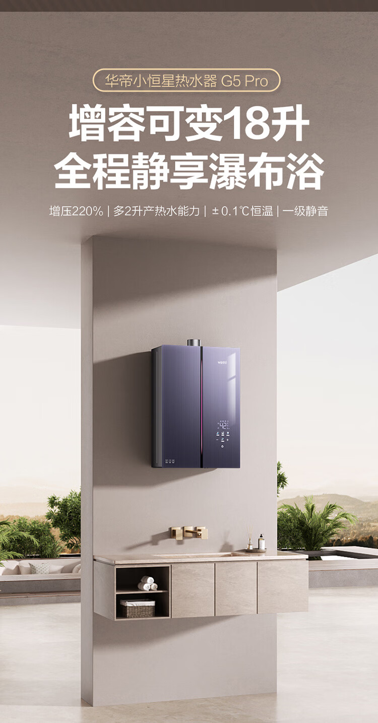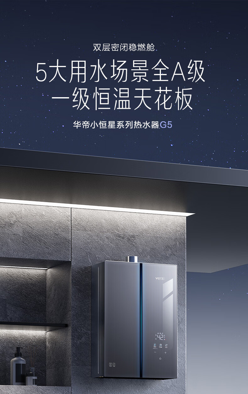 华帝(VATTI)官方补贴16升燃气热水器天然气G5小恒星下置风机5A级恒温一级静音变频水伺服即热式 以旧换新 16L G5Pro【增压增容18L】 燃热
