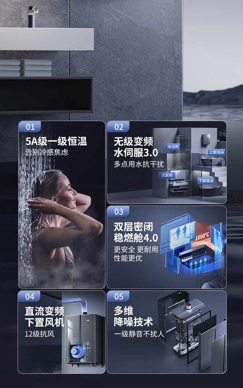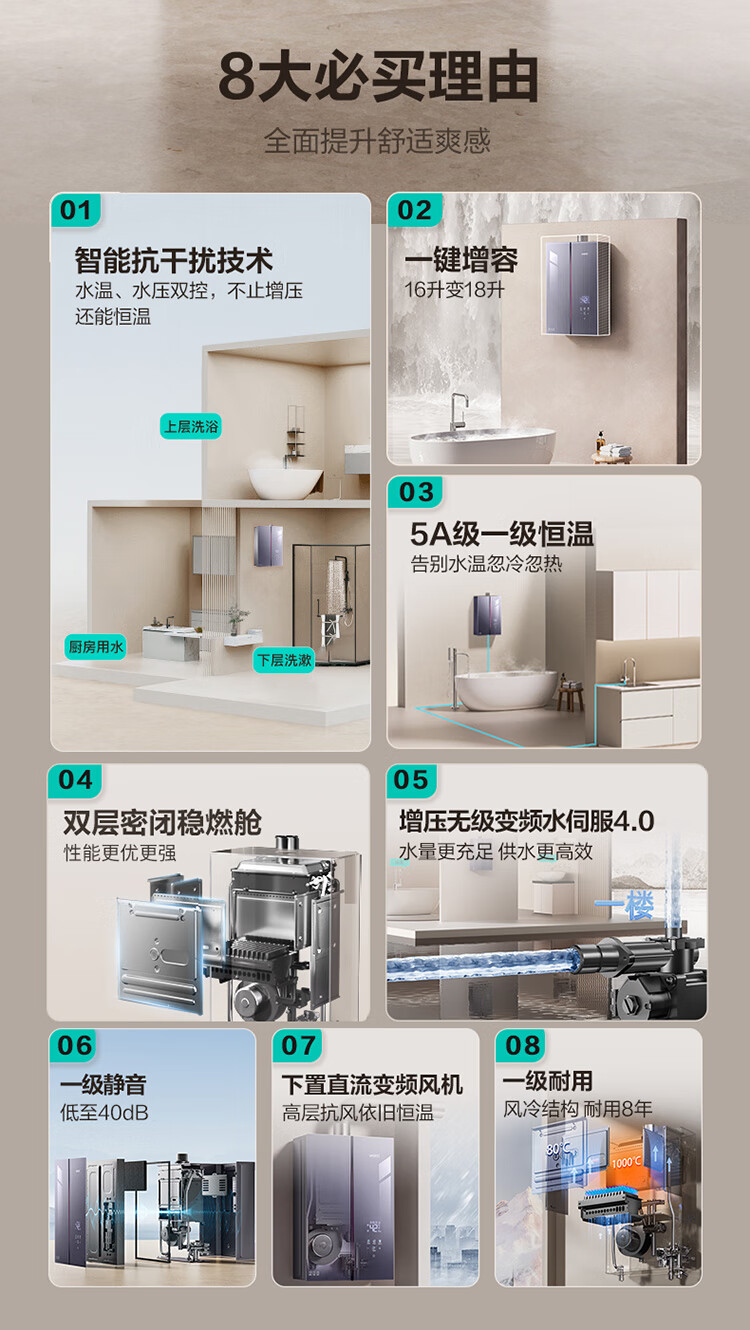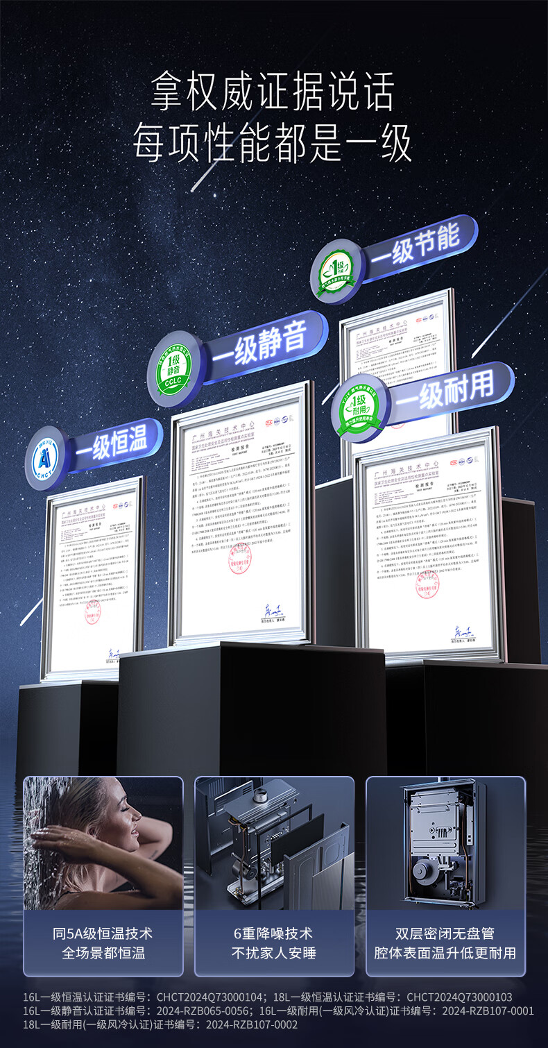 华帝(VATTI)官方补贴16升燃气热水器天然气G5小恒星下置风机5A级恒温一级静音变频水伺服即热式 以旧换新 16L G5Pro【增压增容18L】 燃热