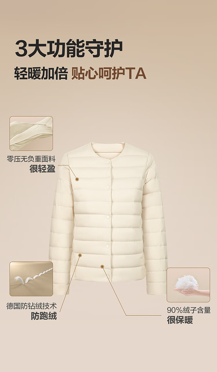 波司登轻薄羽绒服短款90绒轻量便捷收纳V领显瘦百搭内胆外套