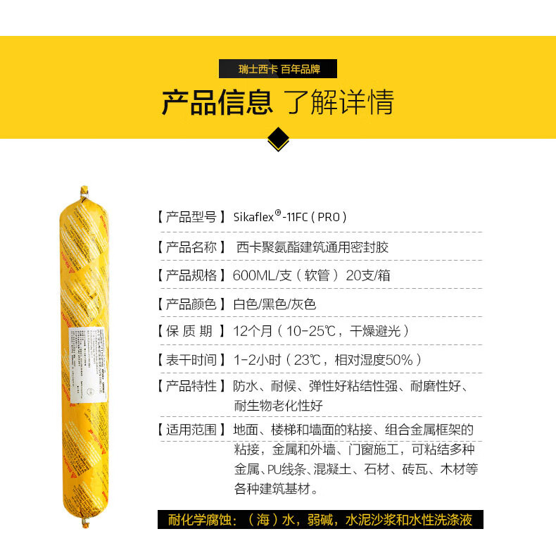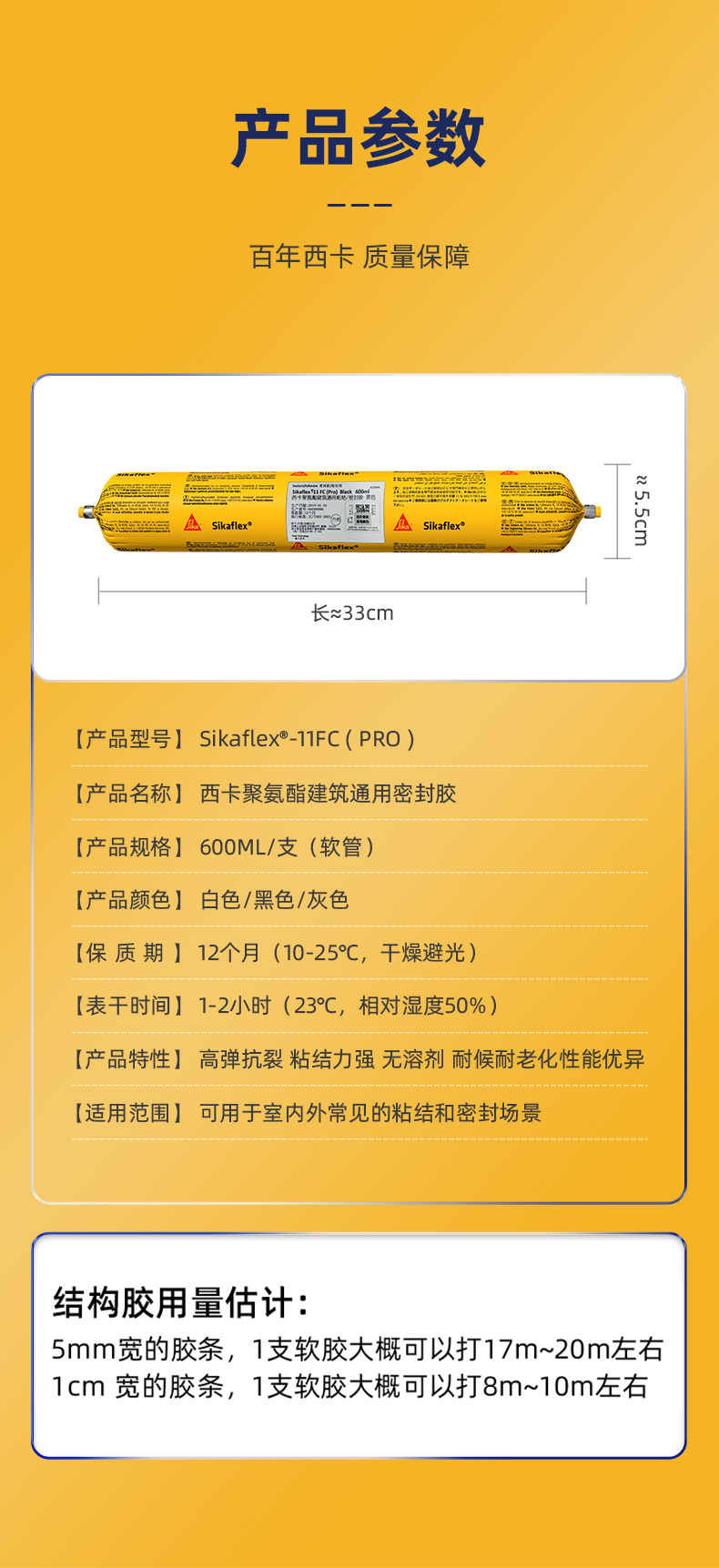西卡Sikaflex 11FC PRO 耐候结构胶耐高温强力 聚氨酯密封粘结胶 白色