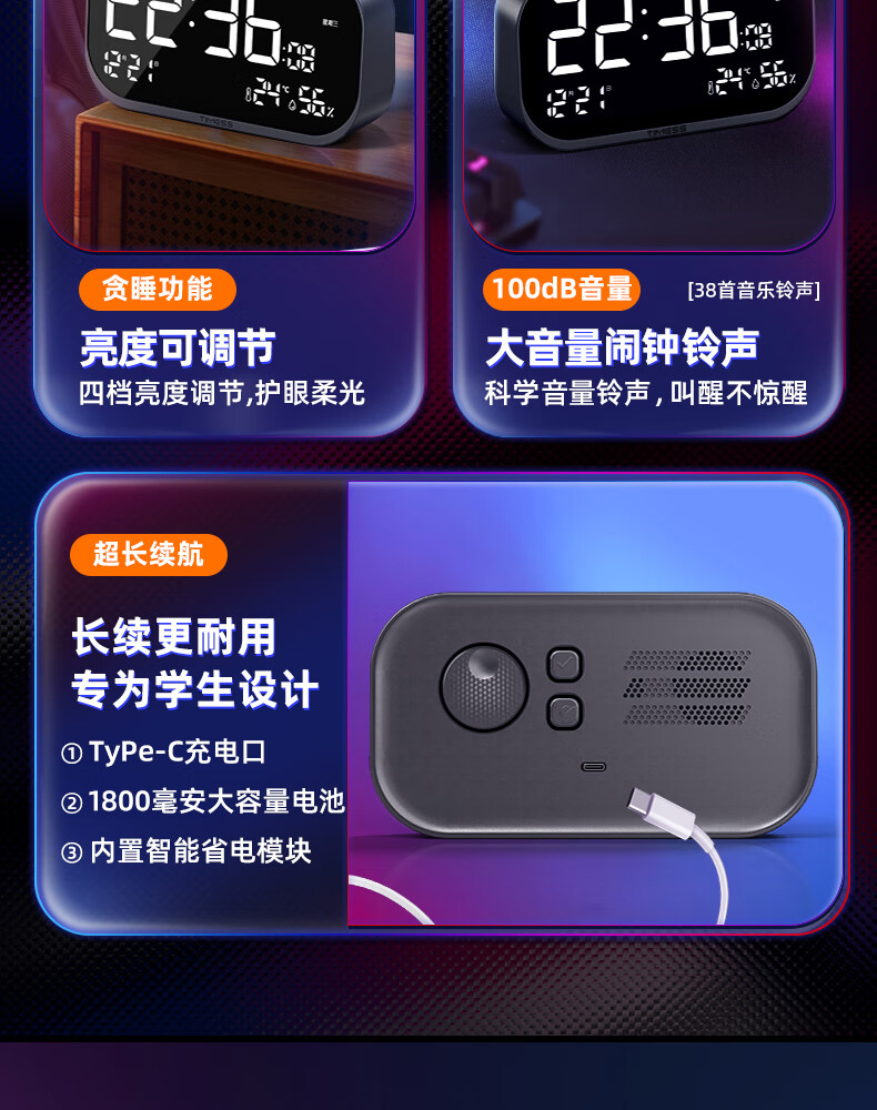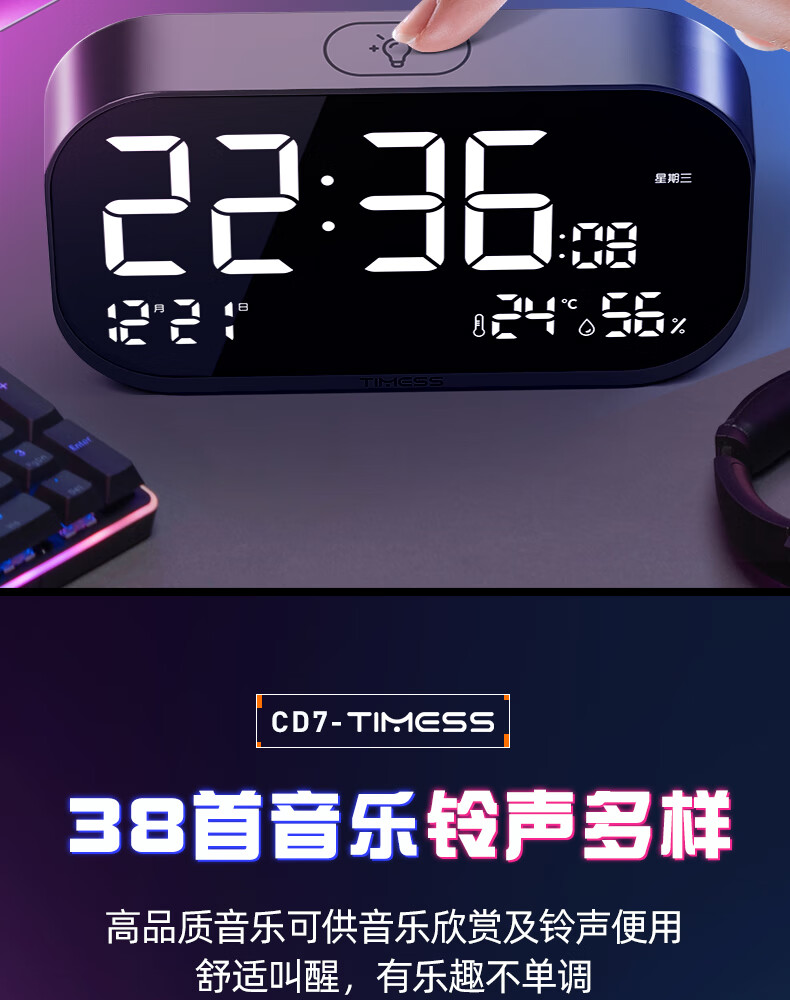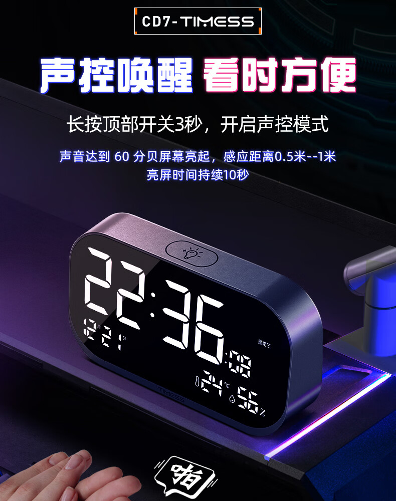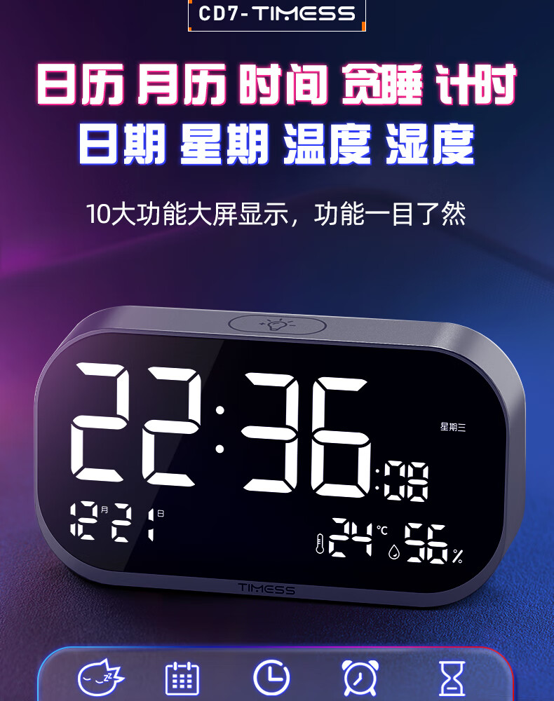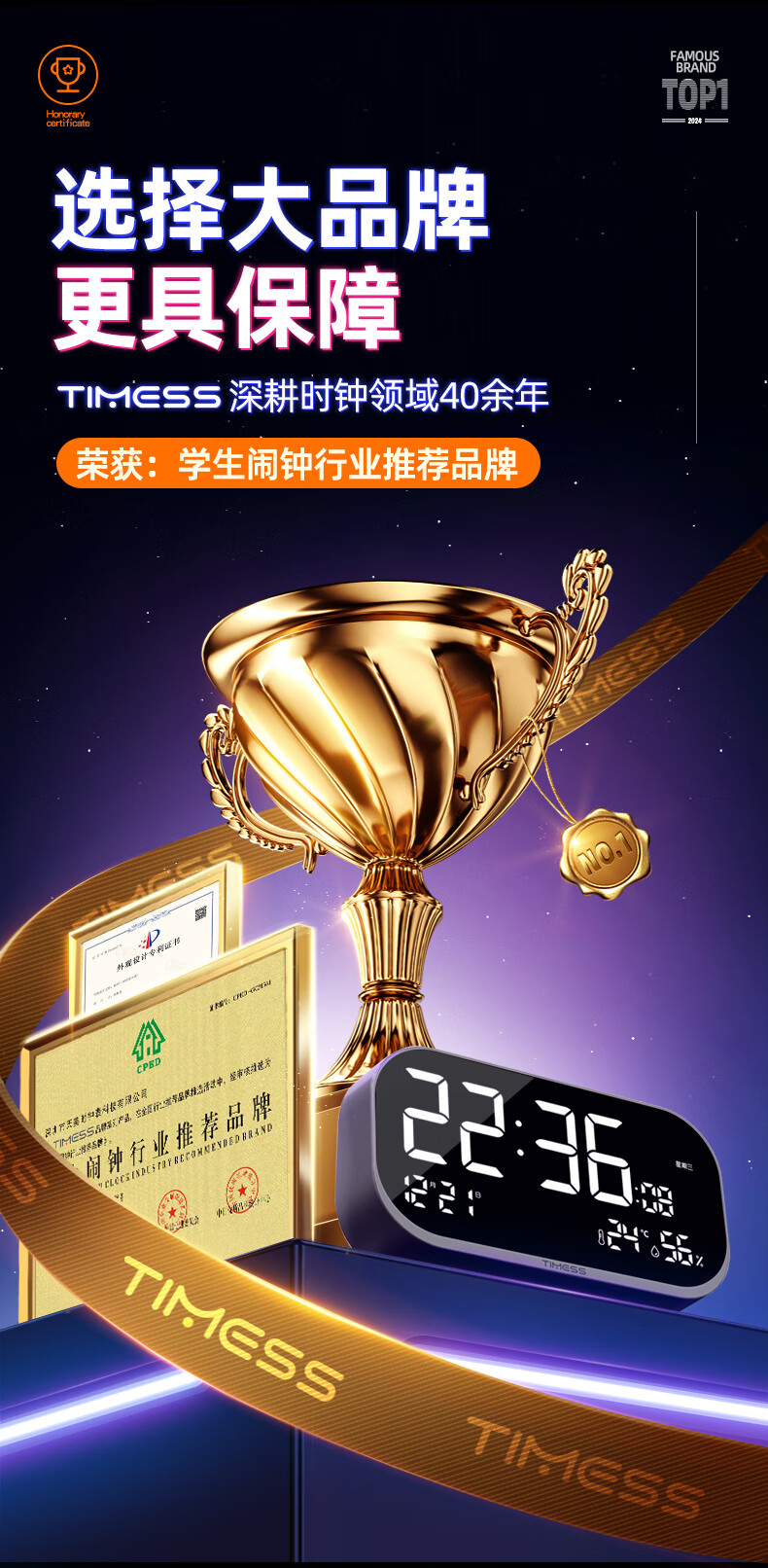 Timess【百亿补贴低价】闹钟大音量智能2025新款学生专用起床神器温湿度贪睡充电电子时钟开学季礼物