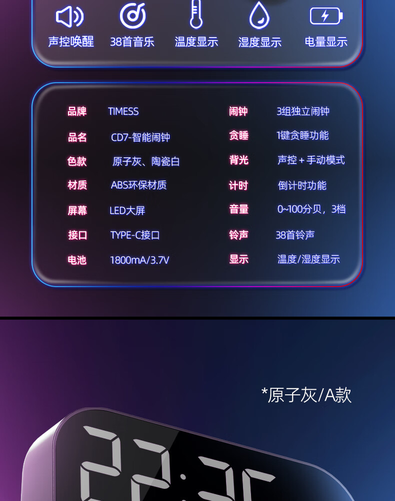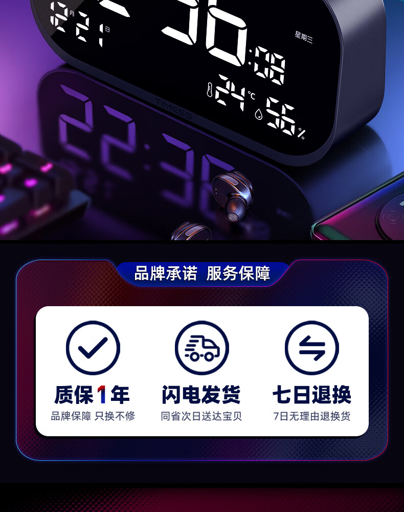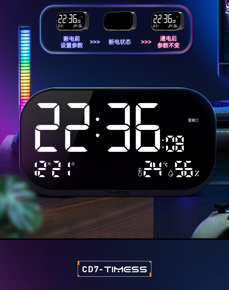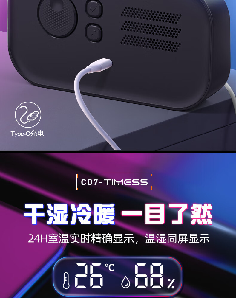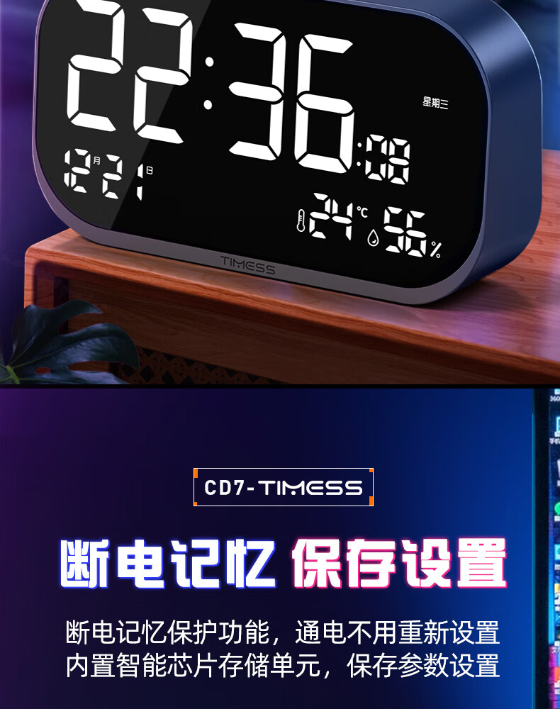 Timess【百亿补贴低价】闹钟大音量智能2025新款学生专用起床神器温湿度贪睡充电电子时钟开学季礼物
