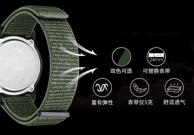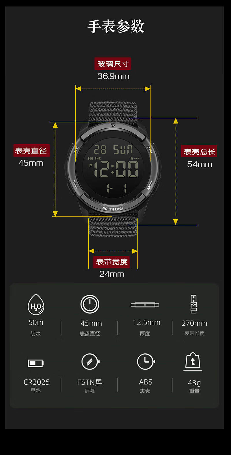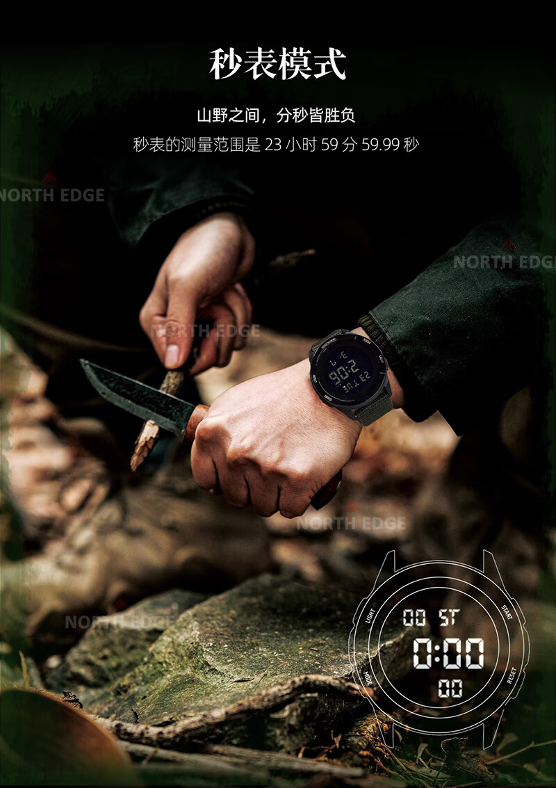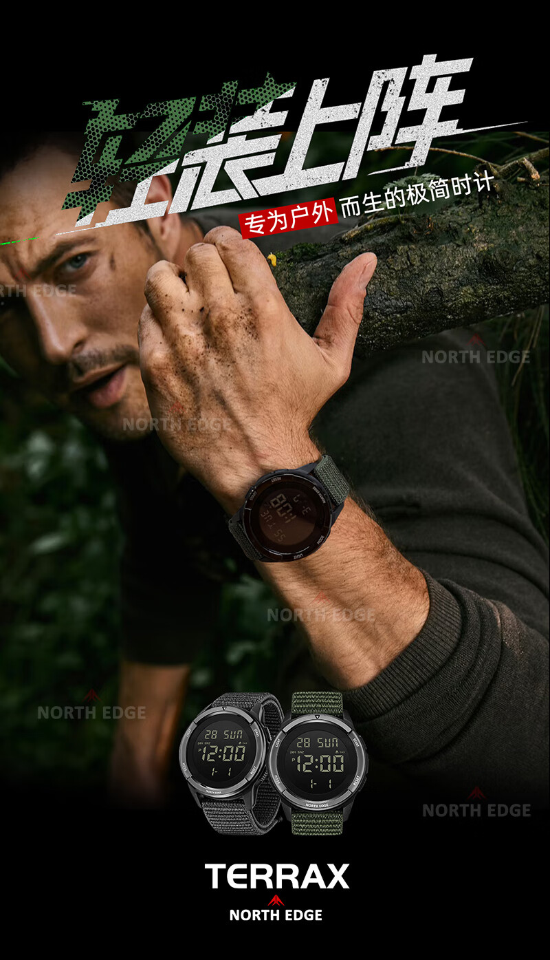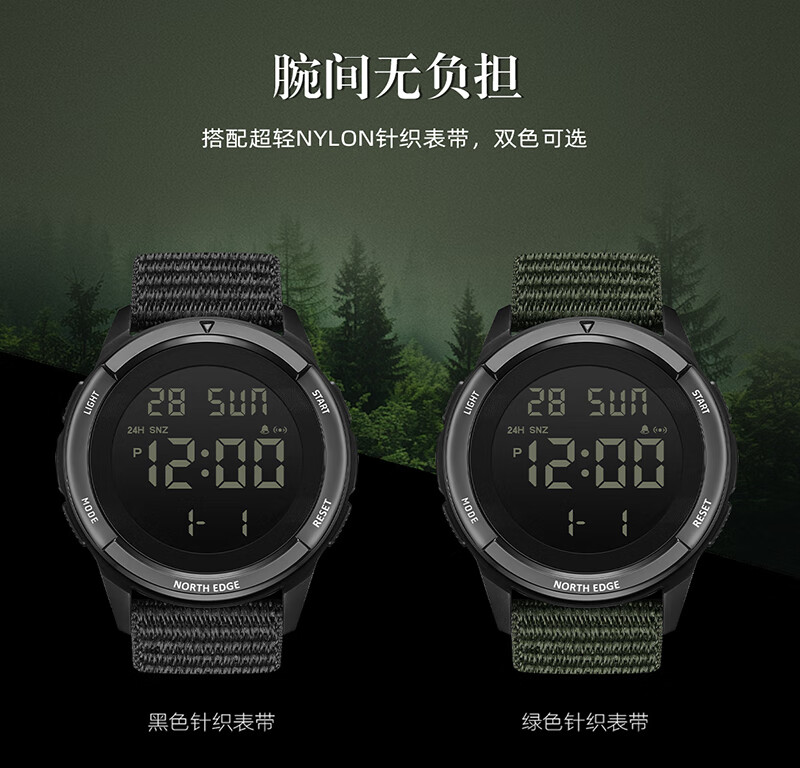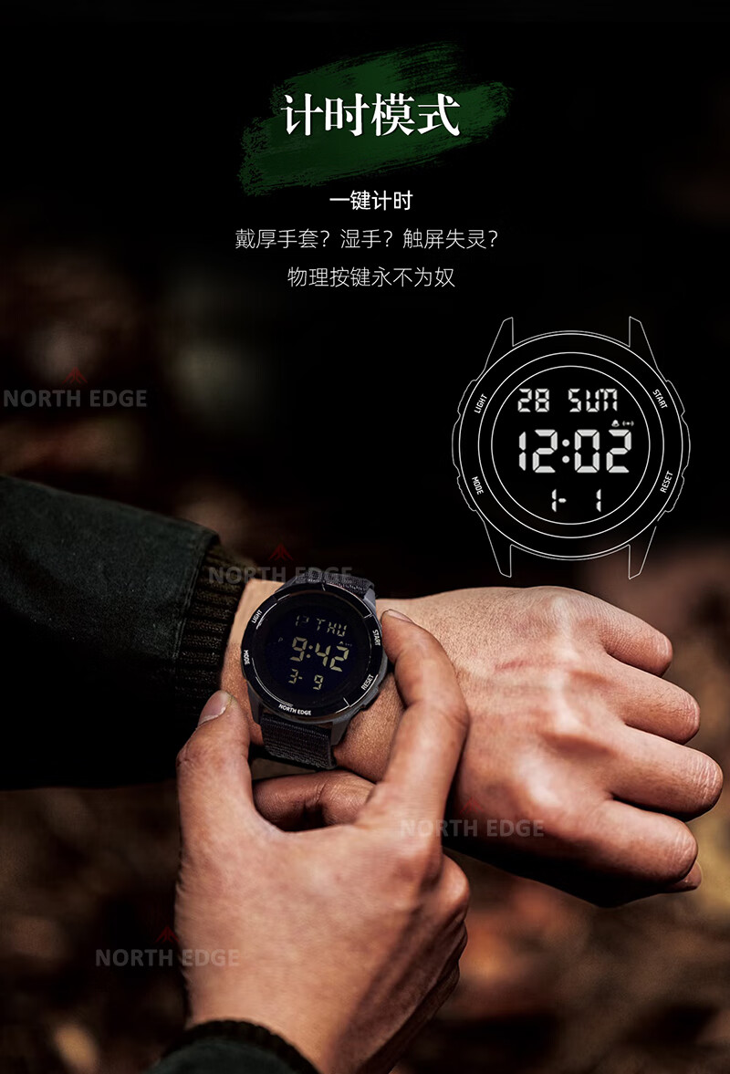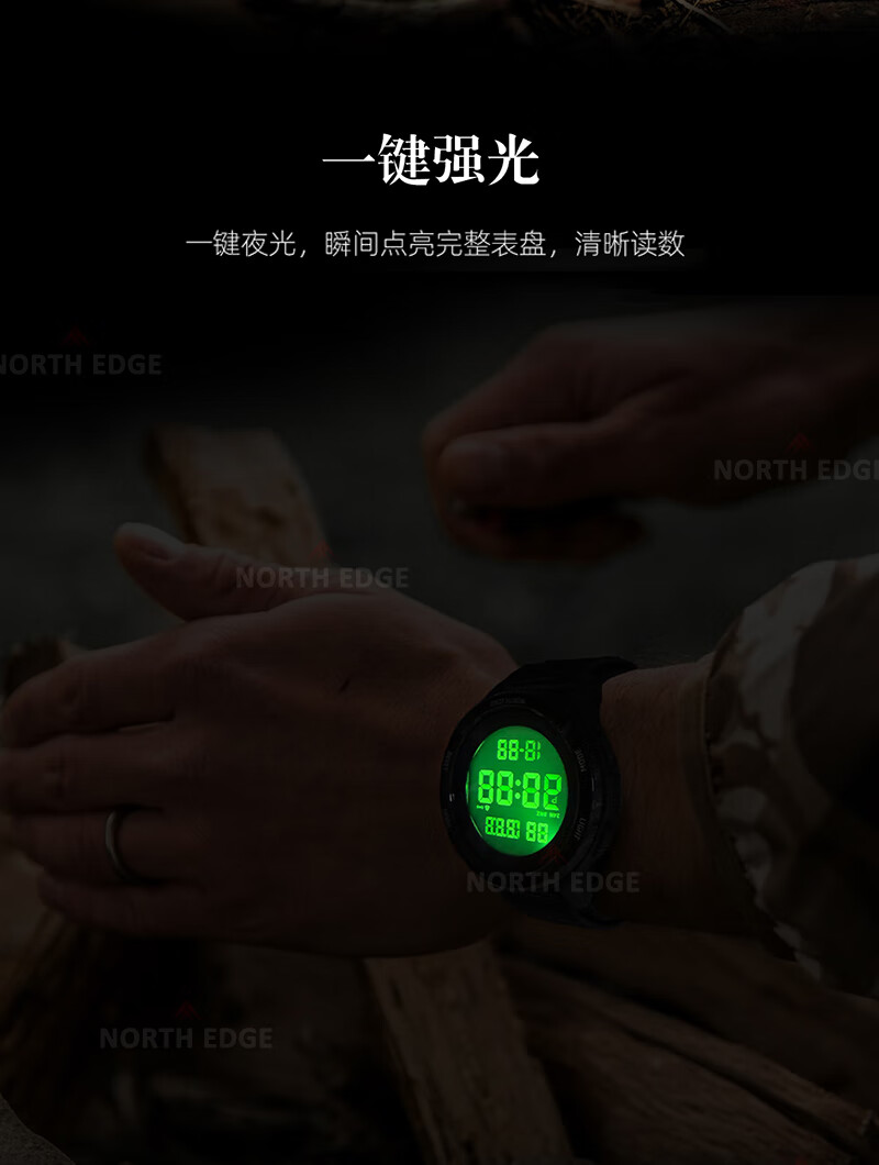 NORTH EDGE当兵训练运动电子手表男士军事风闹钟50米防水秒表倒计时轻便学生