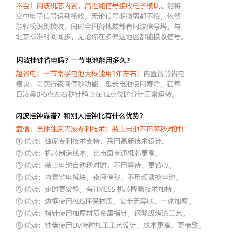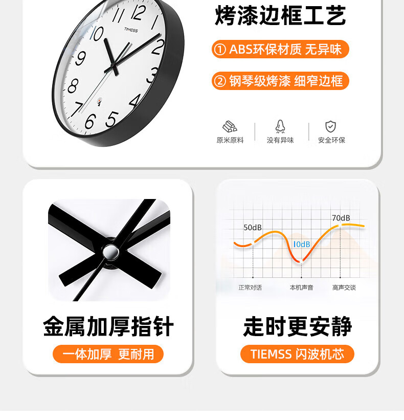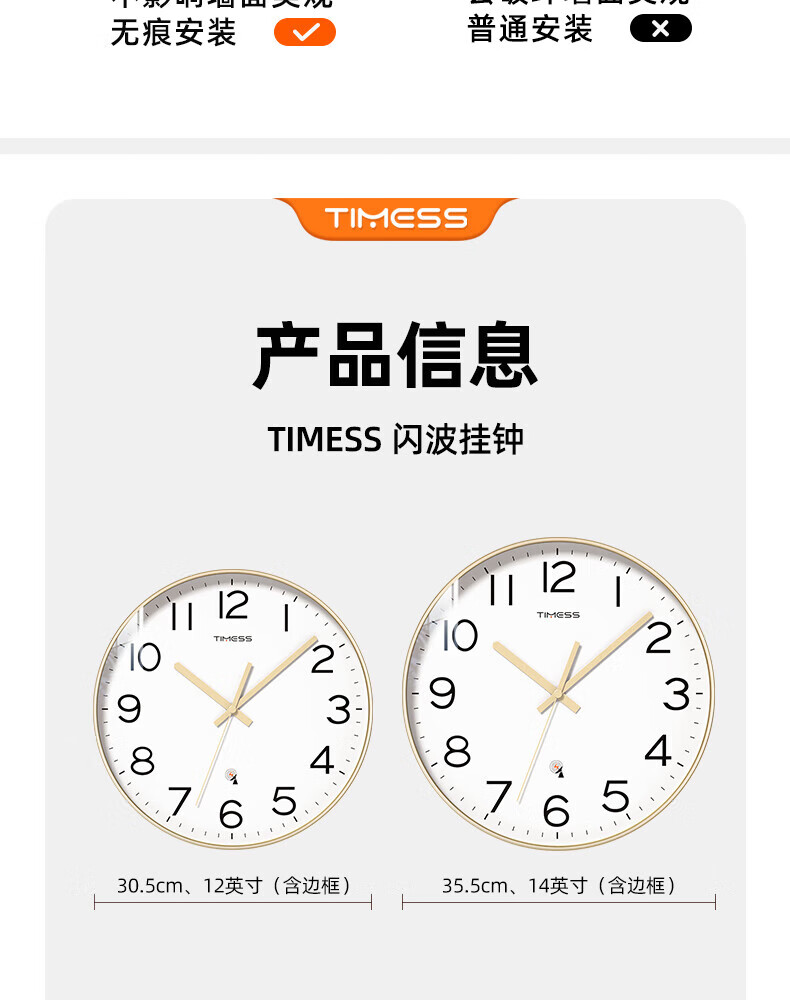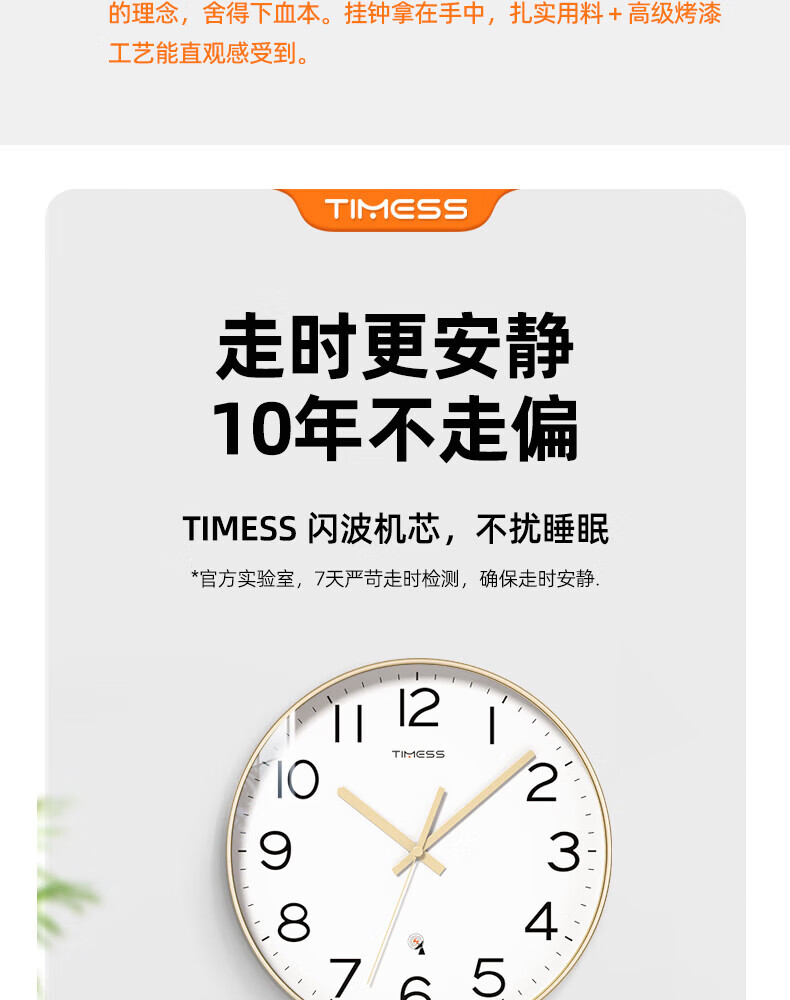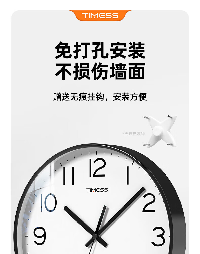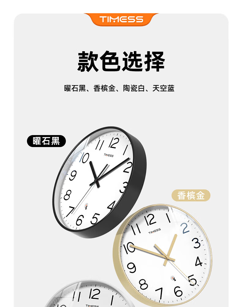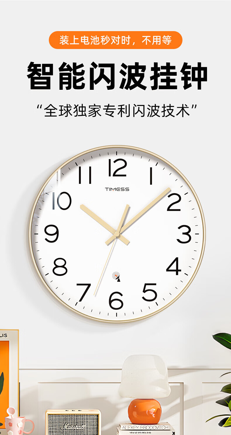 Timess电波钟挂钟客厅钟表2025新款时钟表挂墙自动对时免打孔挂表35cm