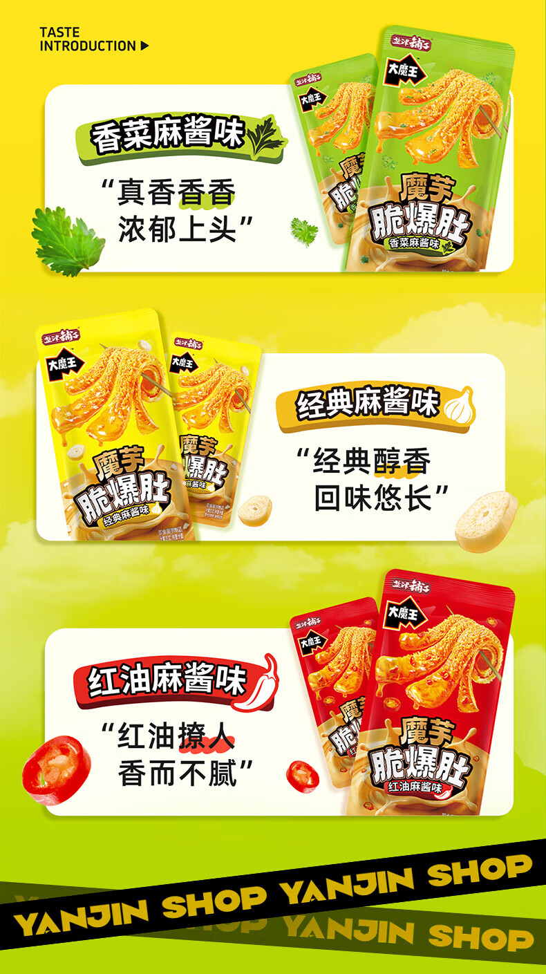 盐津铺子大魔王魔芋脆爆肚小吃零食魔芋丝脆爽解馋魔芋干素爆肚 香菜麻酱味 180g*1袋 (约20小包)
