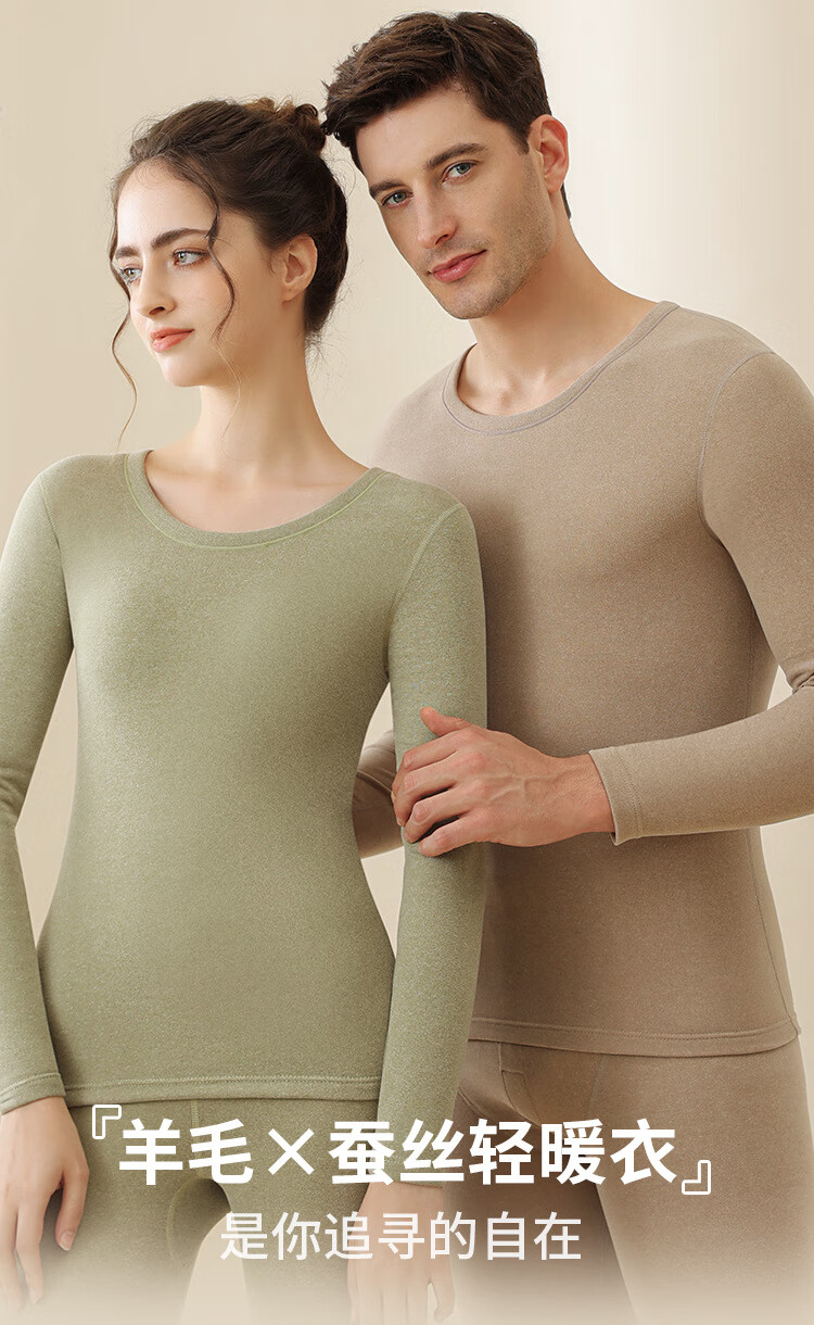 思织沁羊毛蚕丝保暖内衣套装情侣款秋冬季加绒加厚圆领秋衣秋裤打底套装 轻奢羊毛蚕丝 (紫色)女 L