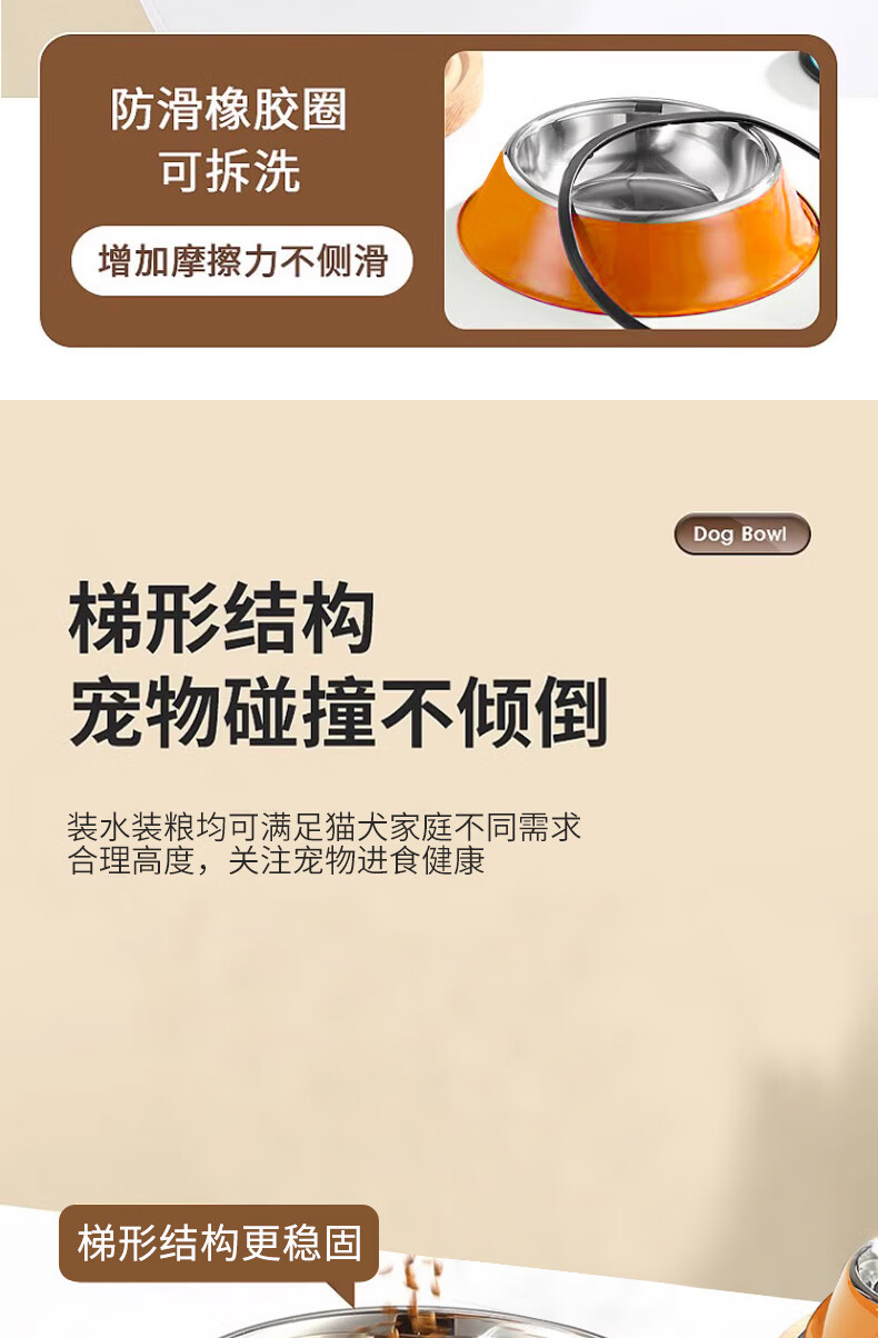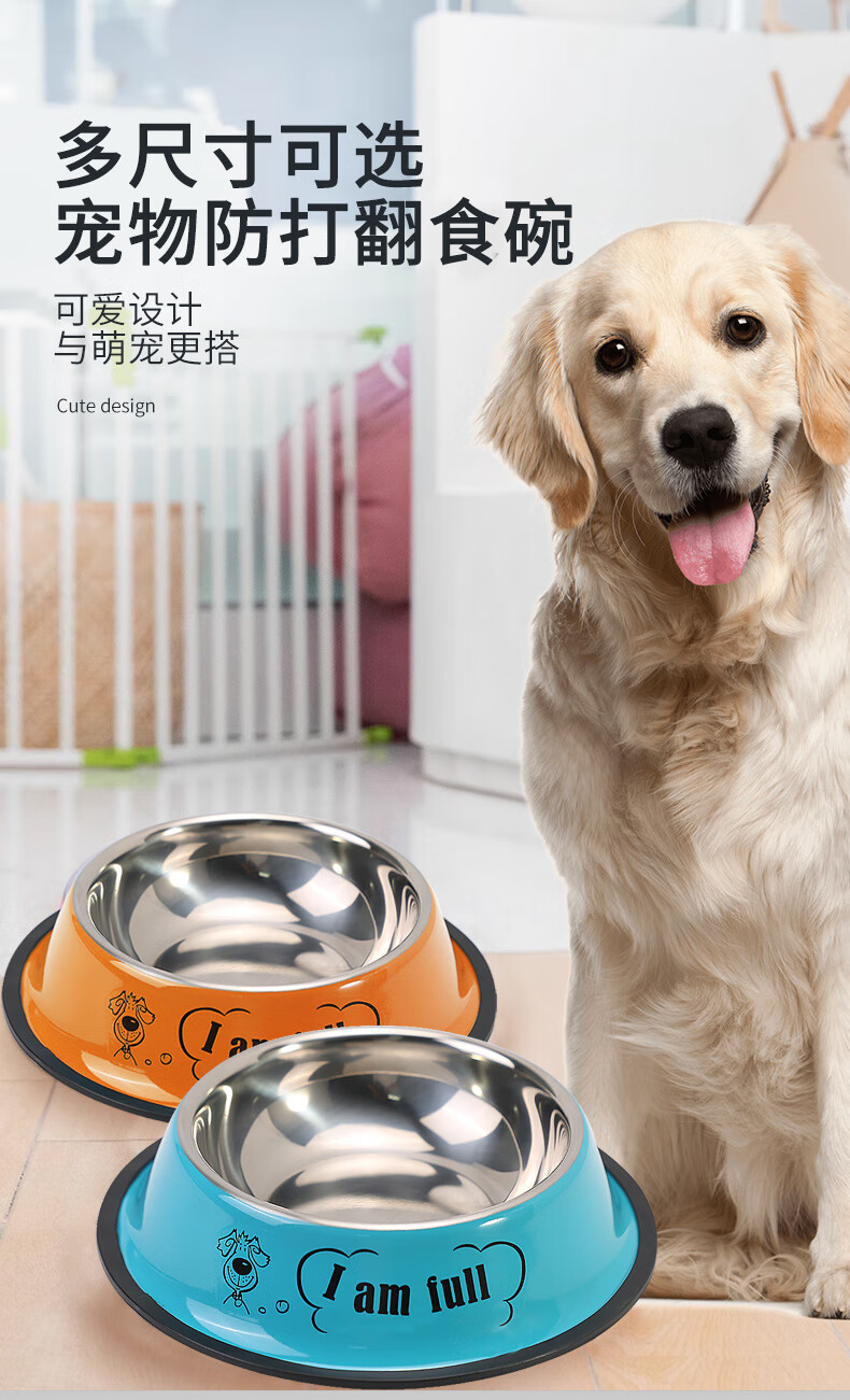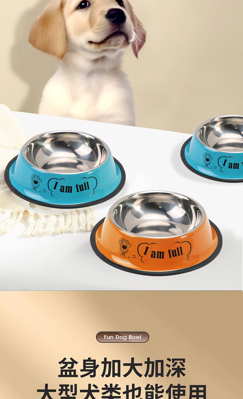 萌嘟星宠防打翻狗碗狗食盆不锈钢双碗猫碗狗粮喂食喝饮水器中小型犬 2套装