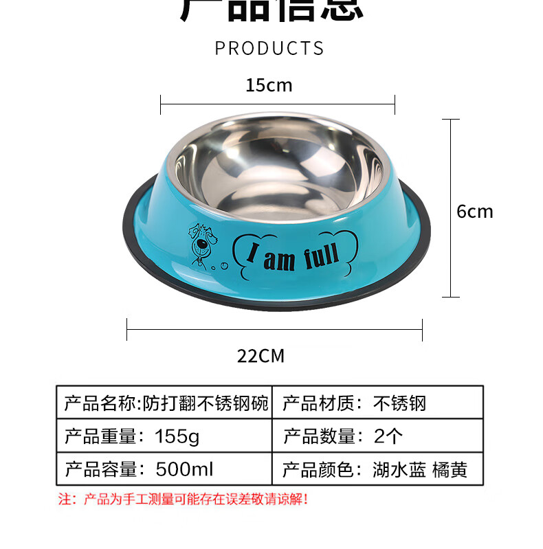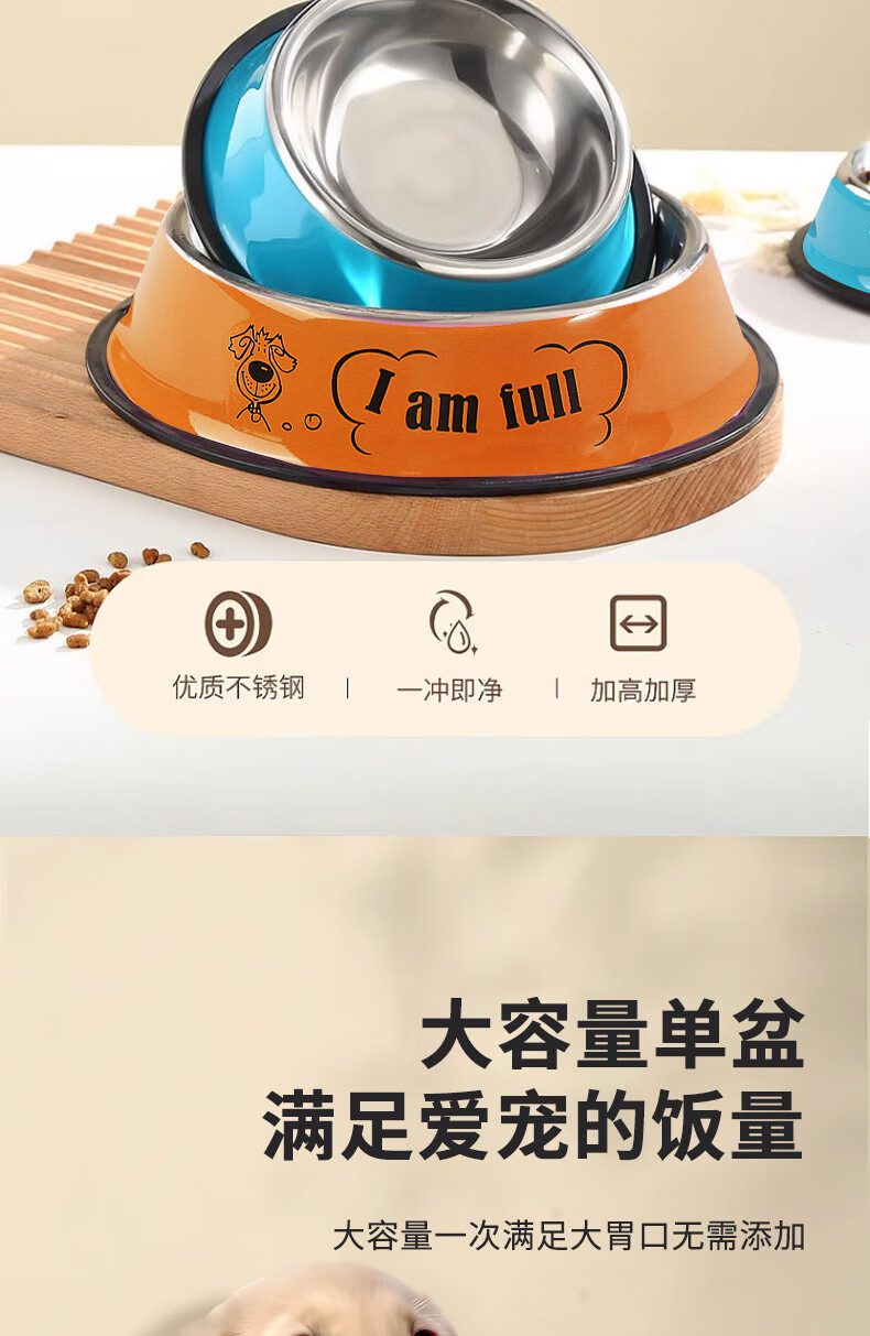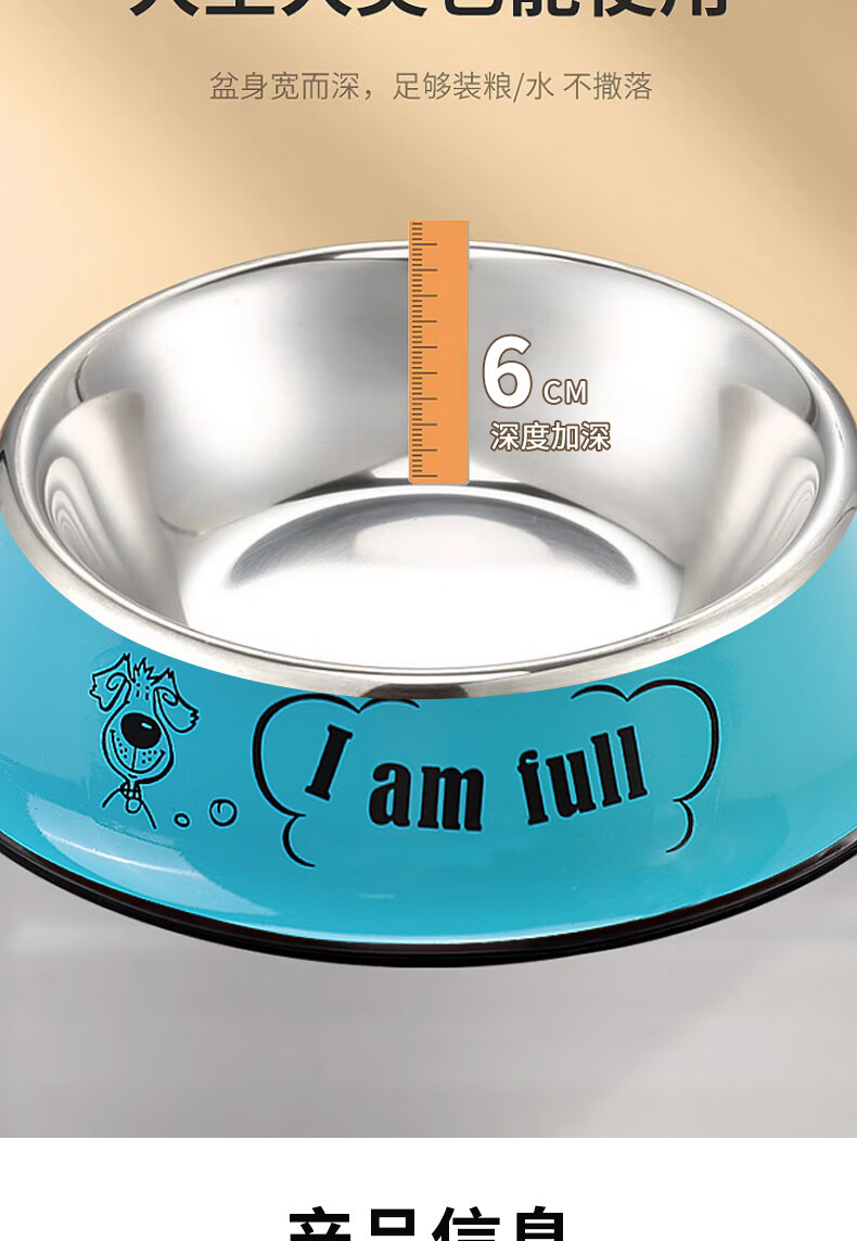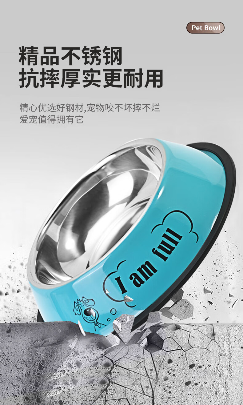 萌嘟星宠防打翻狗碗狗食盆不锈钢双碗猫碗狗粮喂食喝饮水器中小型犬 2套装
