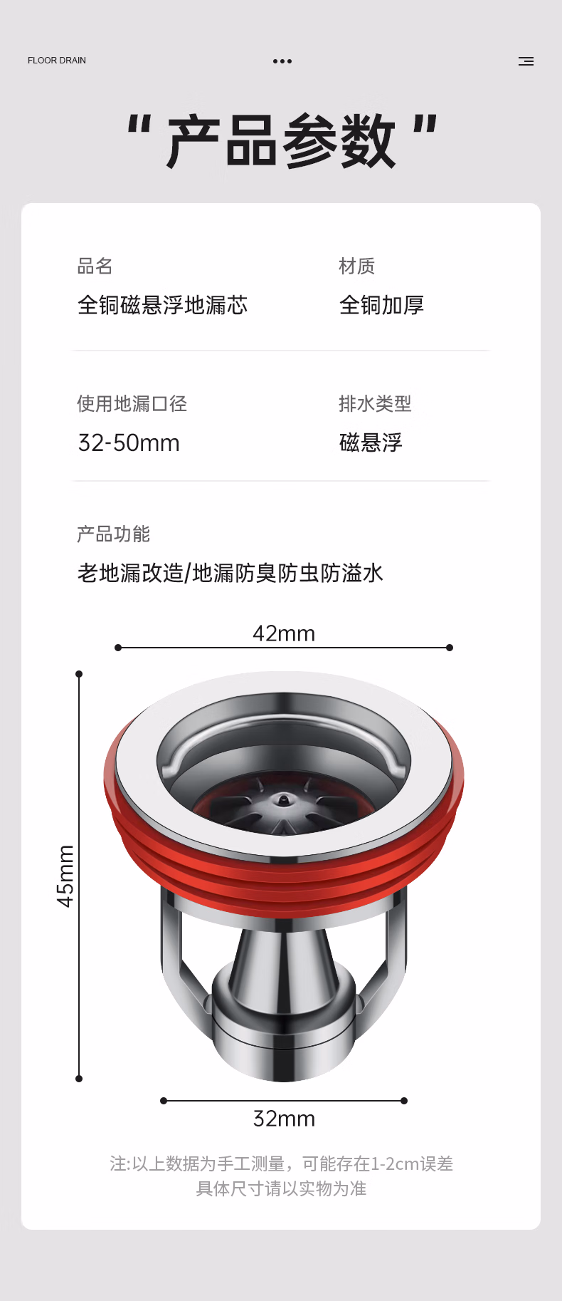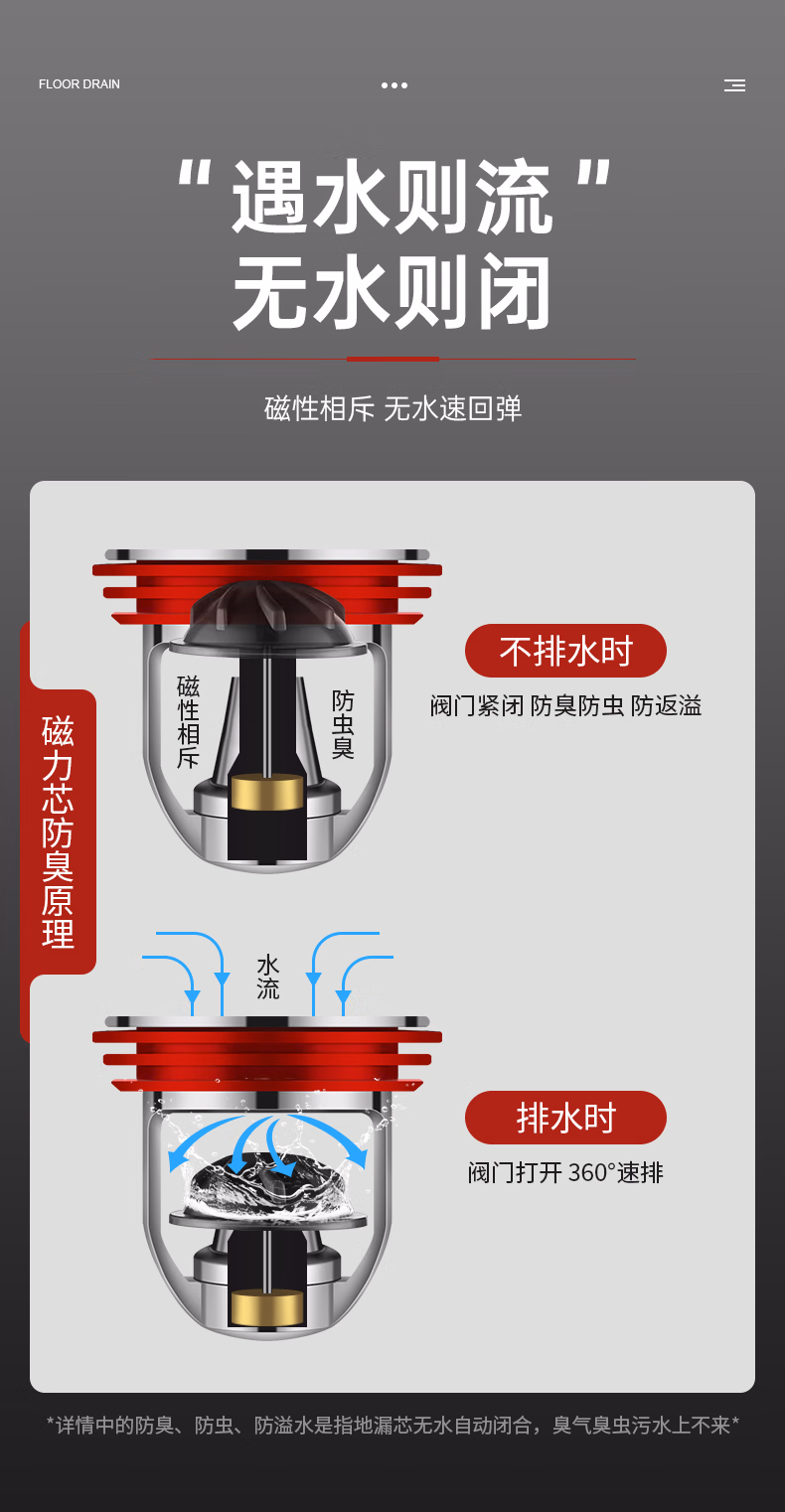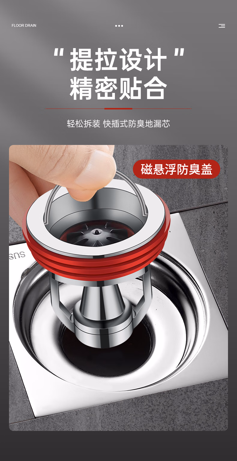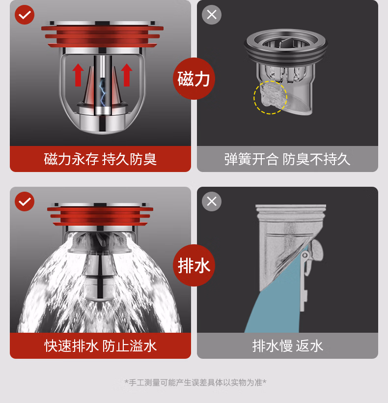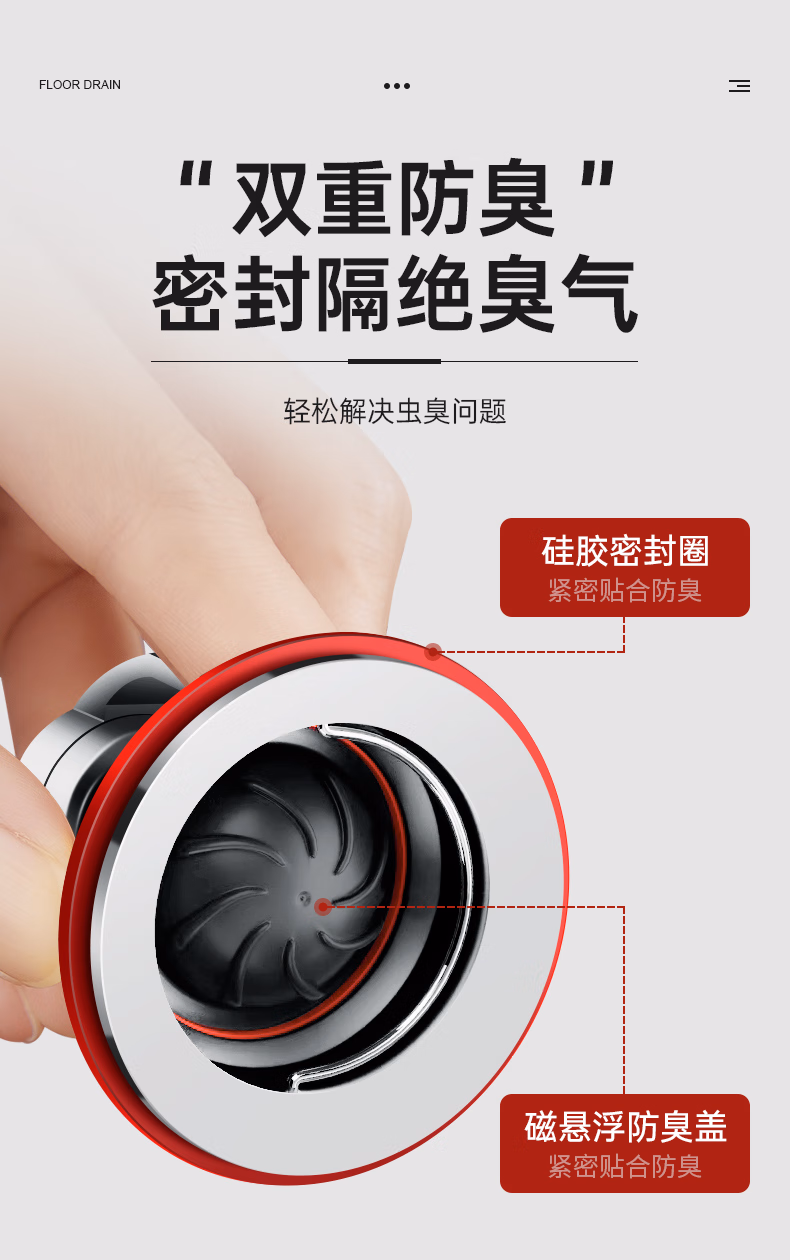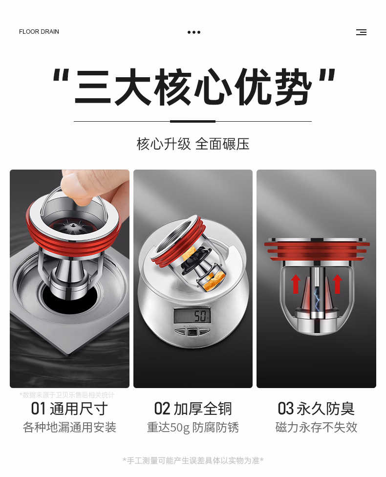 DEATKN德国全铜地漏防臭器卫生间通用内芯下水管道防返臭封闭口盖止逆阀 流光银 【全铜磁悬浮地漏芯】 1