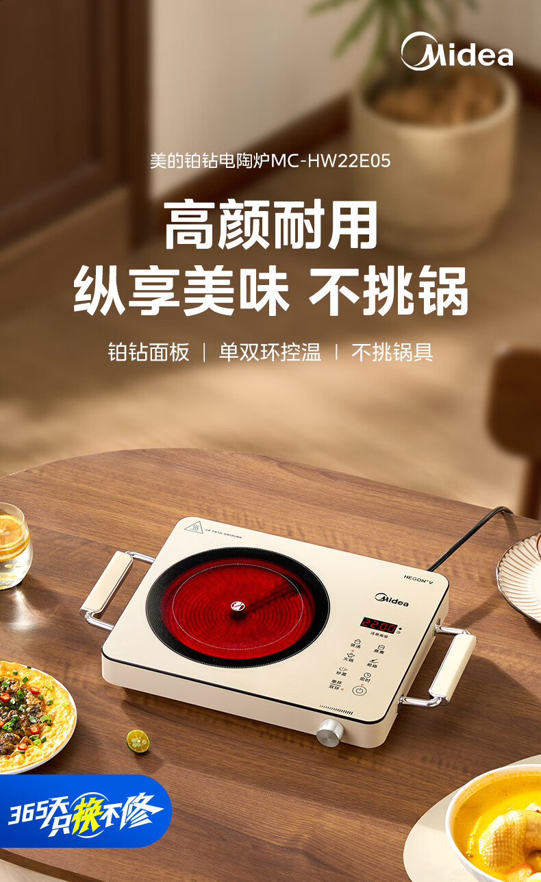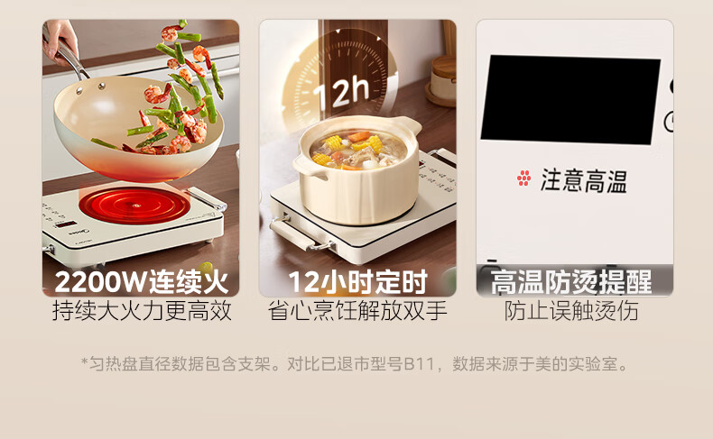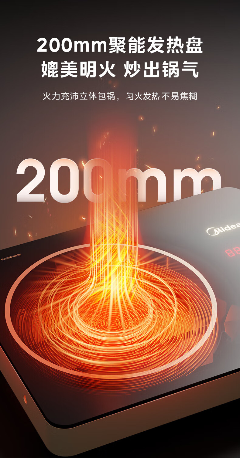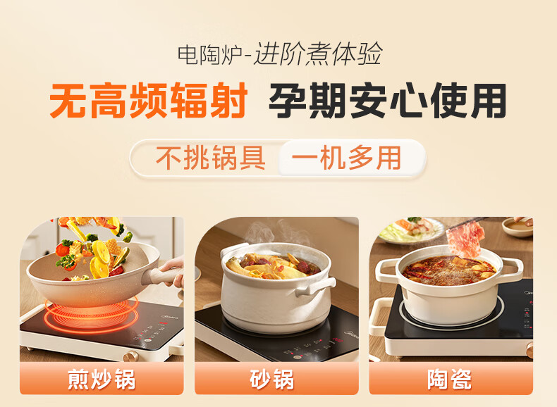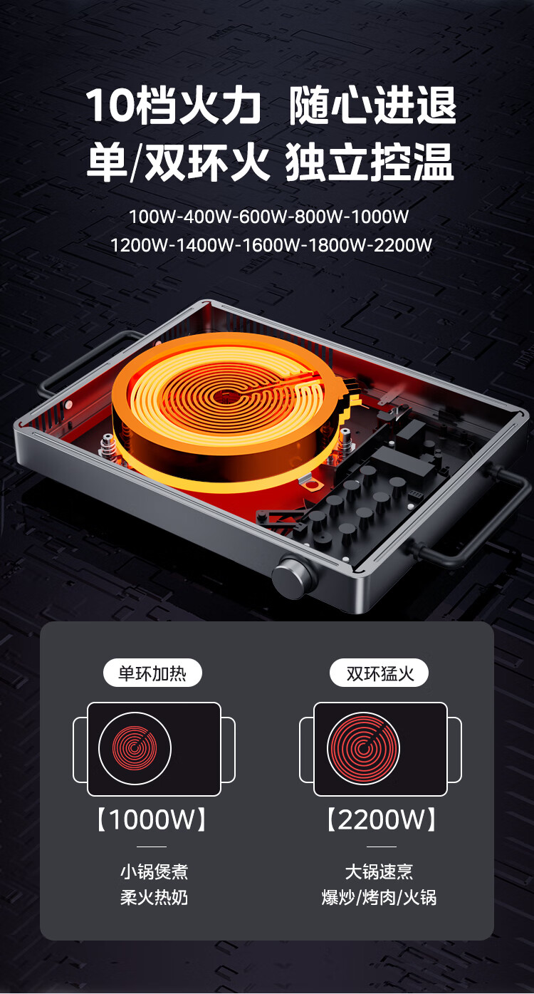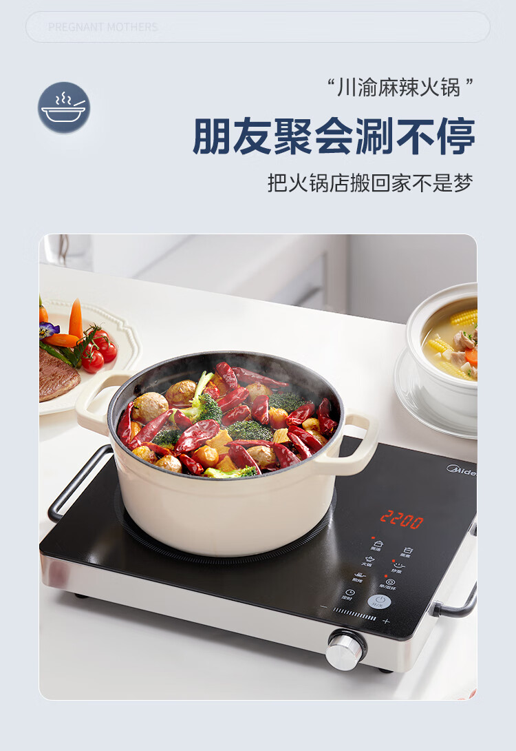 美的(Midea)电陶炉 电磁炉 家用小型煮茶火锅旋控2200W大功率电磁灶内外双环控火 智能定时自由调节火力 【不挑锅具】HW2210