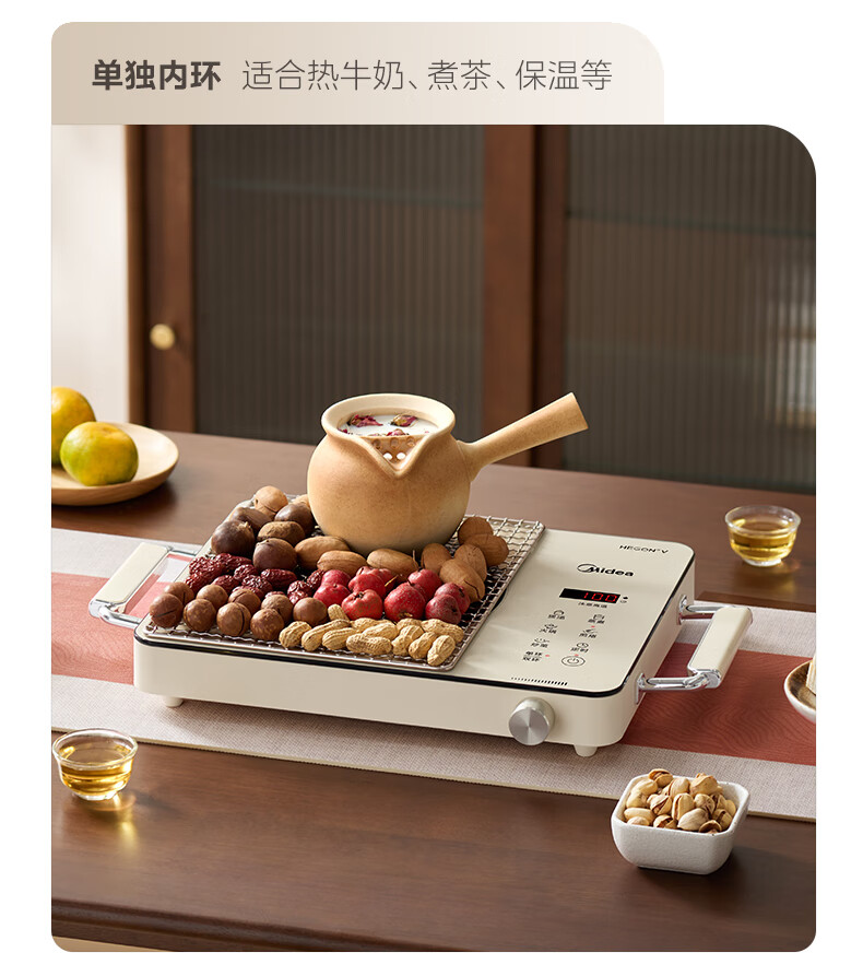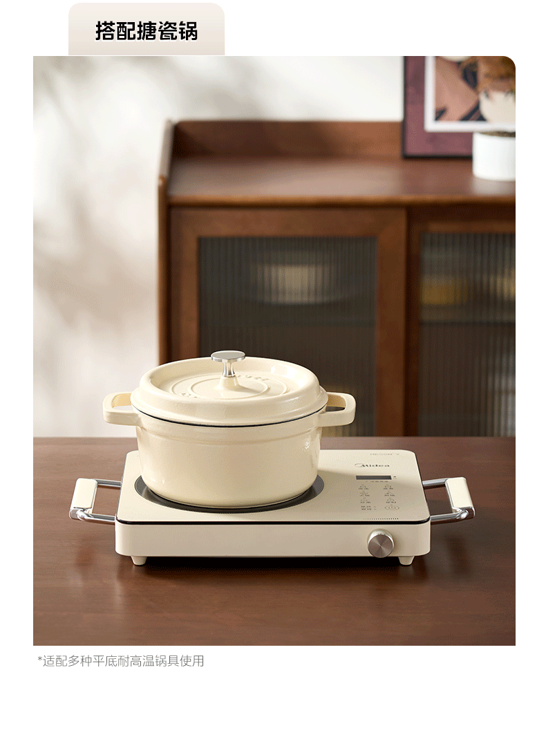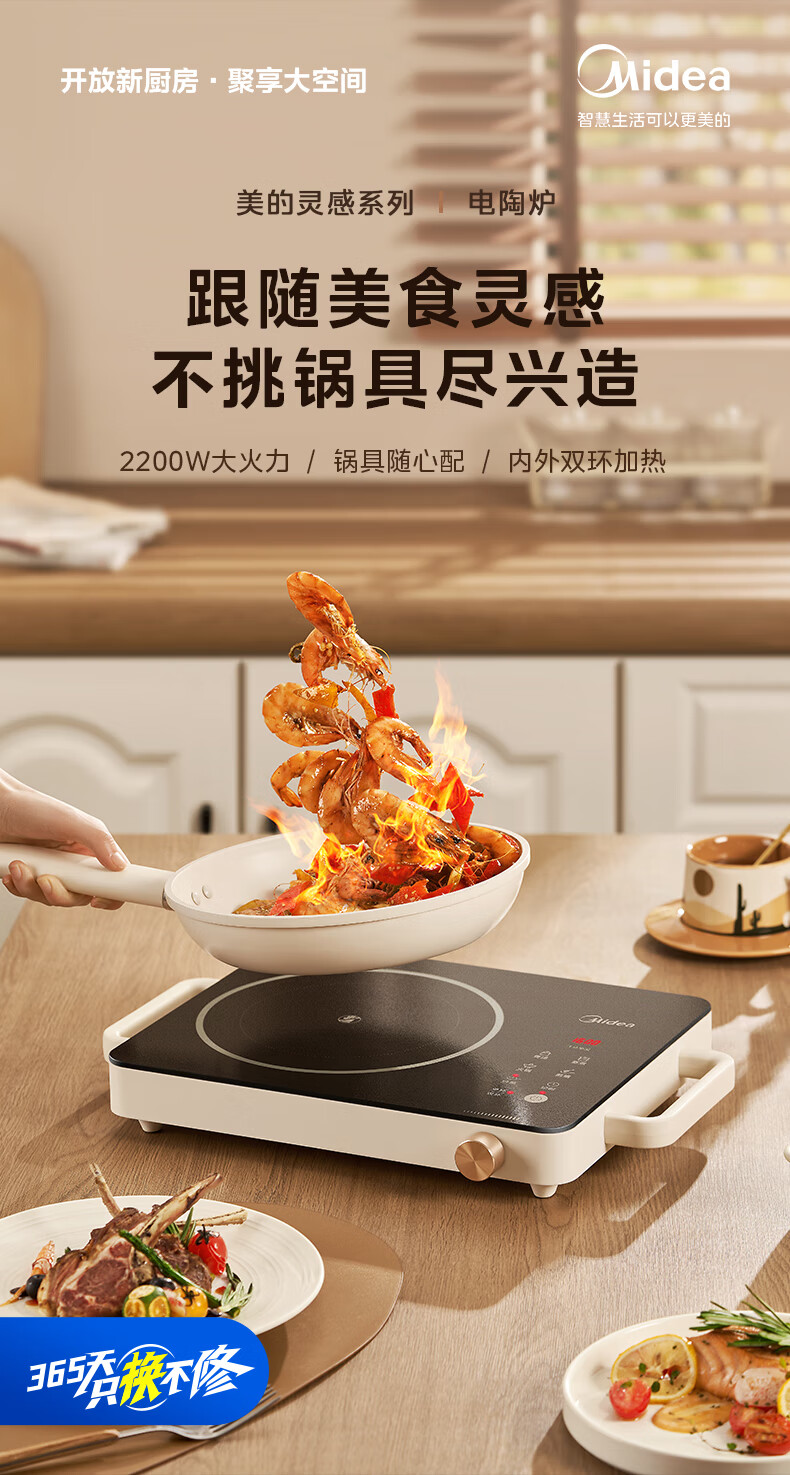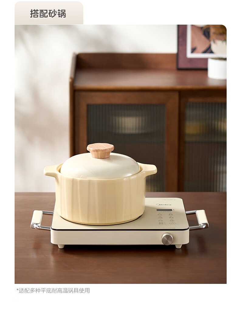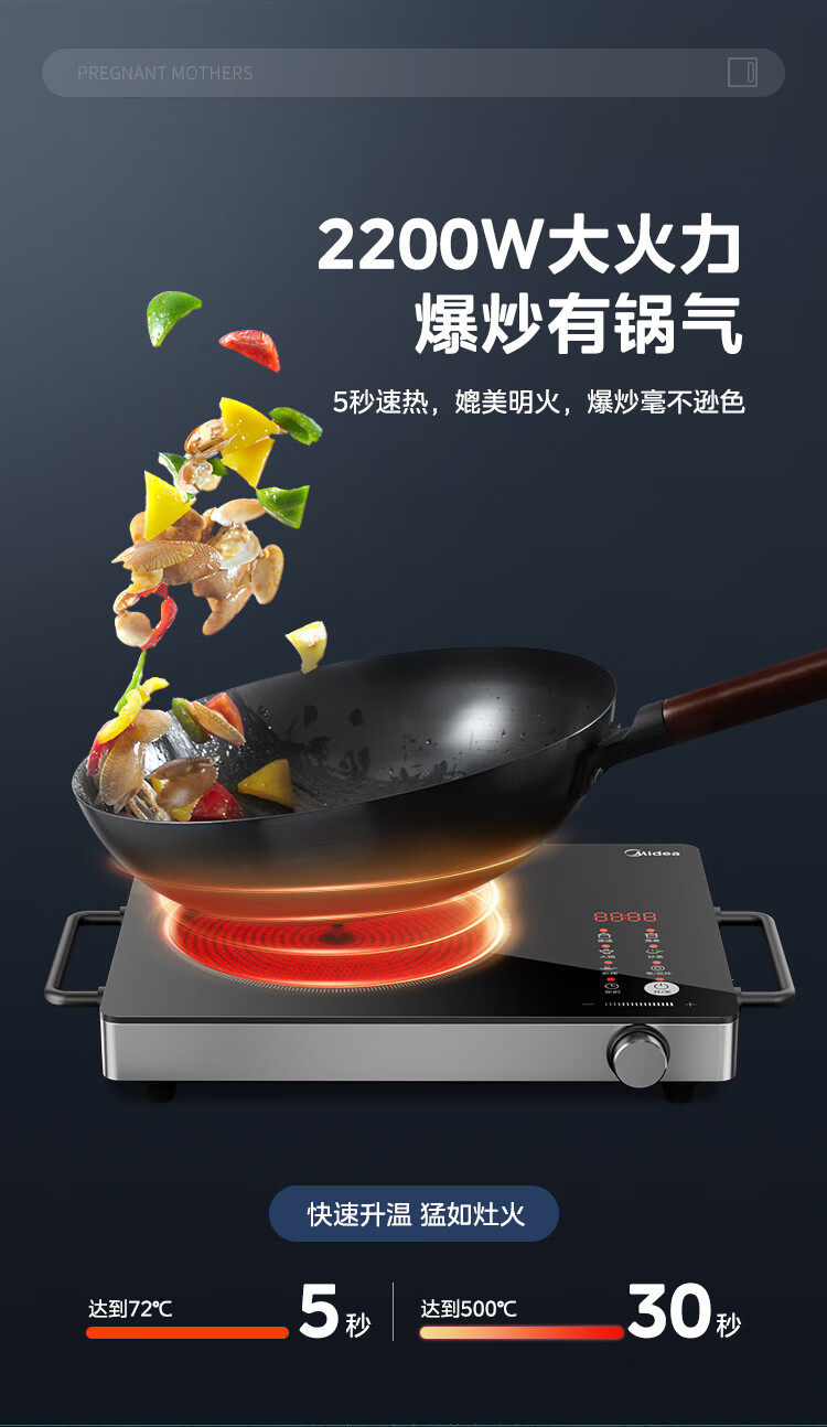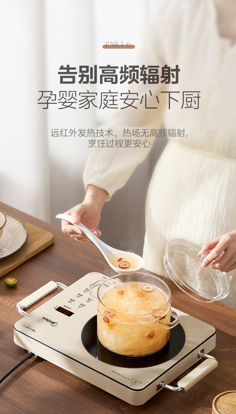 美的(Midea)电陶炉 电磁炉 家用小型煮茶火锅旋控2200W大功率电磁灶内外双环控火 智能定时自由调节火力 【不挑锅具】HW2210