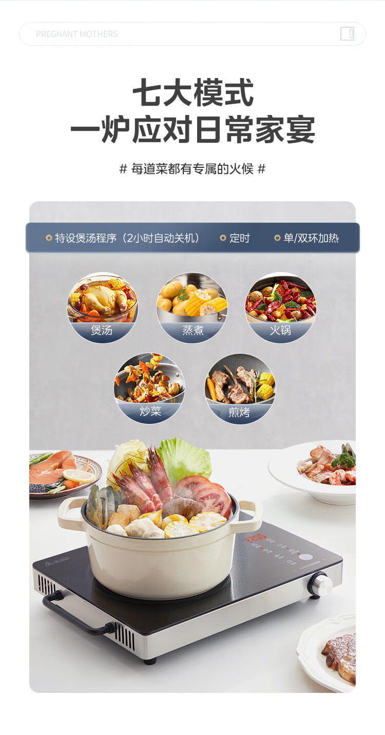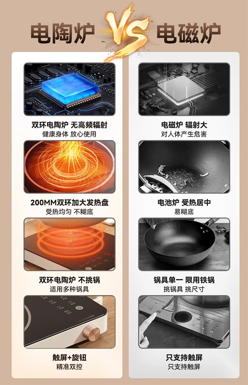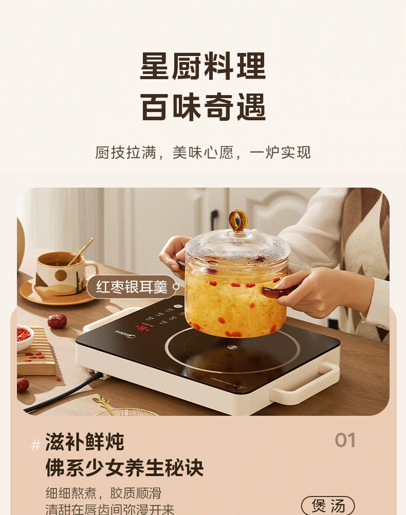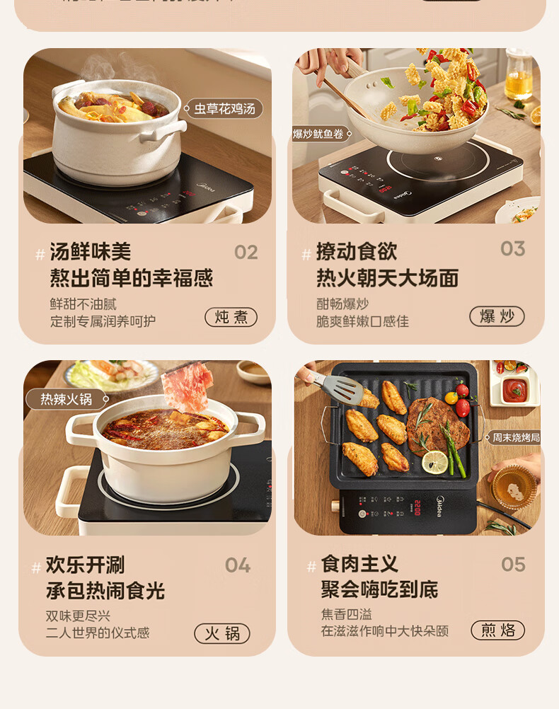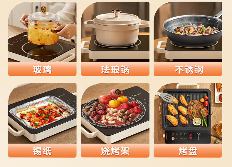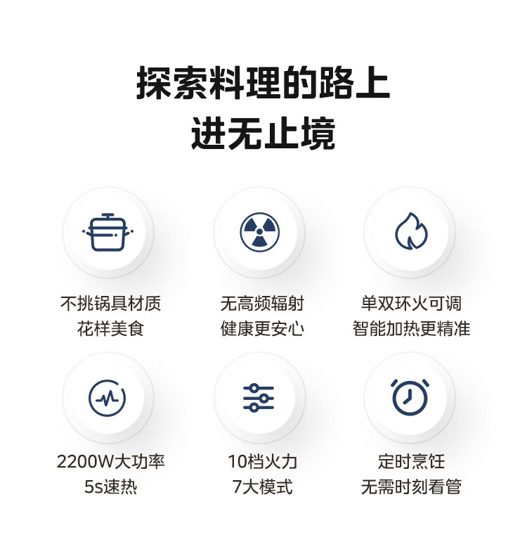 美的(Midea)电陶炉 电磁炉 家用小型煮茶火锅旋控2200W大功率电磁灶内外双环控火 智能定时自由调节火力 【不挑锅具】HW2210