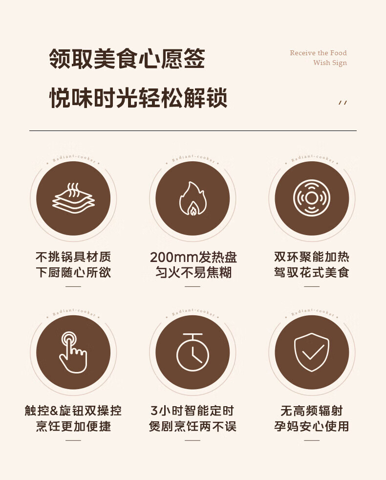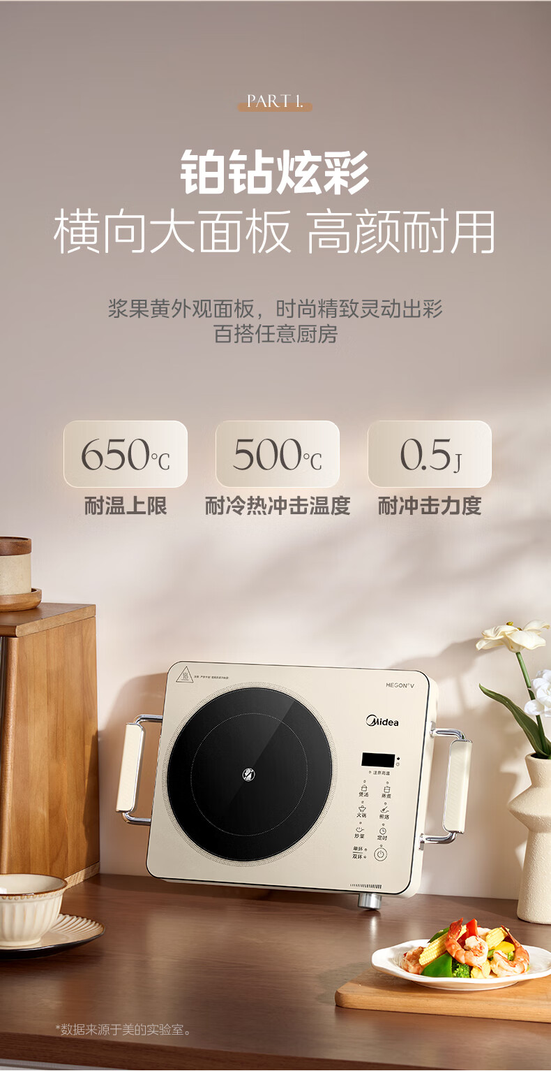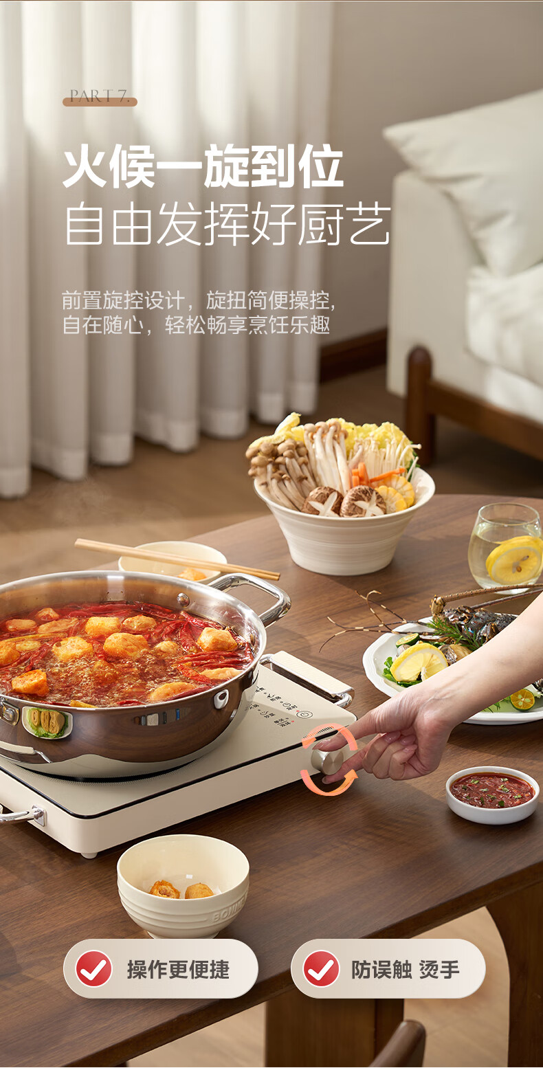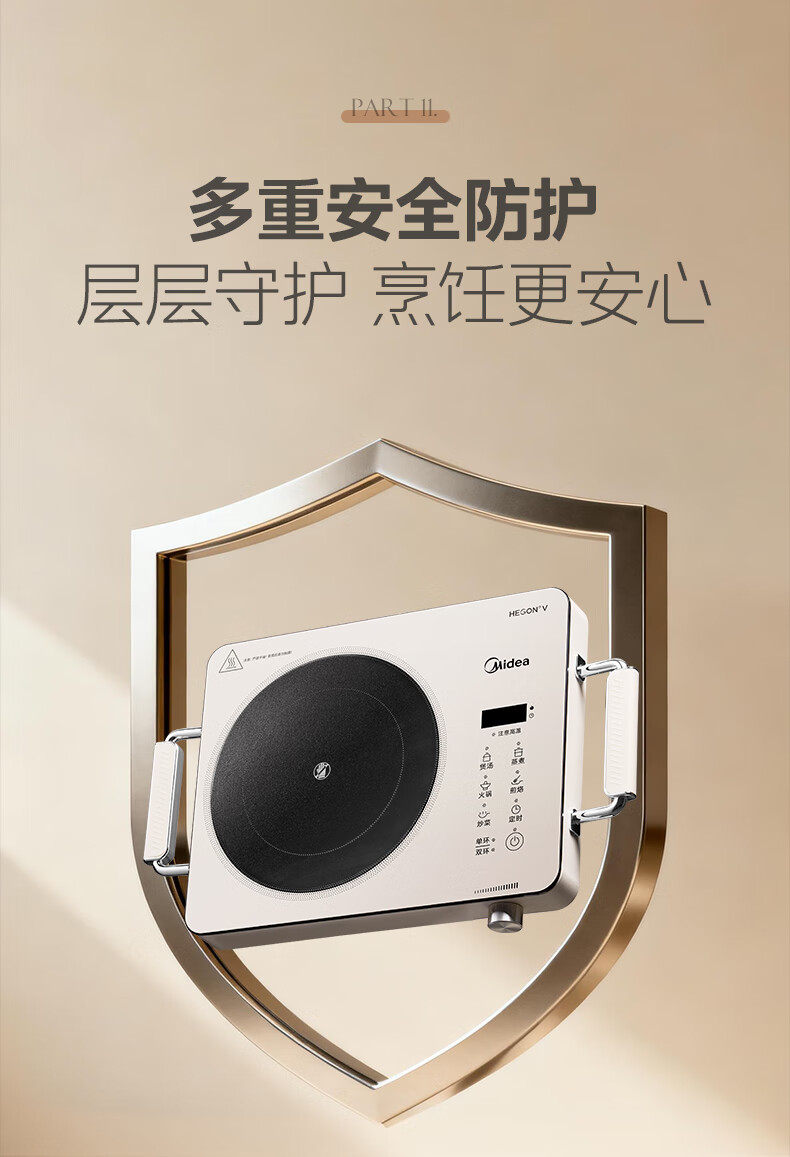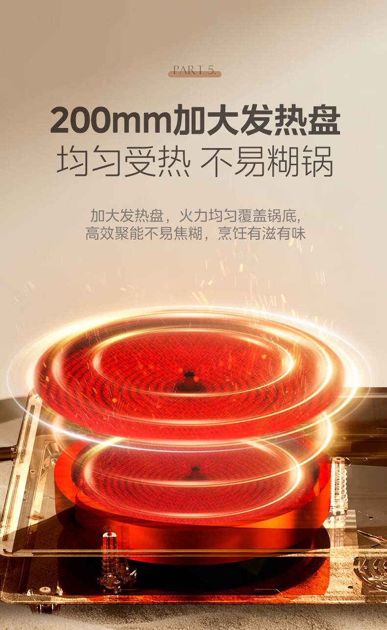 美的(Midea)电陶炉 电磁炉 家用小型煮茶火锅旋控2200W大功率电磁灶内外双环控火 智能定时自由调节火力 【不挑锅具】HW2210