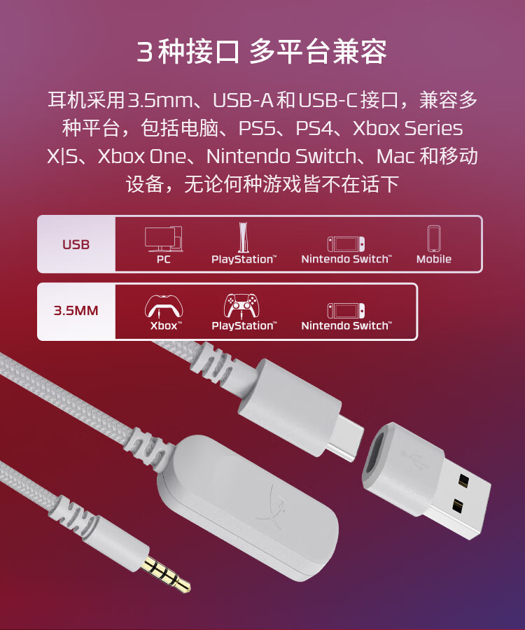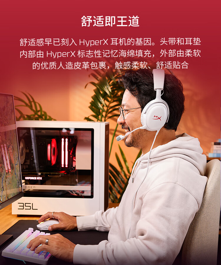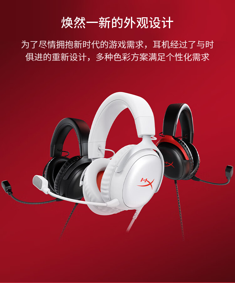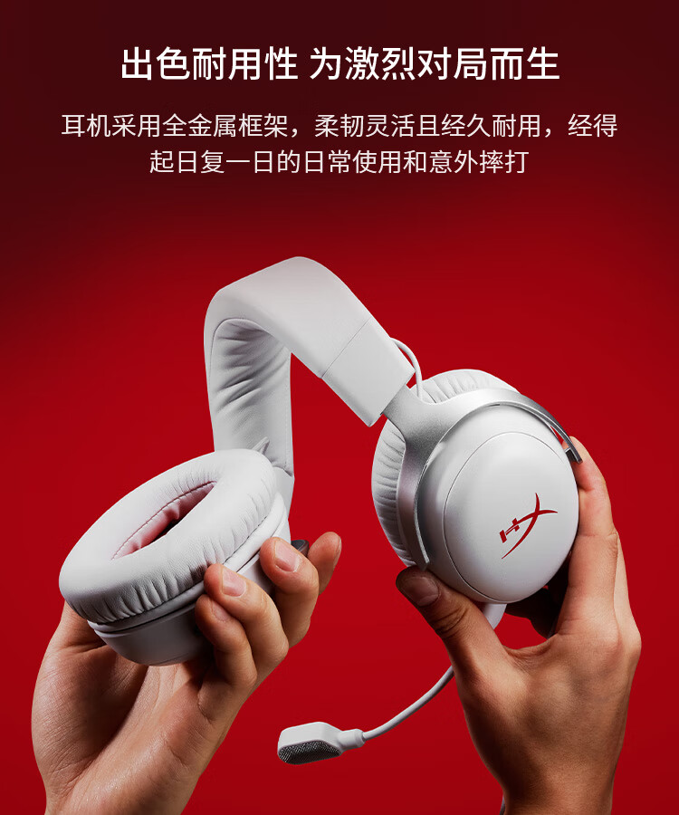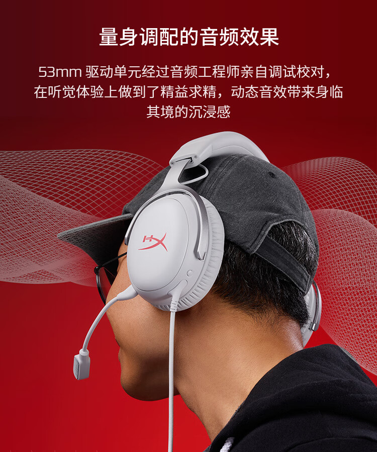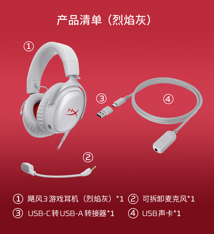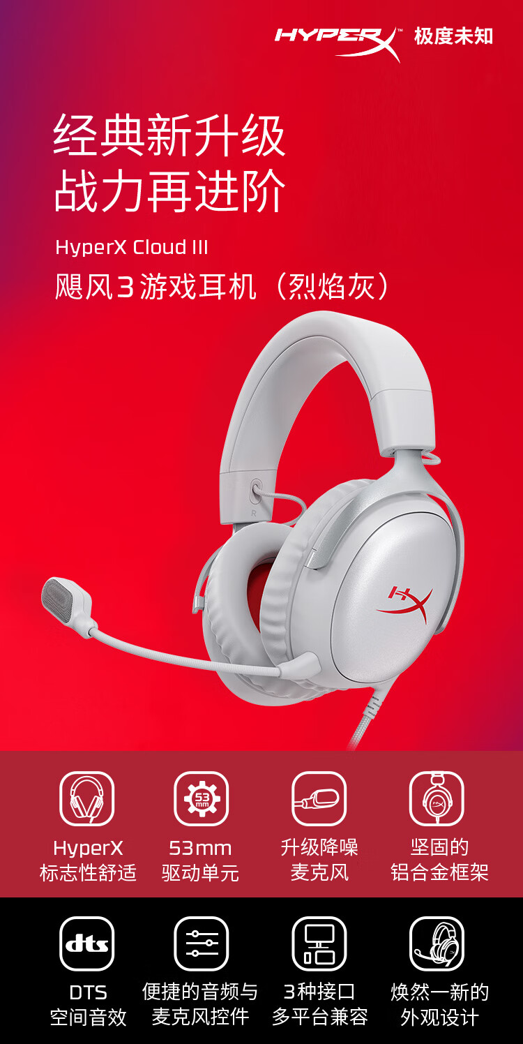 极度未知(HYPERX)Cloud Ⅲ飓风3有线 烈焰灰 DTS音效53mm驱动单元电竞头戴式游戏耳机 适配三角洲行动