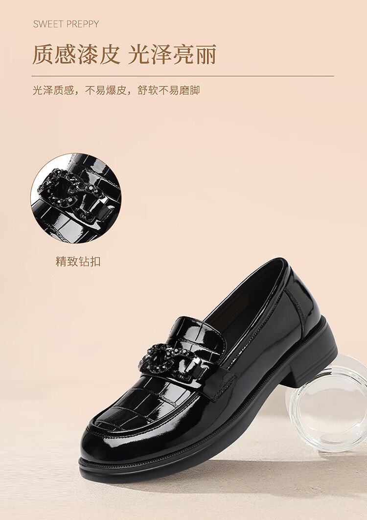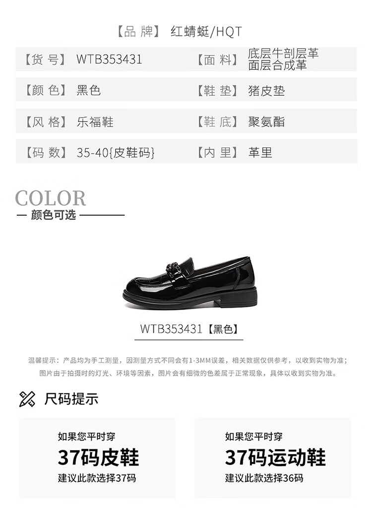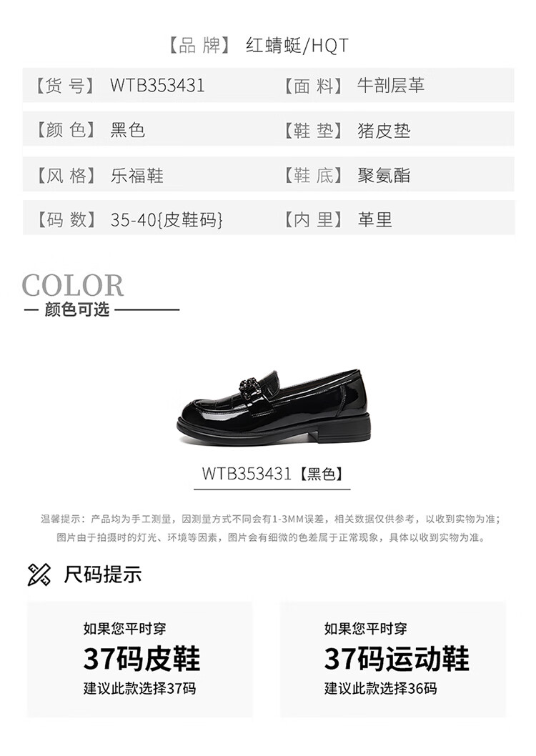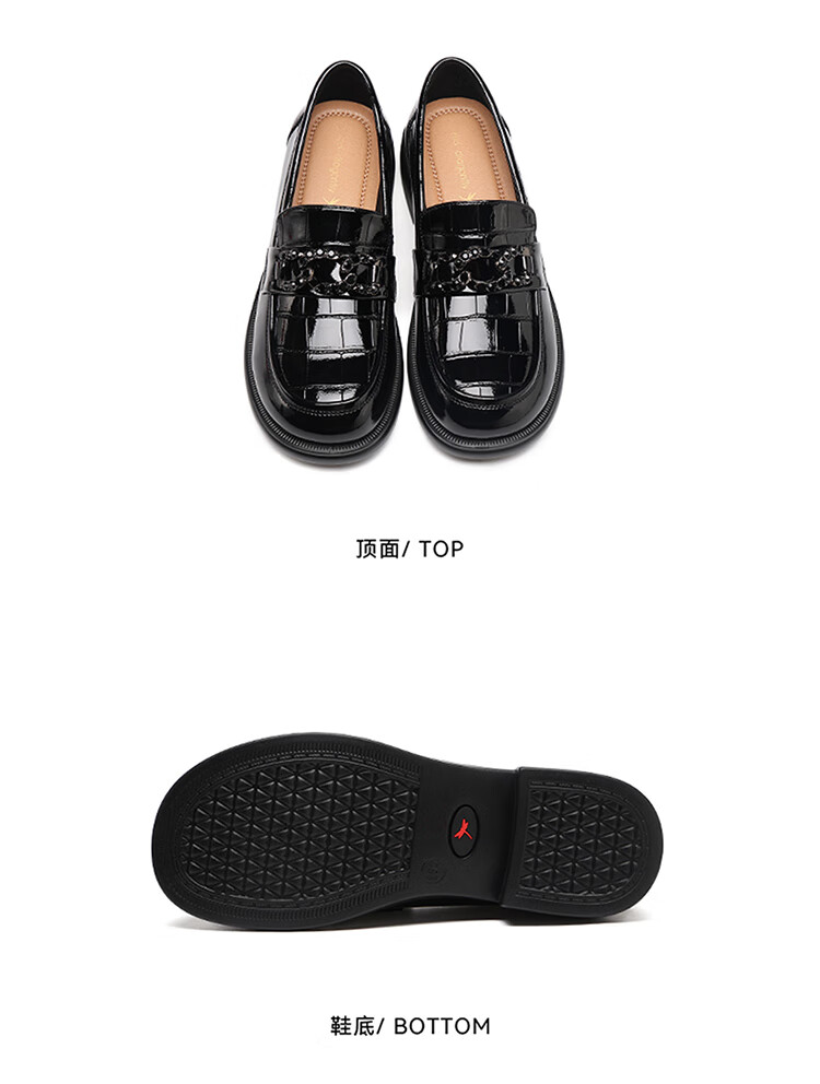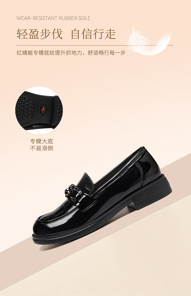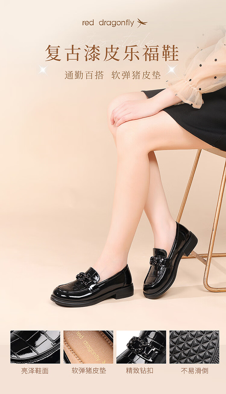 红蜻蜓乐福鞋女鞋时尚百搭亮皮小皮鞋女士通勤浅口单鞋WTB353431黑色38