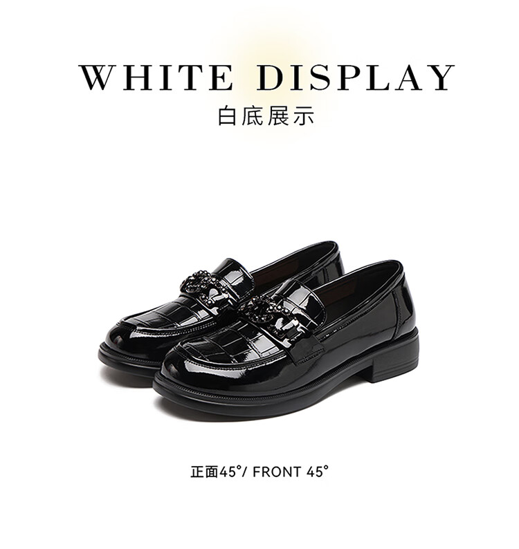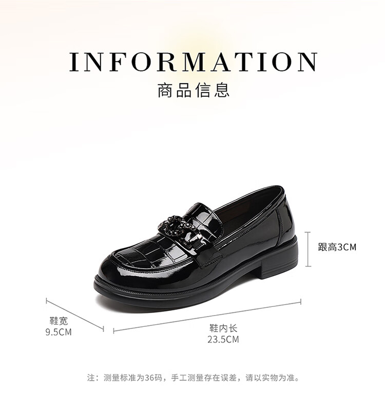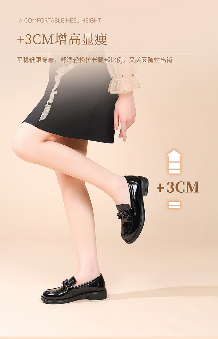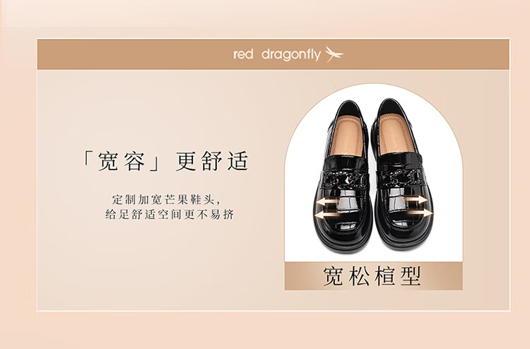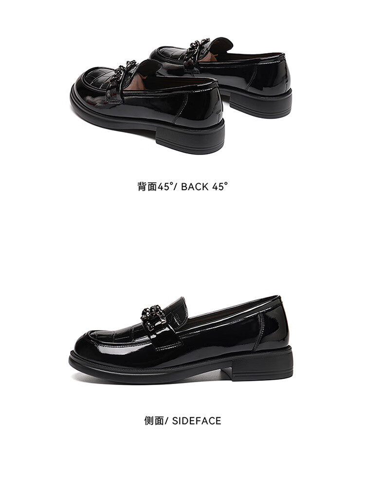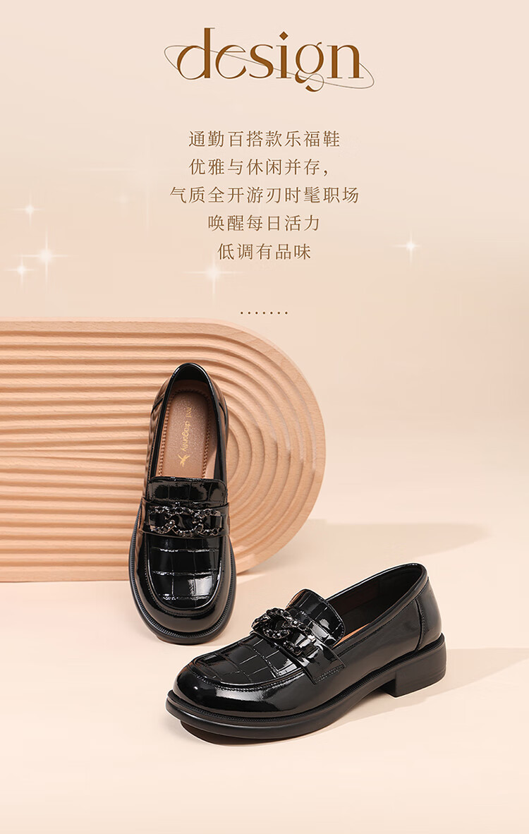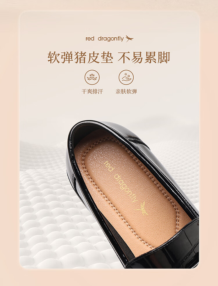红蜻蜓乐福鞋女鞋时尚百搭亮皮小皮鞋女士通勤浅口单鞋WTB353431黑色38