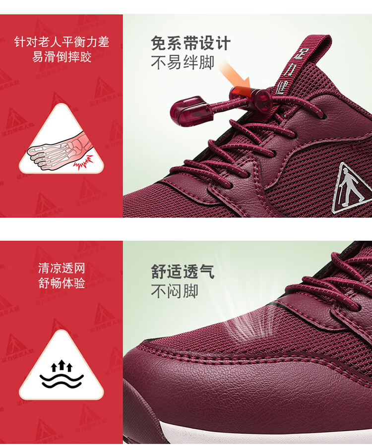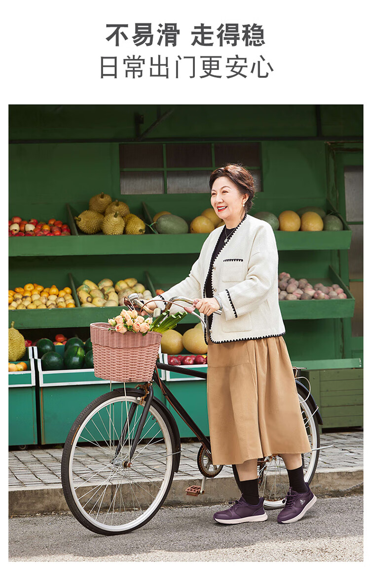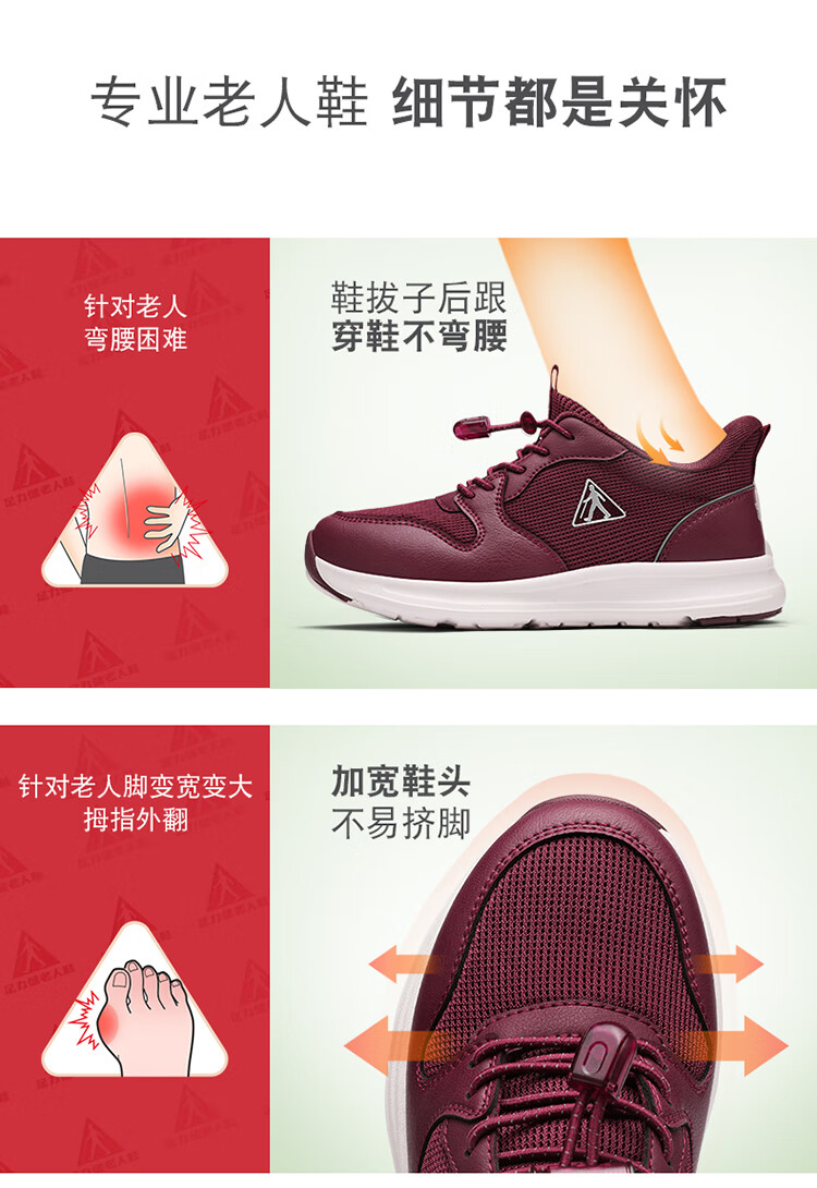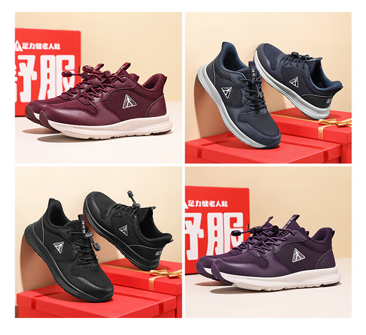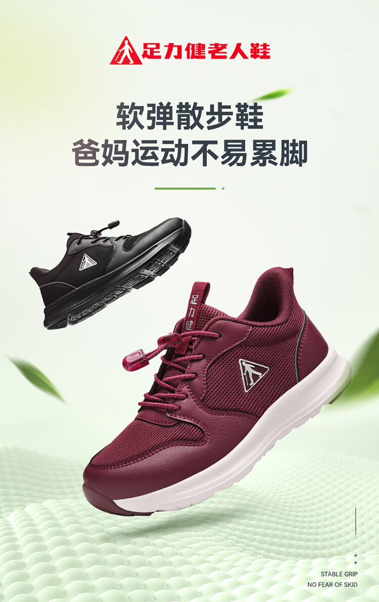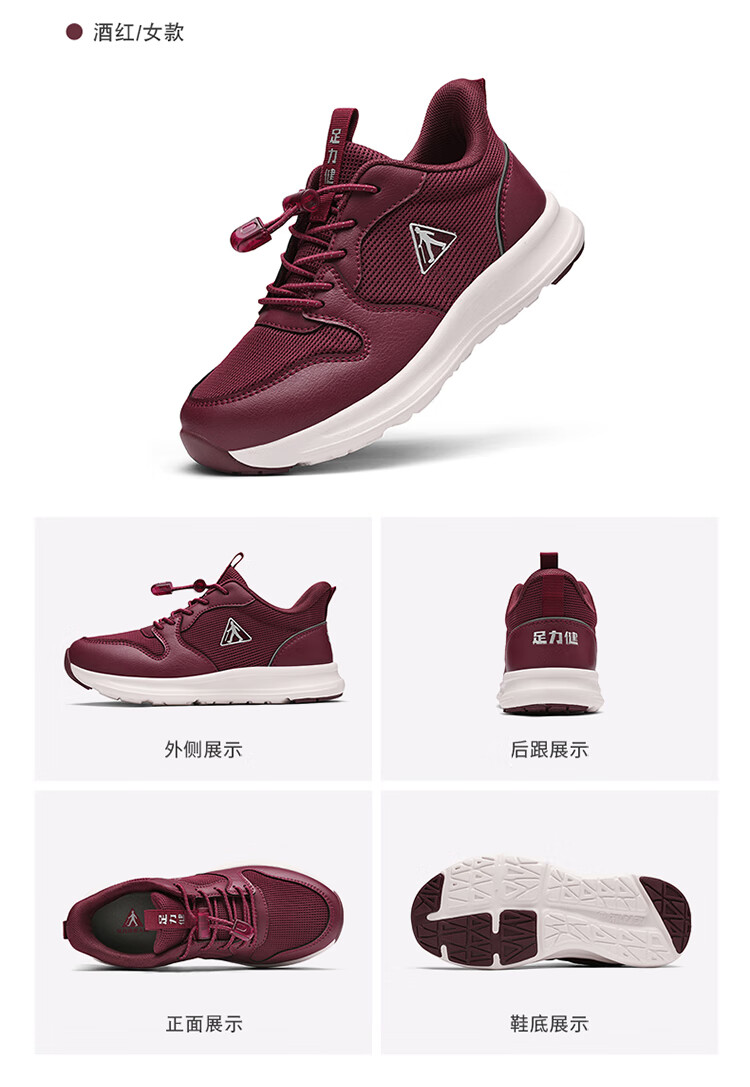 足力健正品足力健老人鞋软底防滑户外健步鞋休闲运动散步男鞋闰月送长辈 绛紫色 35