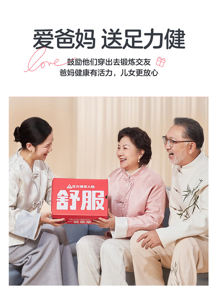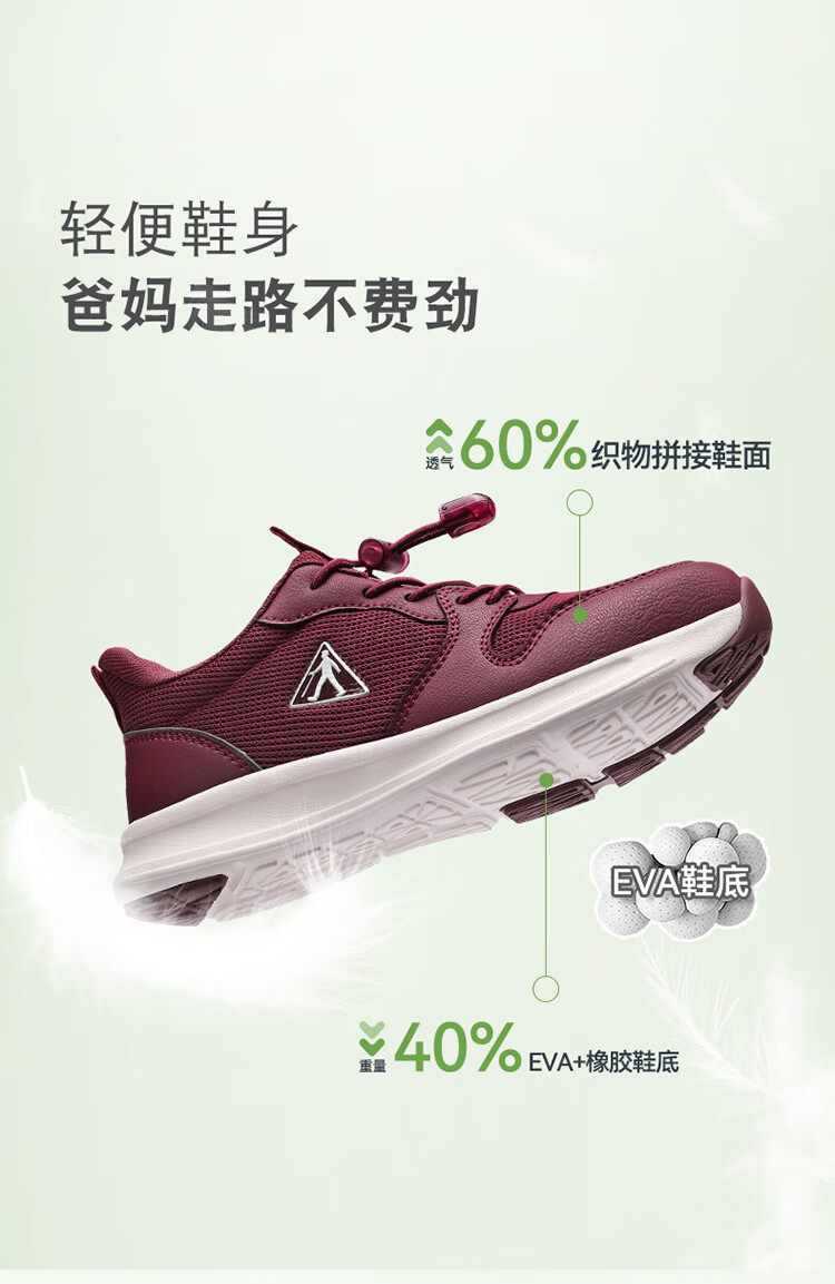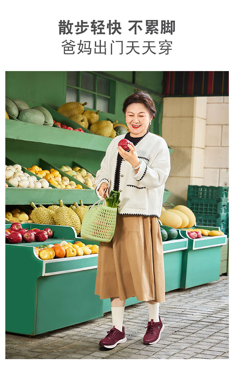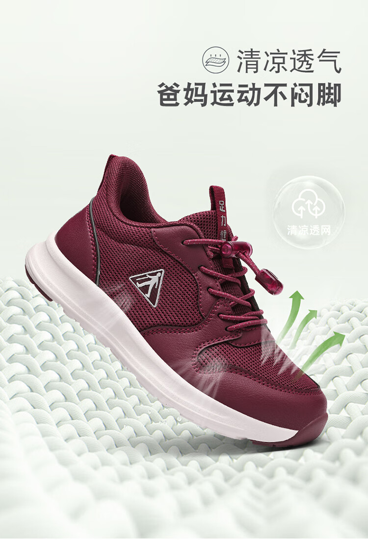足力健中老年秋冬季爸妈鞋网纱透气不闷脚男女鞋轻盈舒适柔软休闲散步鞋 豆沙色 37