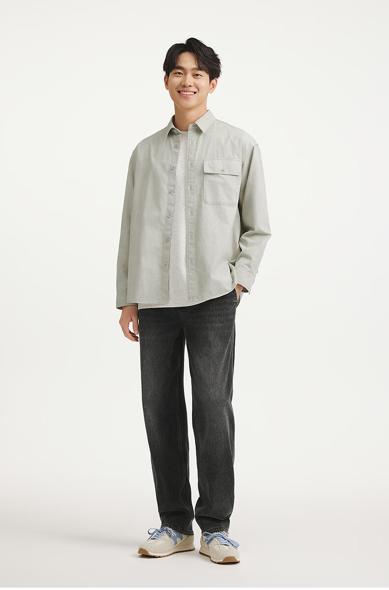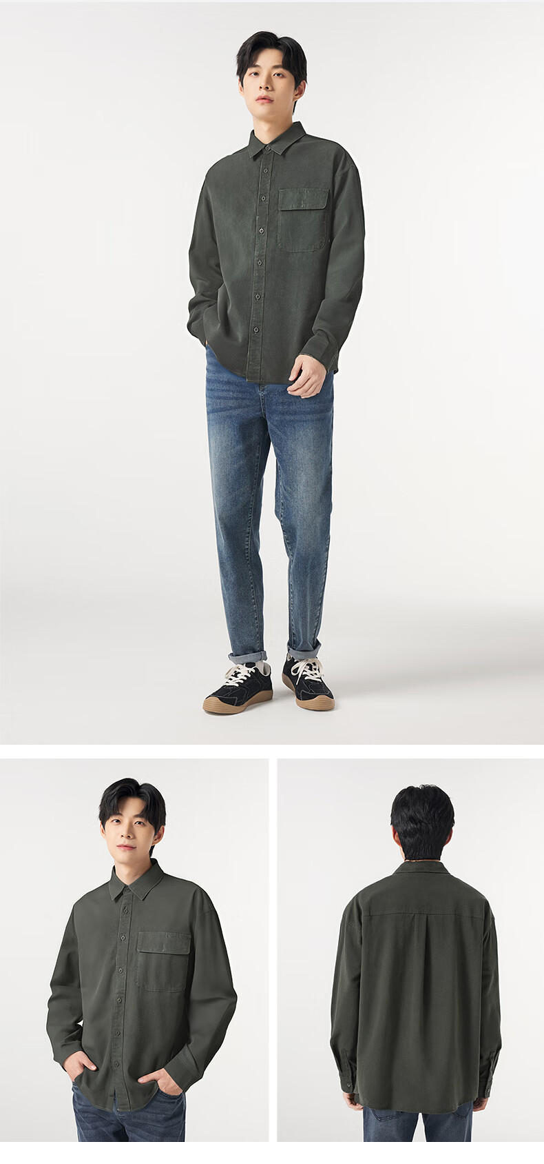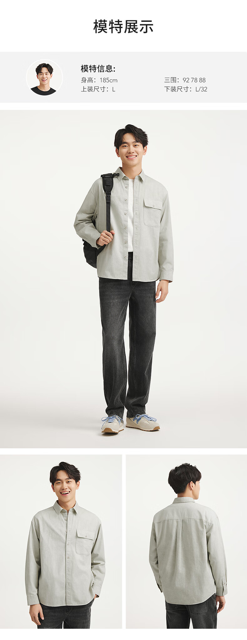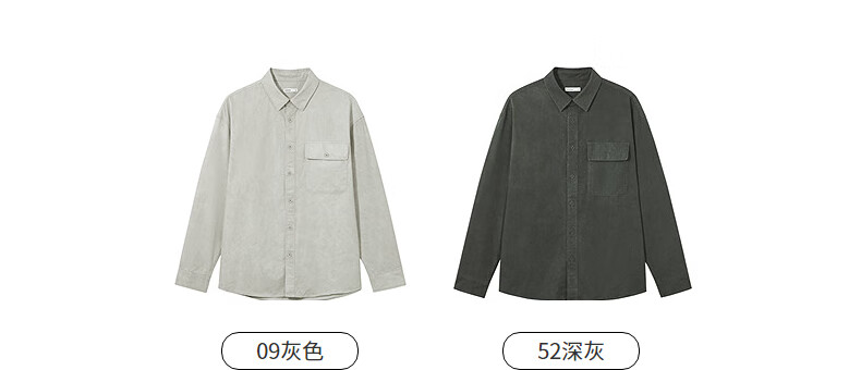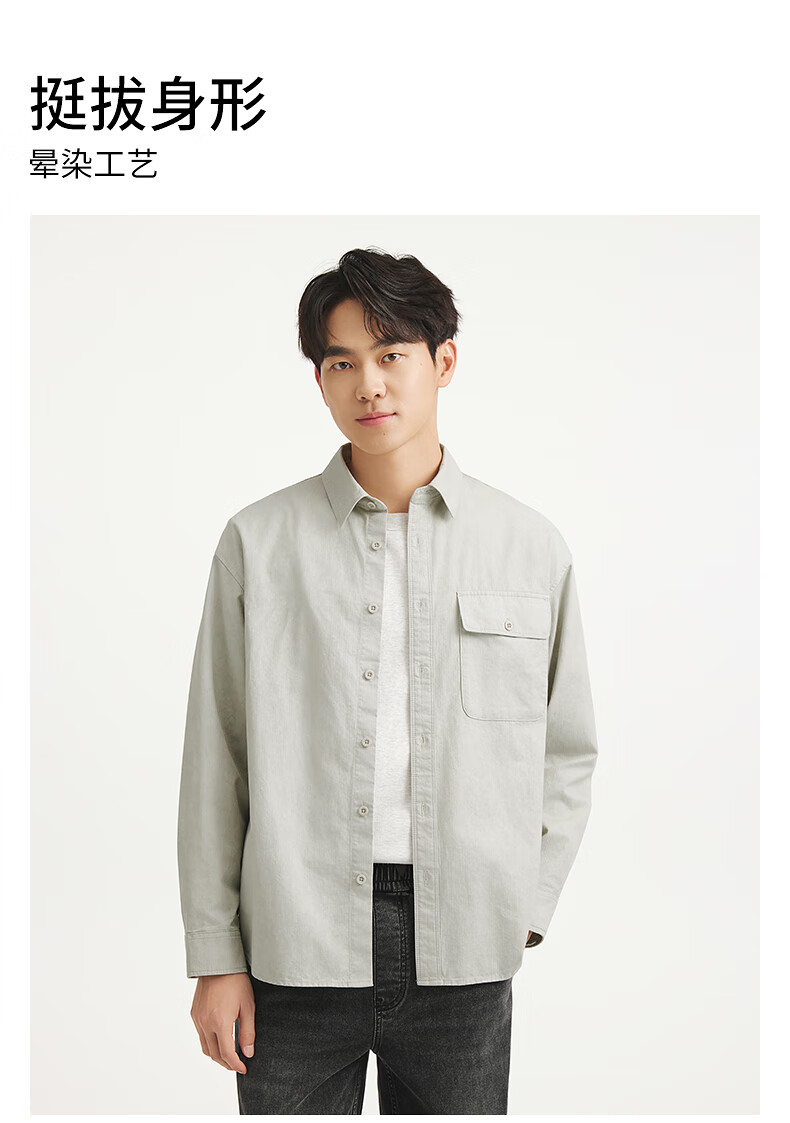 热风【商场同款】男士长袖衬衫2025年秋季新款晕染宽松工装风衬衣外套 09灰色 L