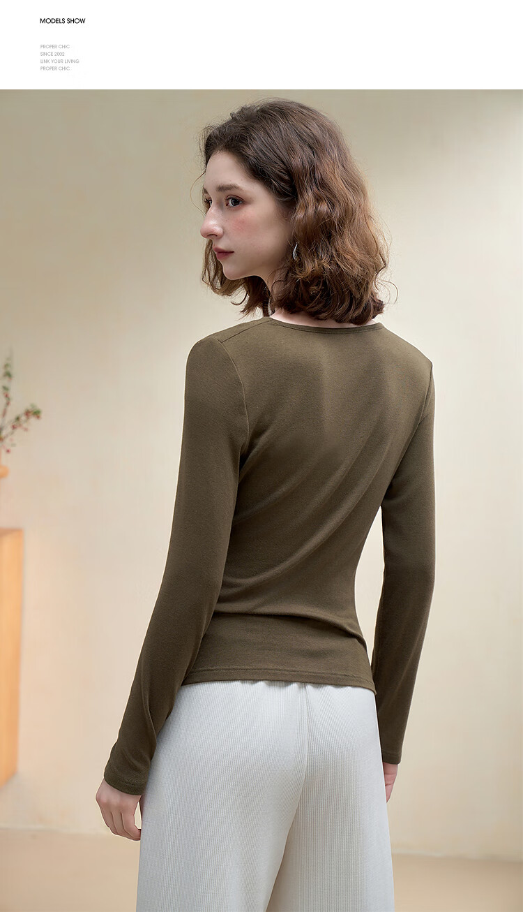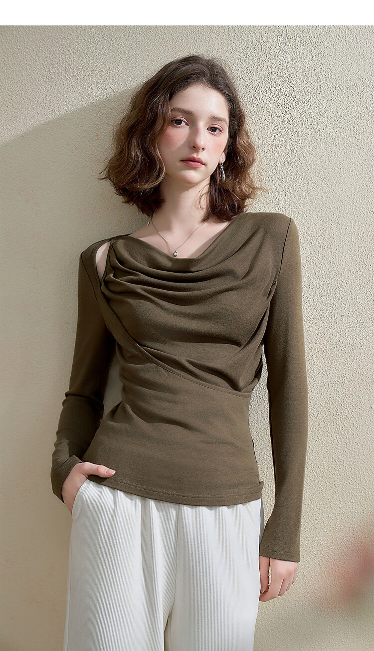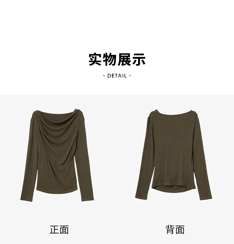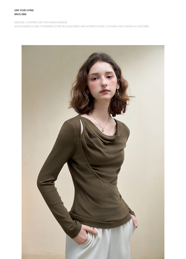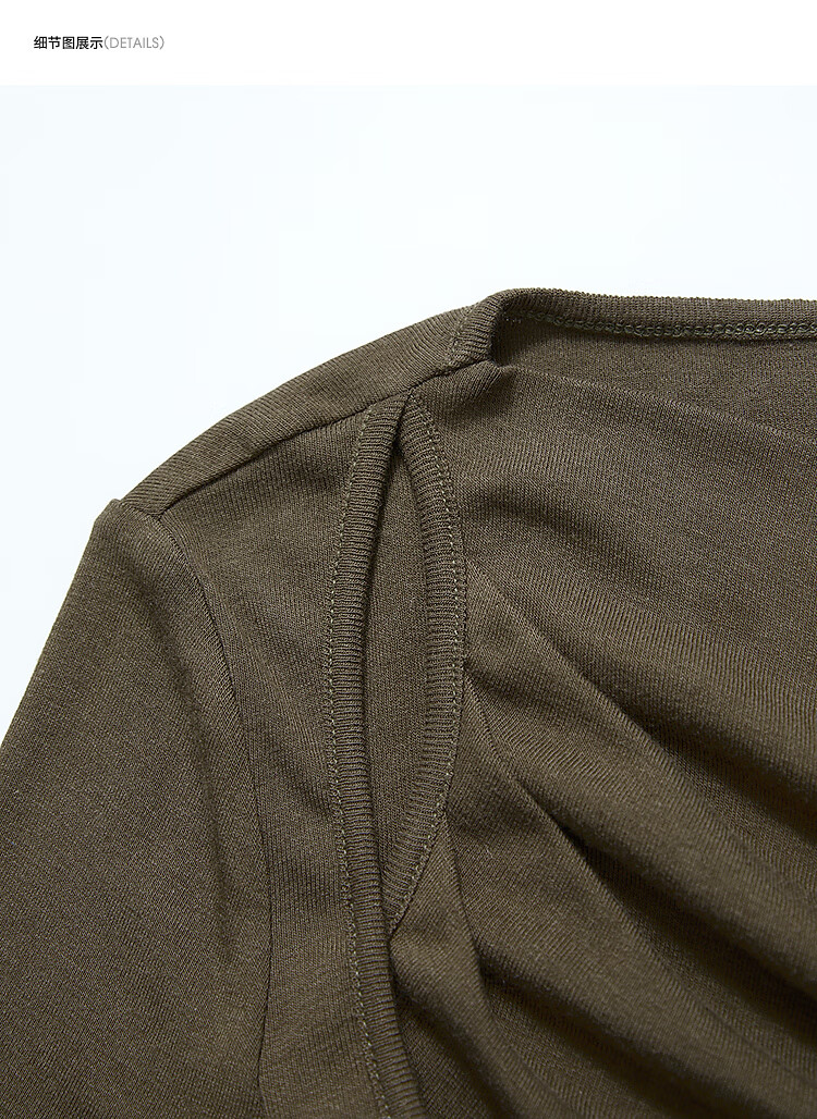西遇气质荡领抽褶设计长袖针织T恤女2025秋季高级感修身显瘦上衣 绿色 (预售9月9日) L