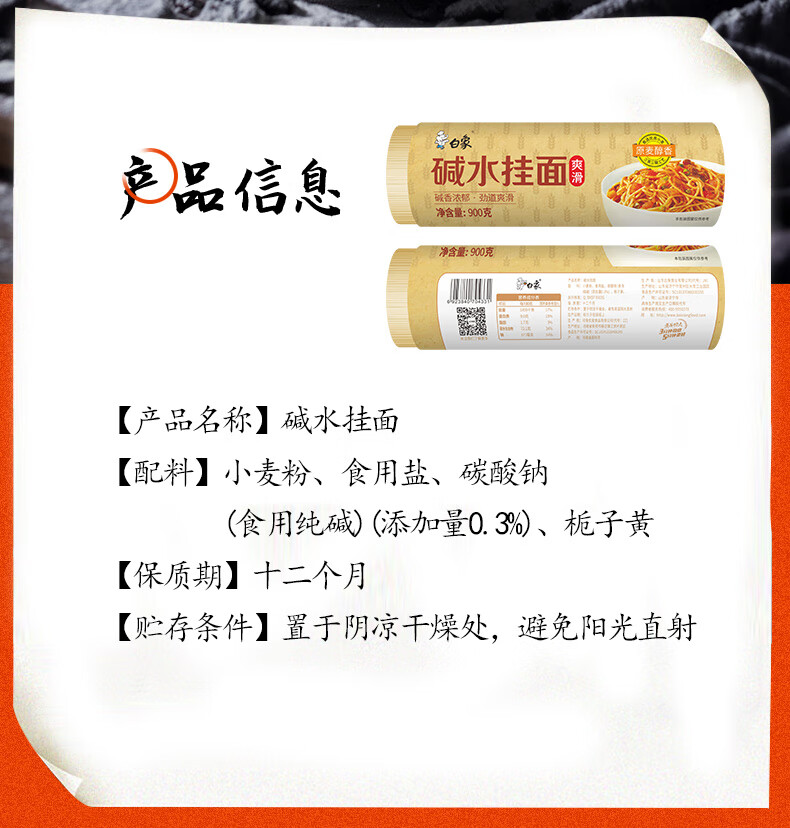 白象碱水面900g面条拌面凉面 2.0椭圆面 挂面热干面