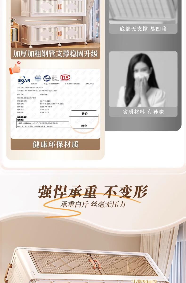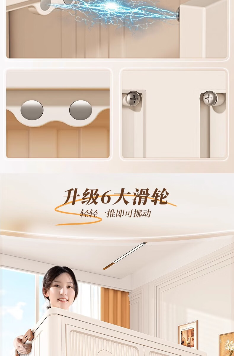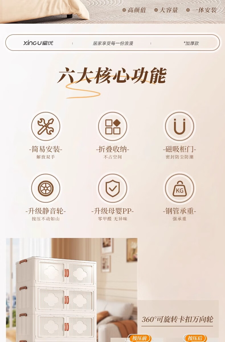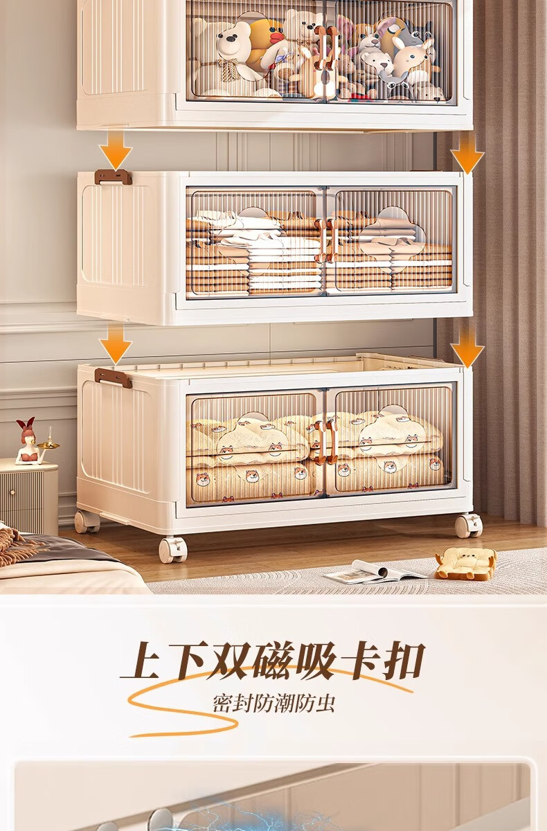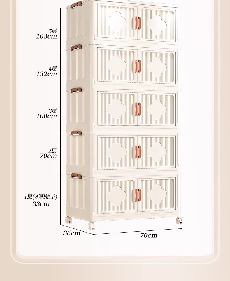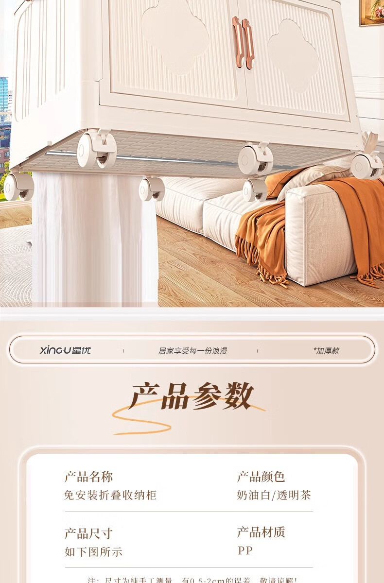 星优收纳柜子多层储物家用宝宝衣服杂物零食免安装可折叠大塑料置物柜 90cm面宽三层奶油白+6滑轮 多层