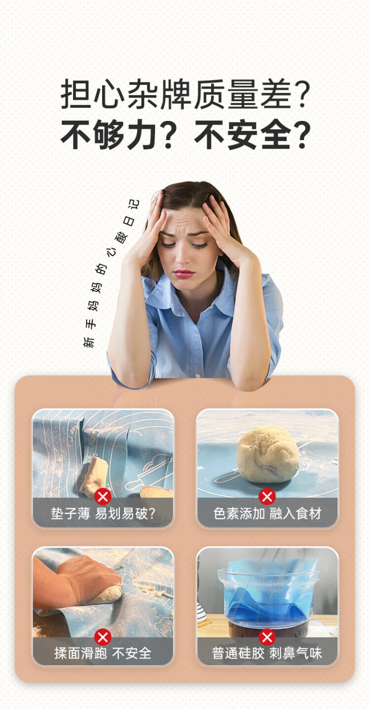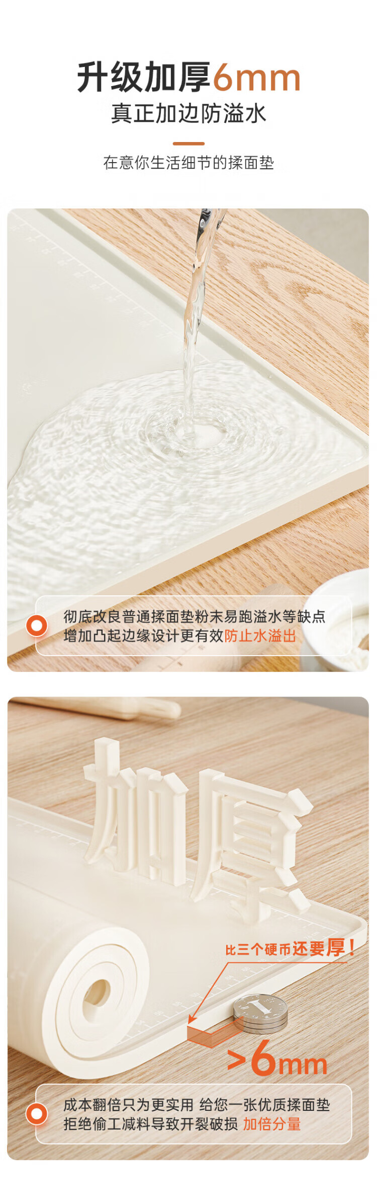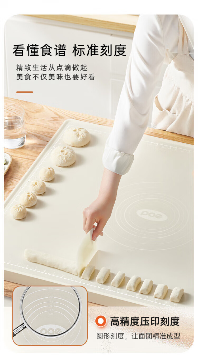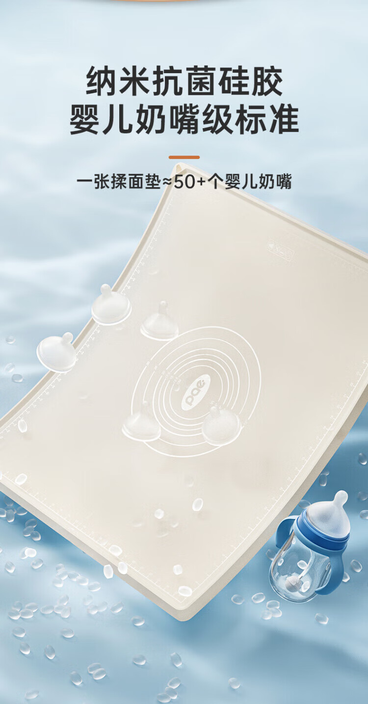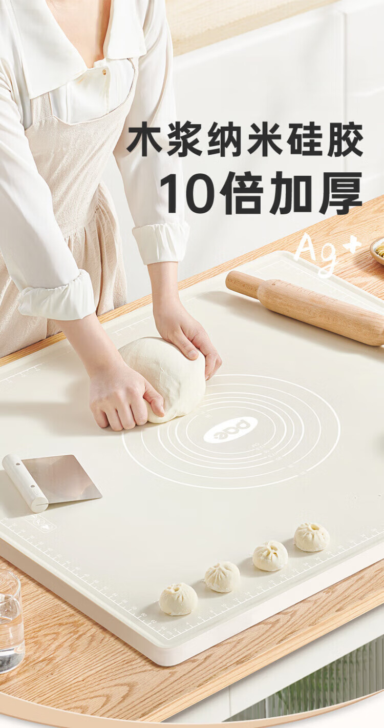 WCZ德国硅胶揉面垫面板擀面垫加厚食品级家用和面板烘焙塑料案板 米白色-40*60CM *德国Milronia纳米硅胶 Ti肽离子
