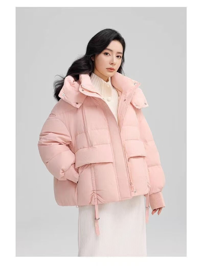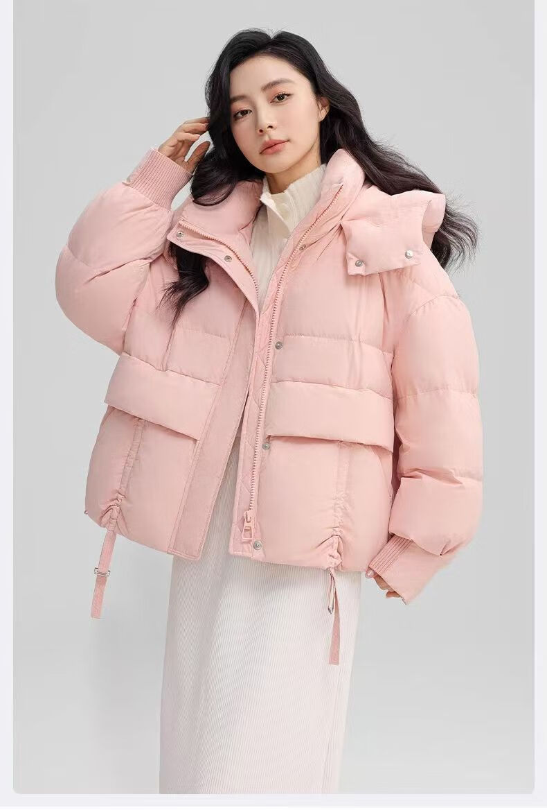 IKELUOZI2025秋季新款修身短款保暖外套立领轻薄羽绒服女 云粉色 M