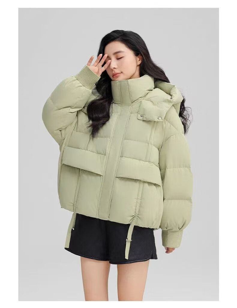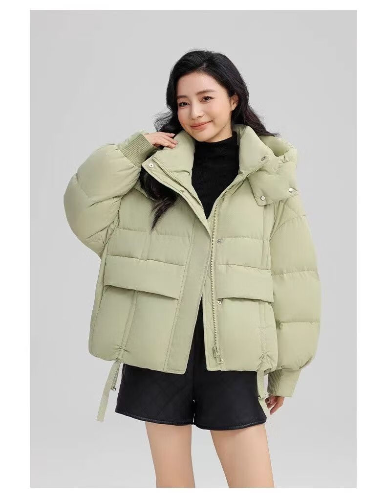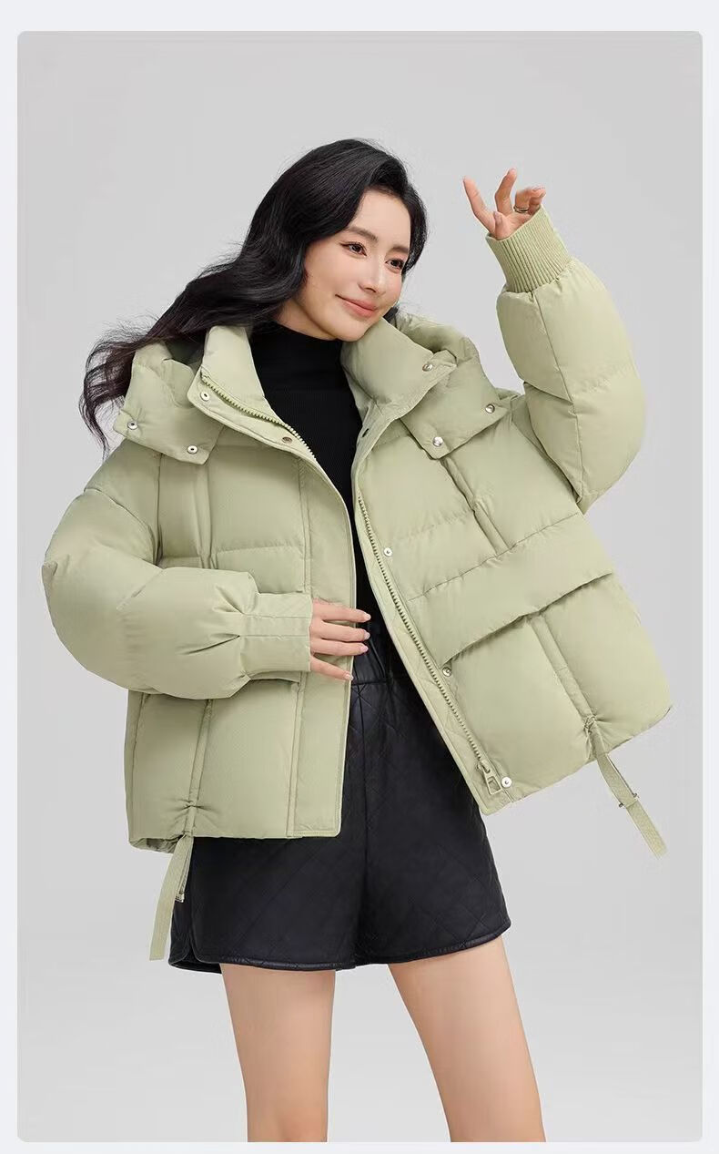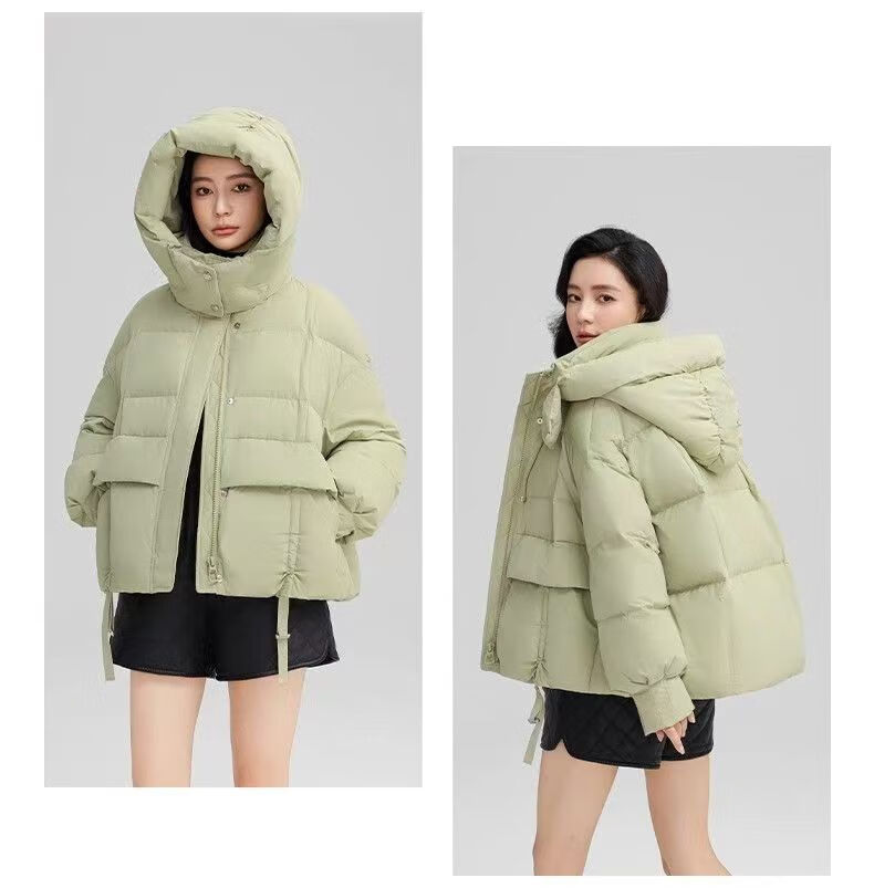 IKELUOZI泡芙羽绒服女2025冬季新款加厚保暖面包服时尚百搭防风外套 绿色 S