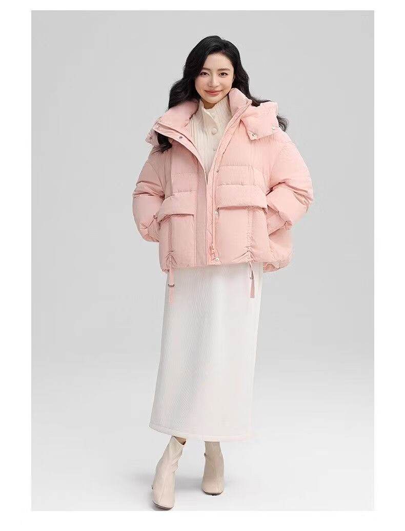 IKELUOZI2025秋季新款修身短款保暖外套立领轻薄羽绒服女 云粉色 S
