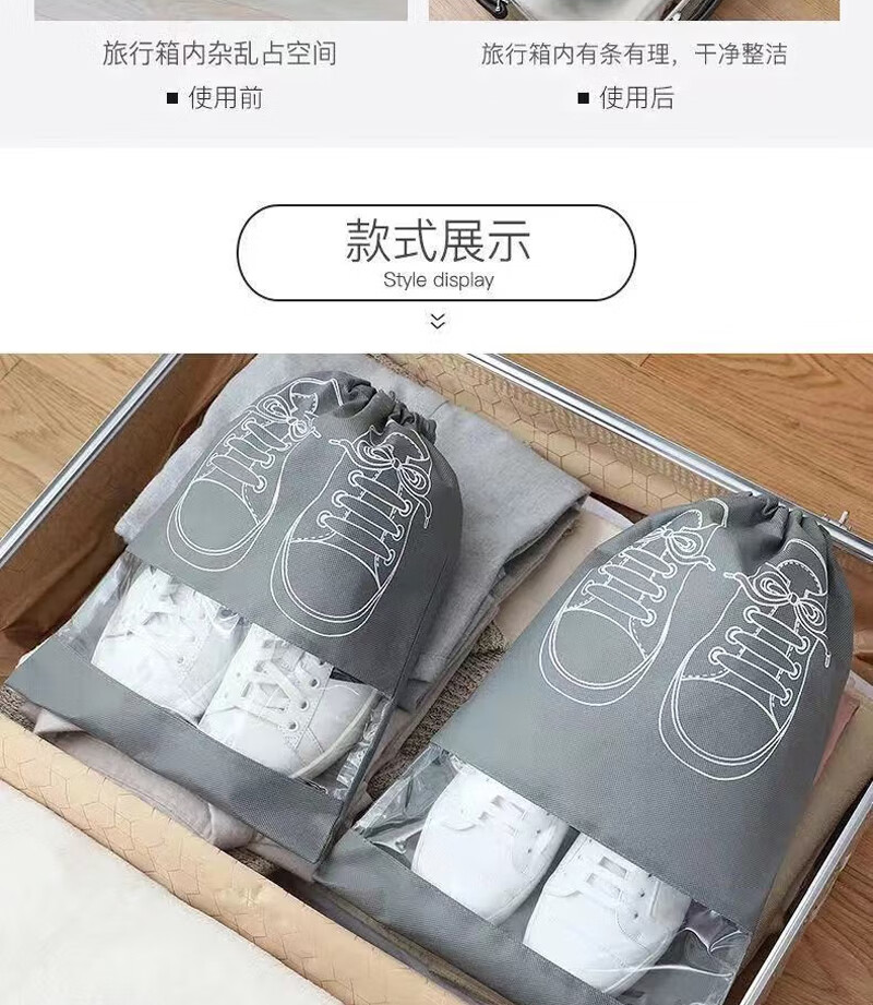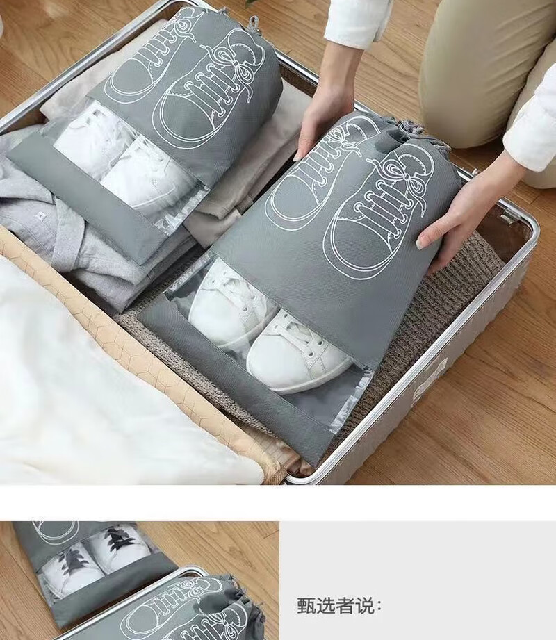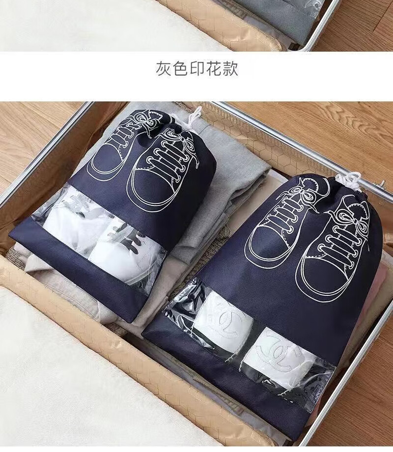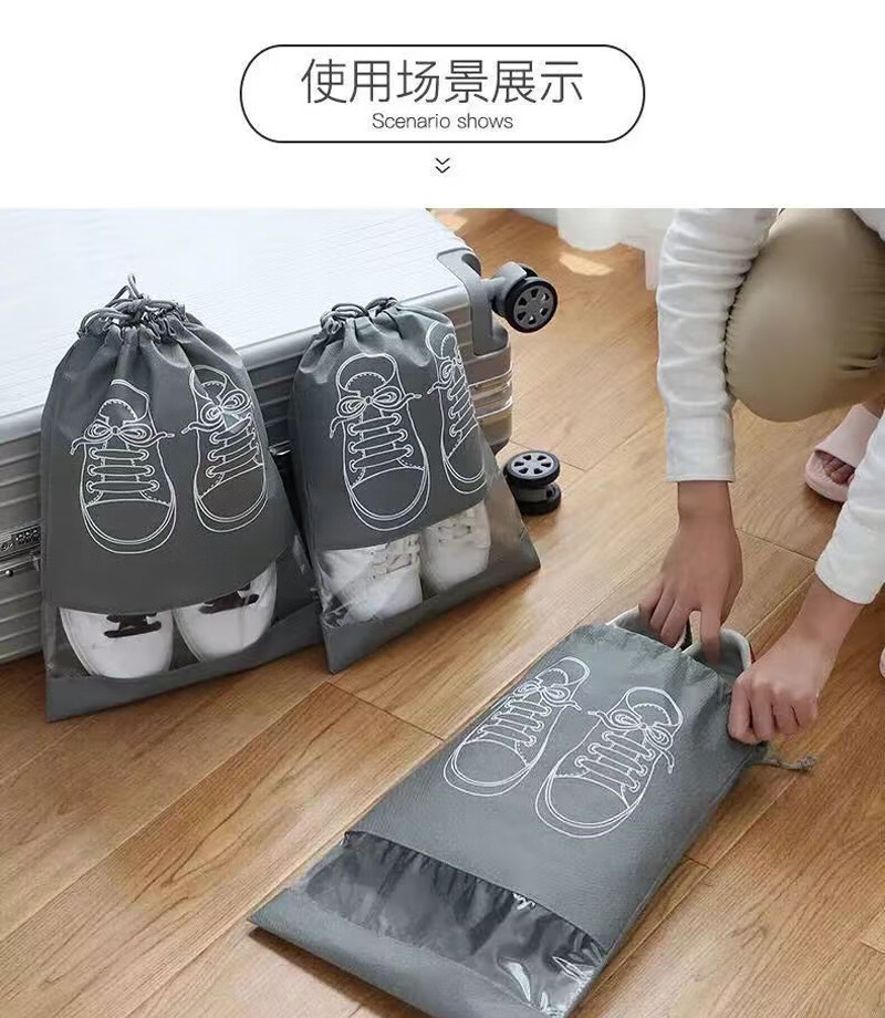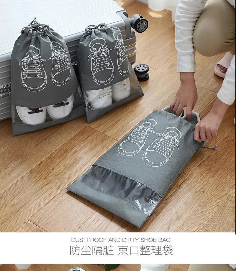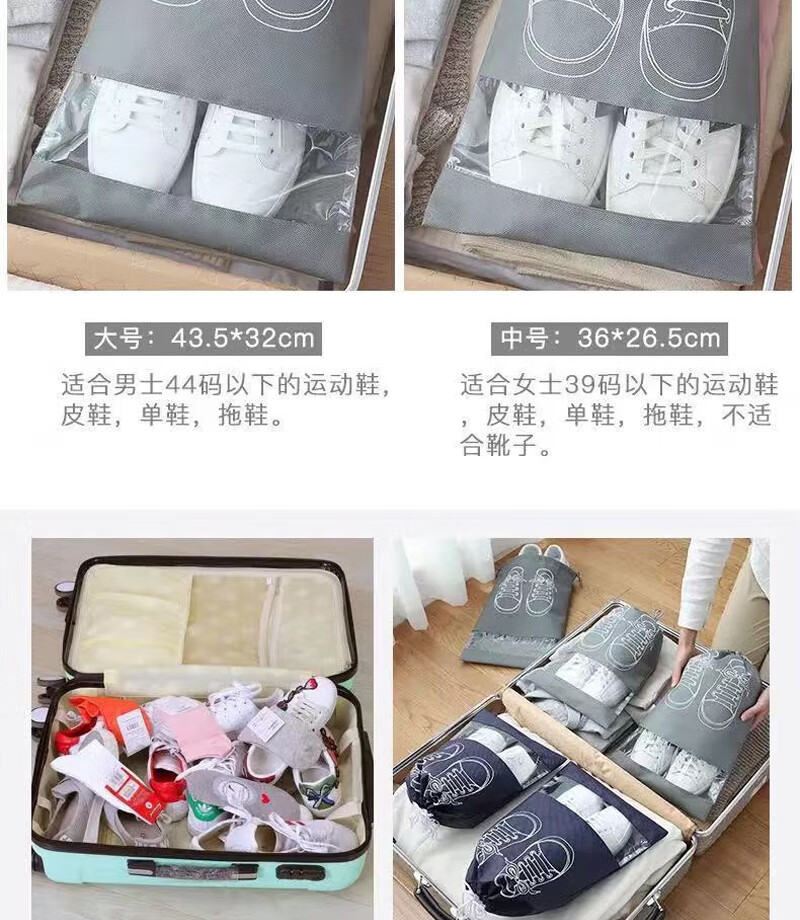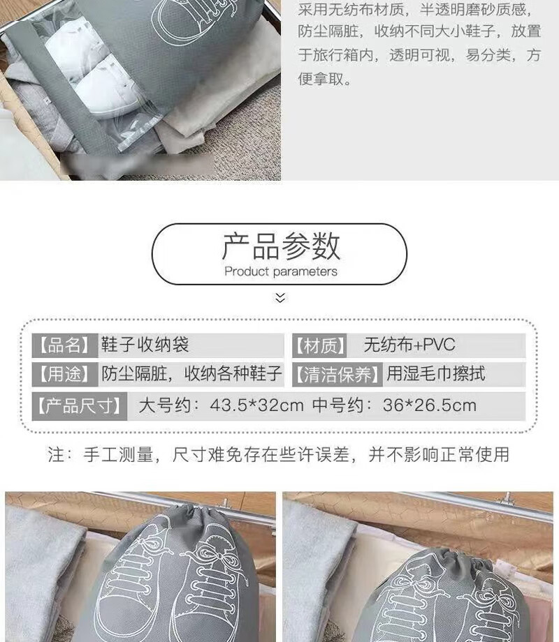 大号旅行鞋袋抽绳束口袋透明可视防泼水防尘鞋套旅行箱隔离袋子 10只