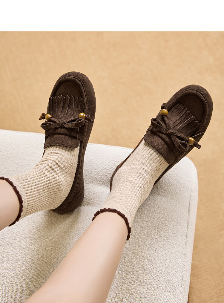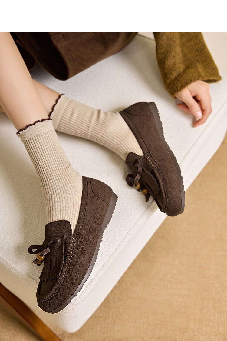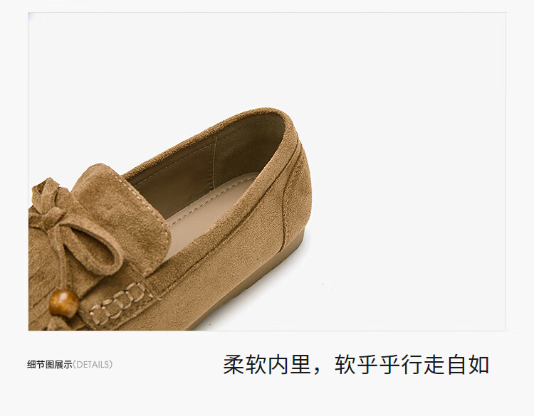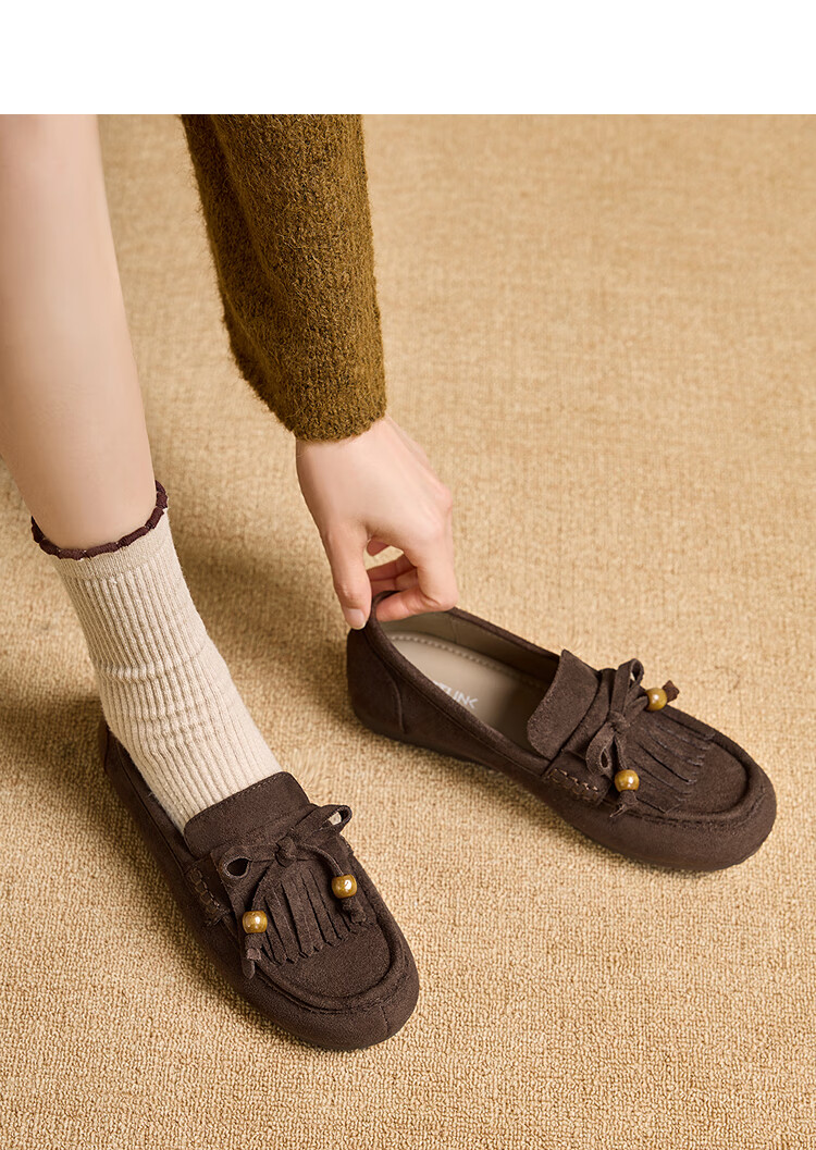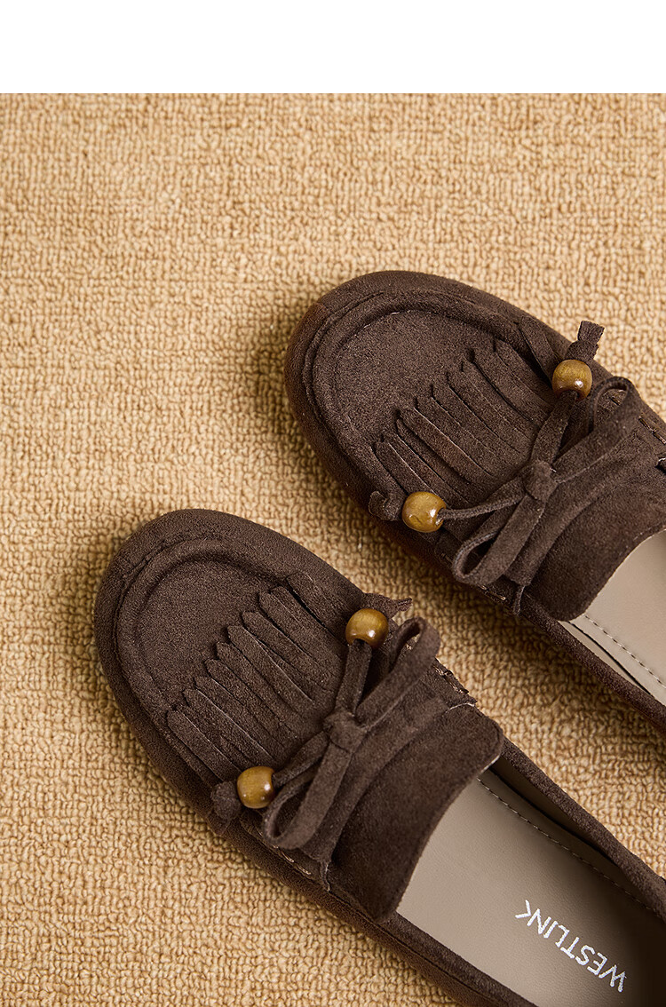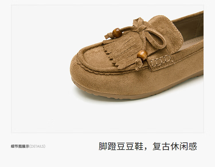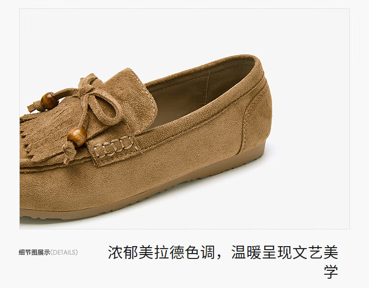西遇流苏乐福鞋女2025新款秋季绒面美拉德袋鼠勃肯豆豆鞋平底单鞋 咖色 37 (235)